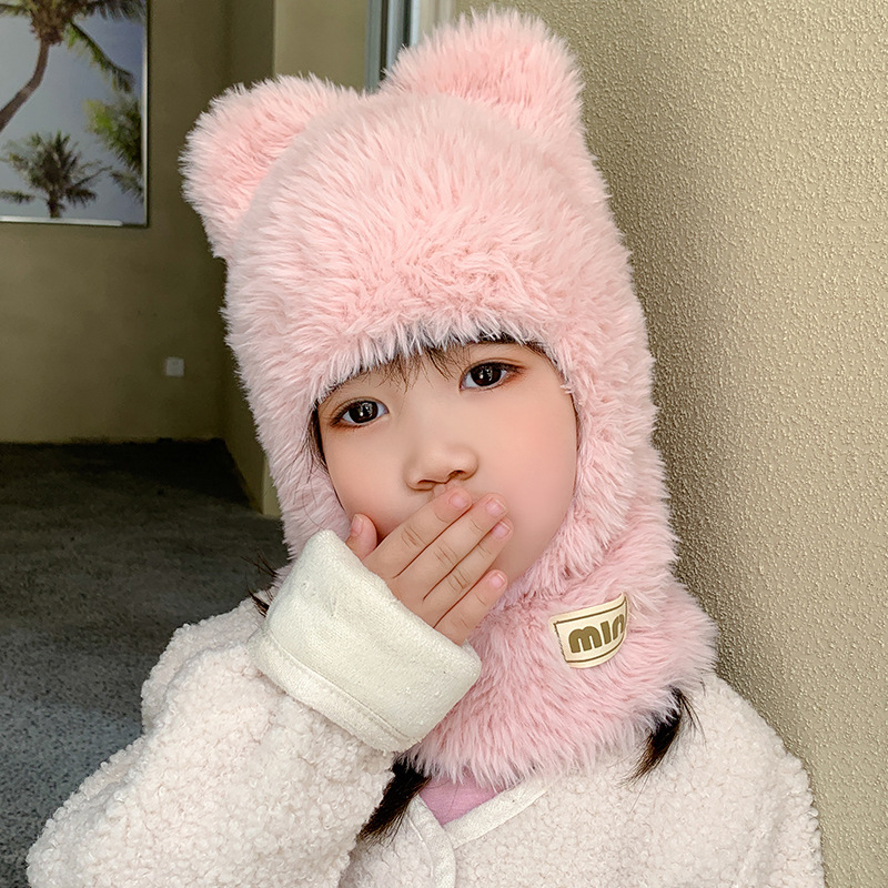 어린이 봉제 모자 스카프 통합 모자 겨울 소년 소녀 따뜻한 모자 아기 모자 방풍 두꺼운 귀 보호 모자스토어 가기