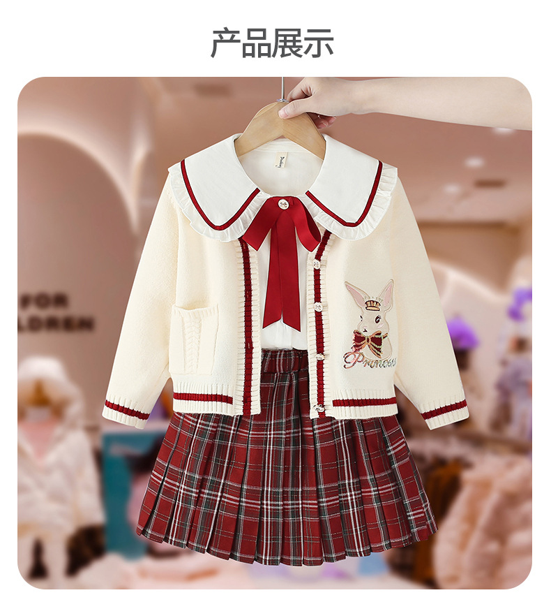 여아 세트 봄 가을 2023 새로운 아동 서양식 아동복 여아 jk 스커트 아카데믹 스타일 스웨터 쓰리피스 세트스토어 가기