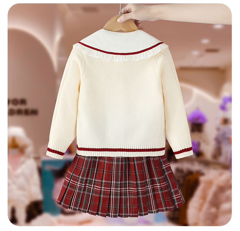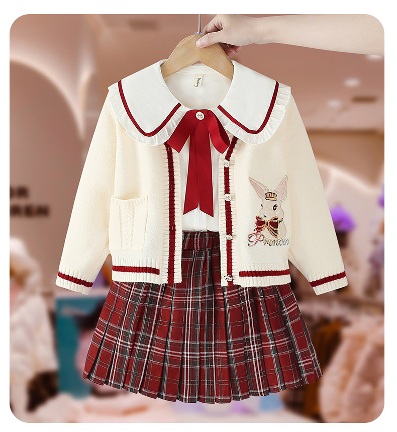 여아 세트 봄 가을 2023 새로운 아동 서양식 아동복 여아 jk 스커트 아카데믹 스타일 스웨터 쓰리피스 세트