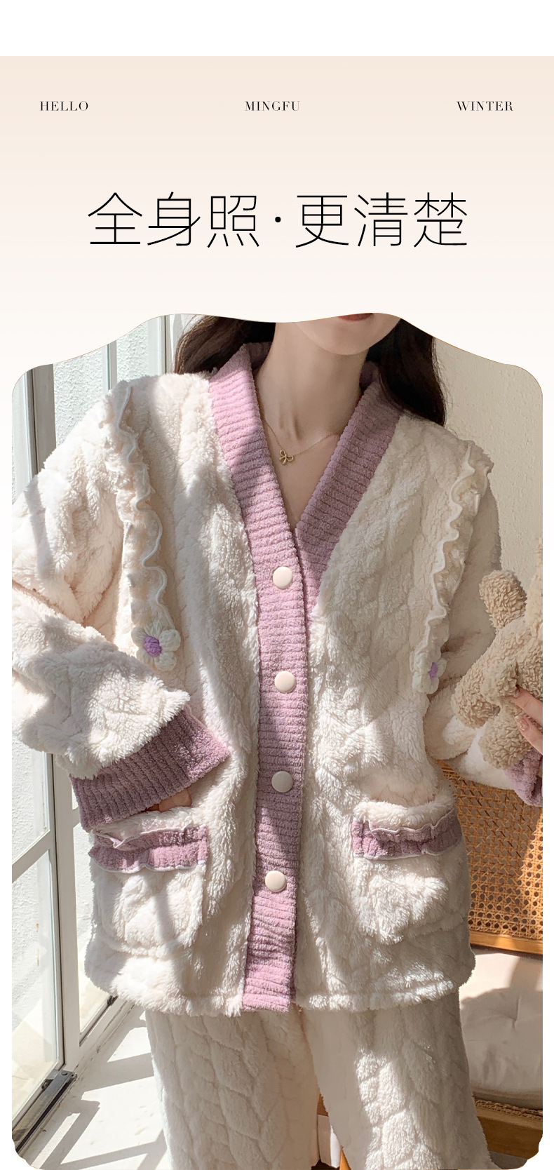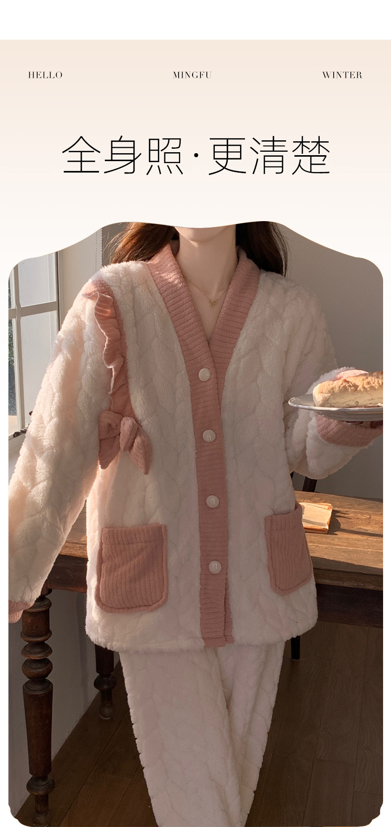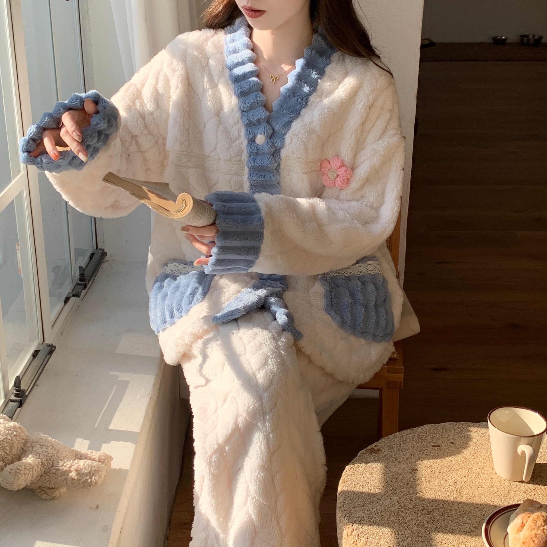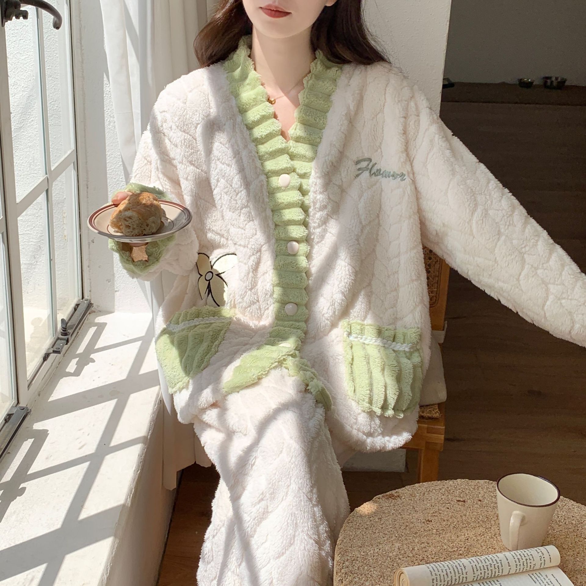 산호 양털 파자마 여성의 가을과 겨울 새로운 도착 기모 두꺼운 따뜻한 달콤한 플란넬 세트스토어 가기