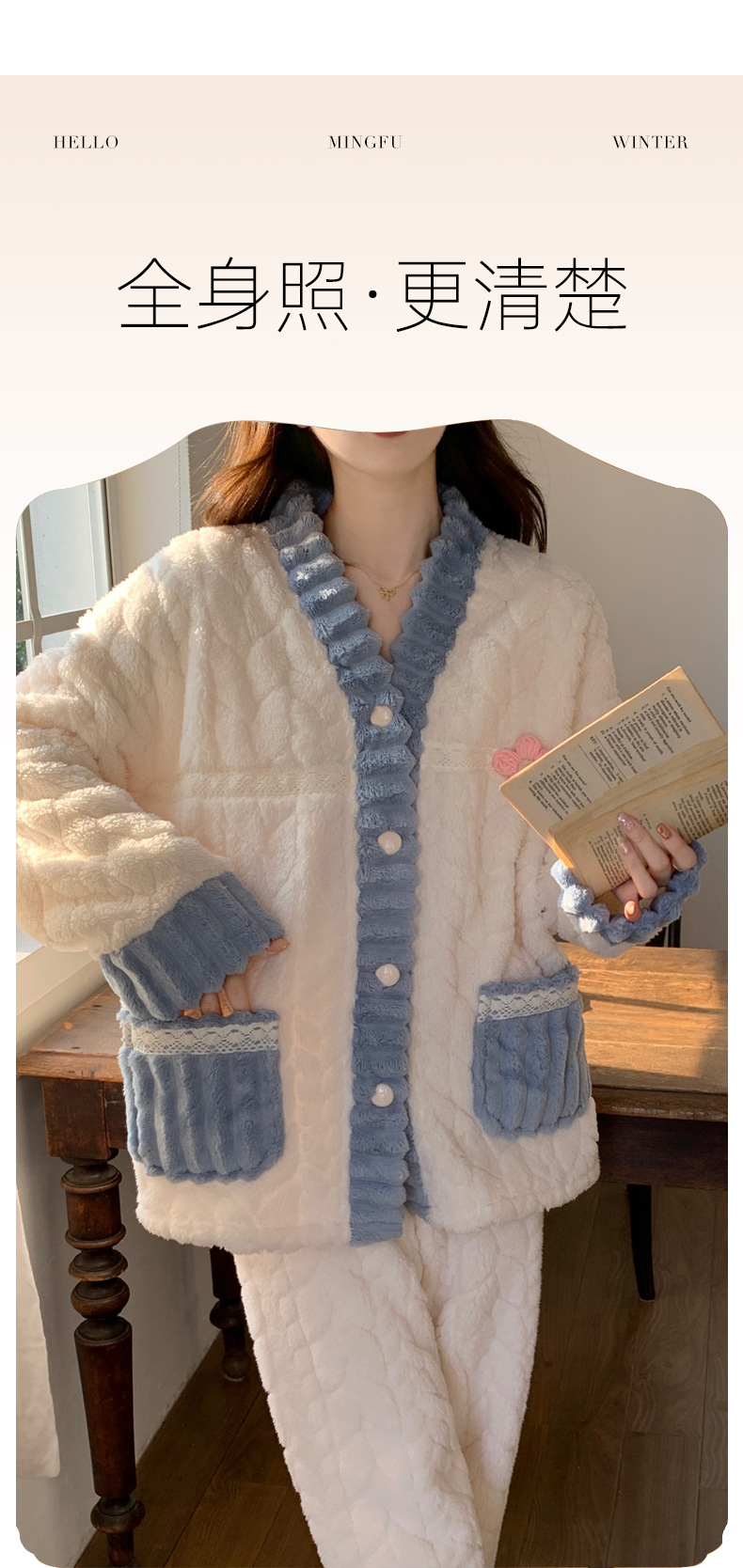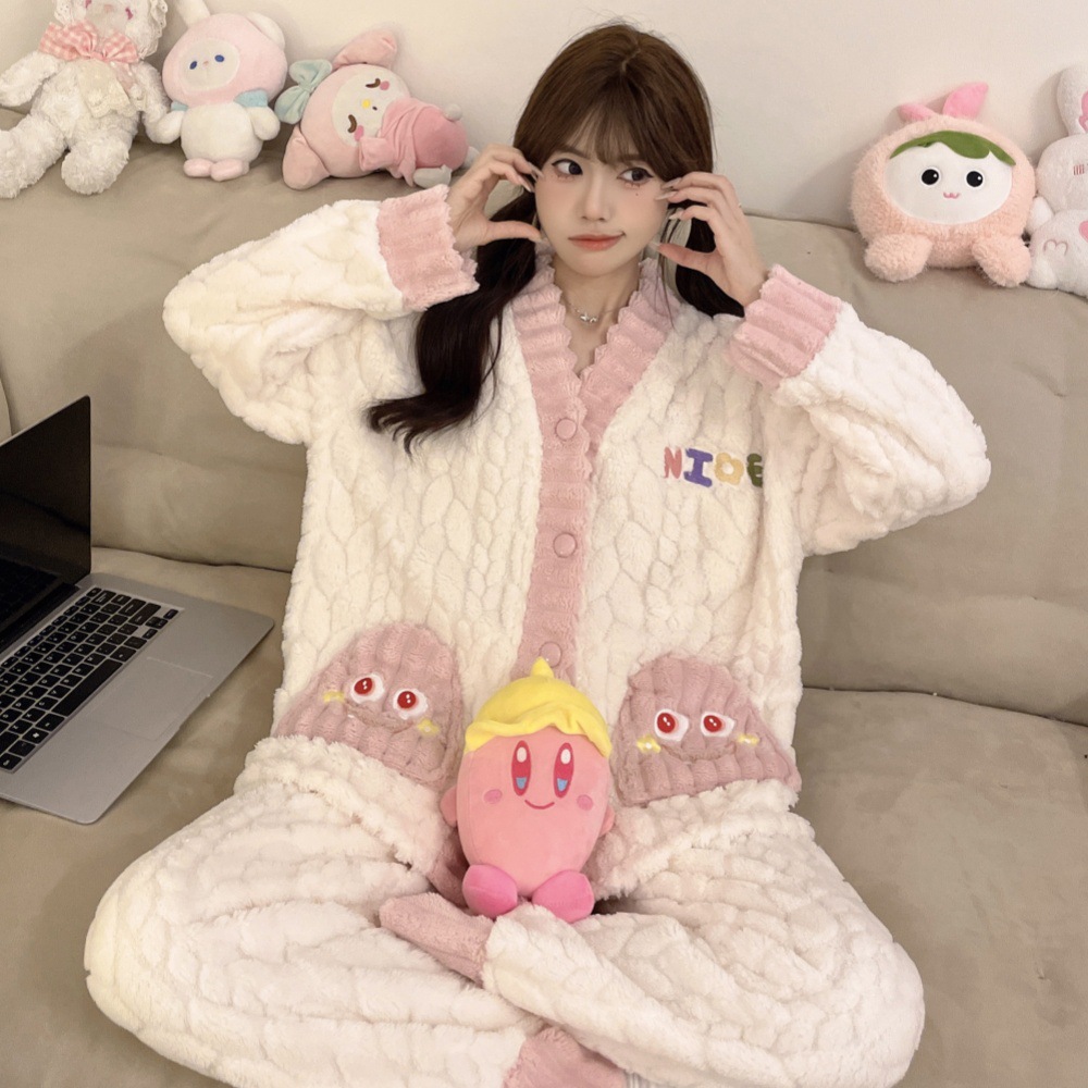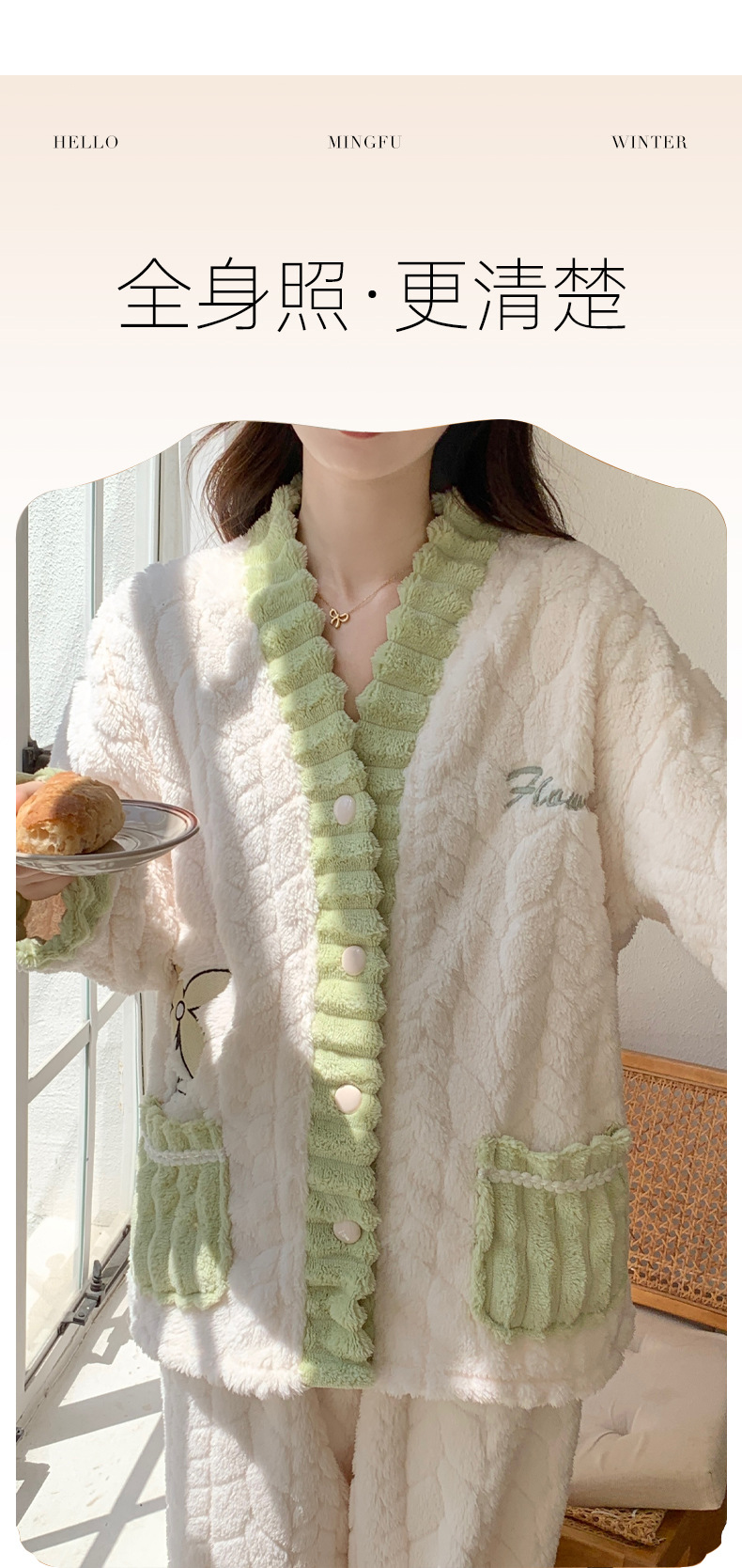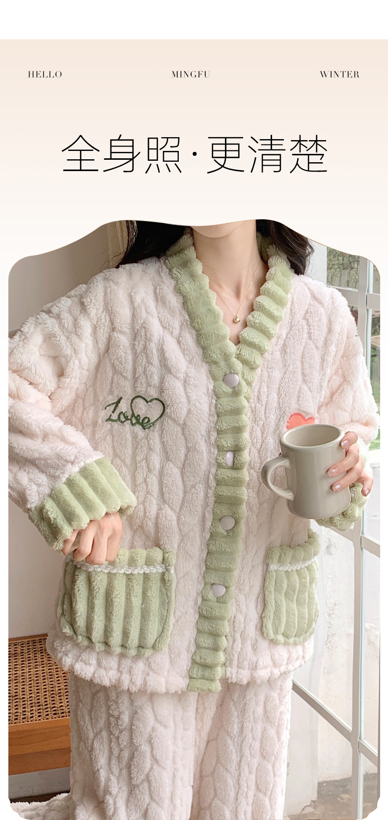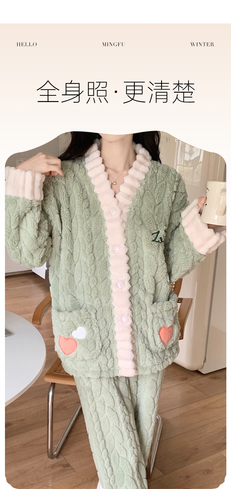 산호 양털 파자마 여성의 가을과 겨울 새로운 도착 기모 두꺼운 따뜻한 달콤한 플란넬 세트스토어 가기