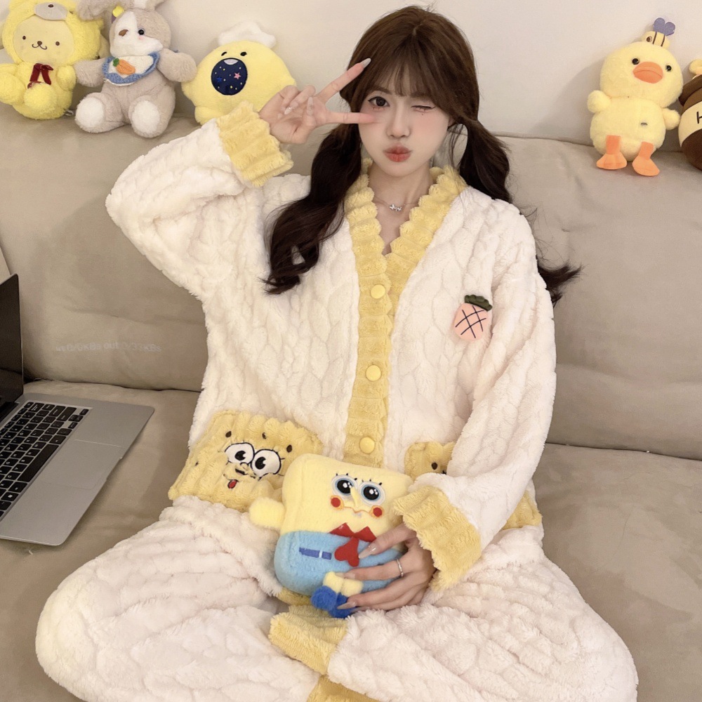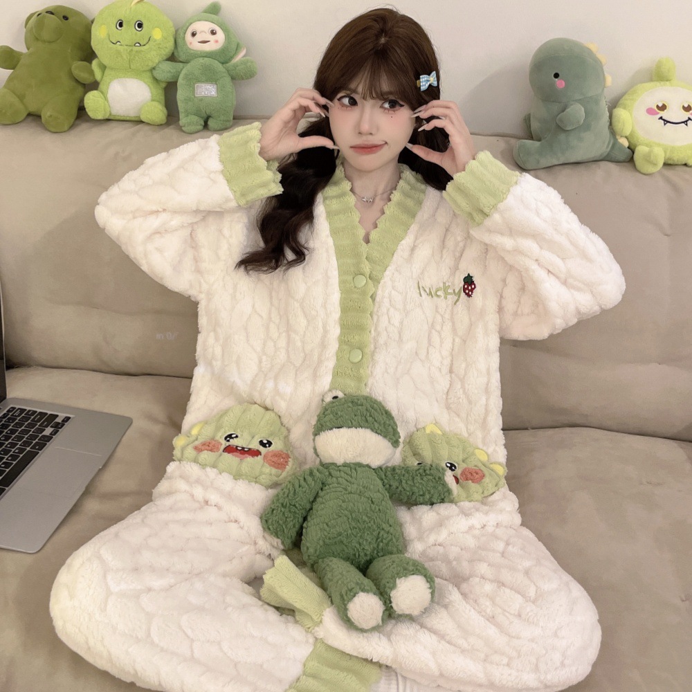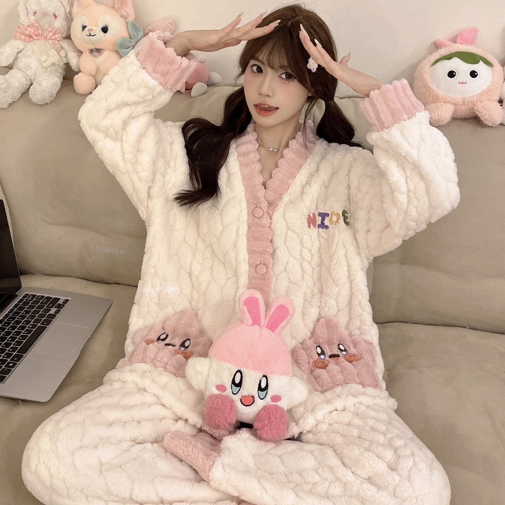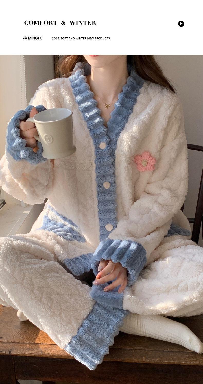 산호 양털 파자마 여성의 가을과 겨울 새로운 도착 기모 두꺼운 따뜻한 달콤한 플란넬 세트스토어 가기