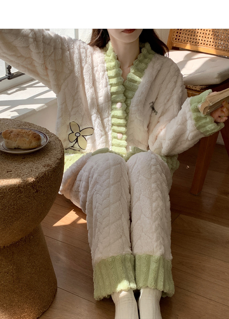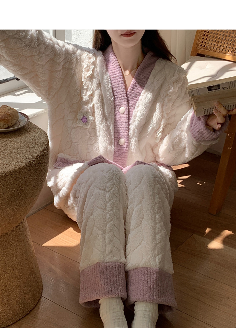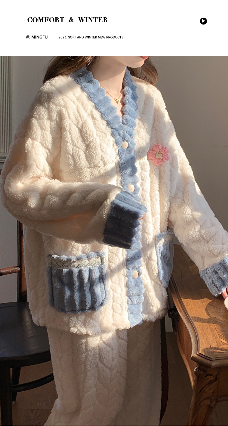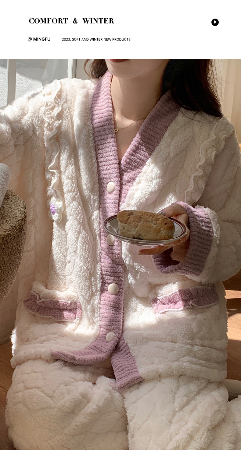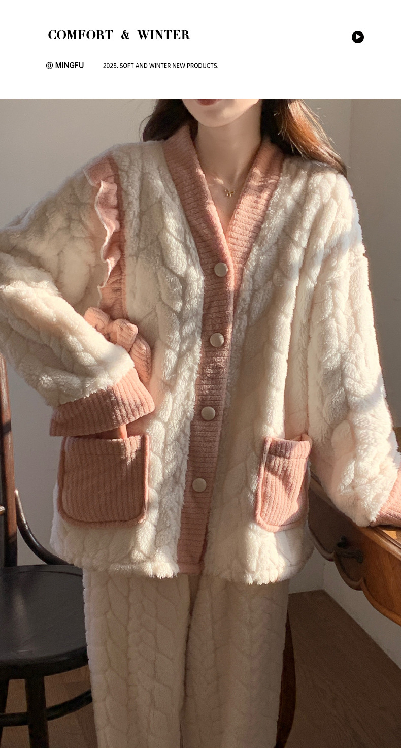 산호 양털 파자마 여성의 가을과 겨울 새로운 도착 기모 두꺼운 따뜻한 달콤한 플란넬 세트스토어 가기