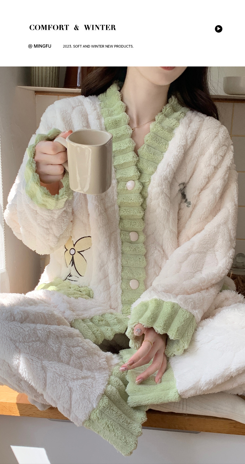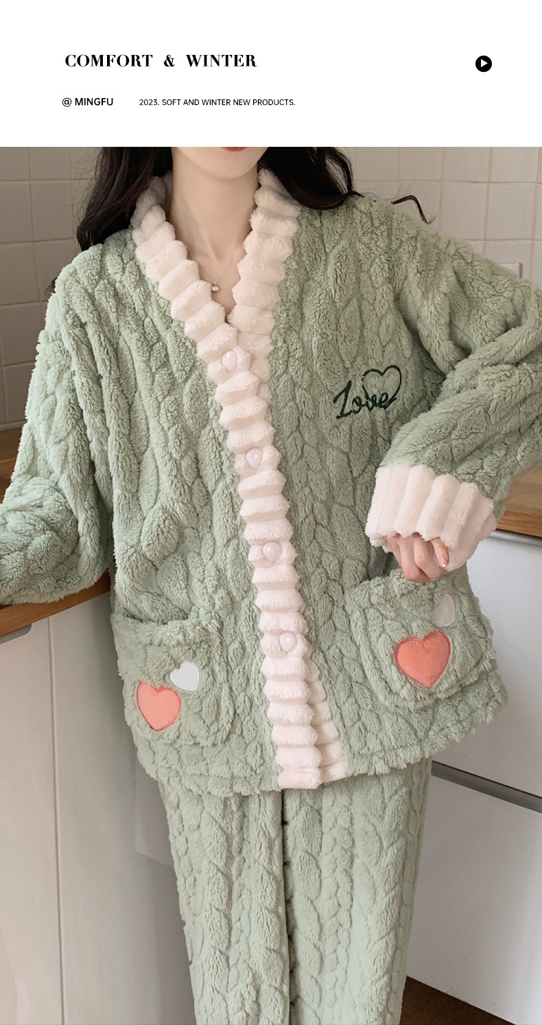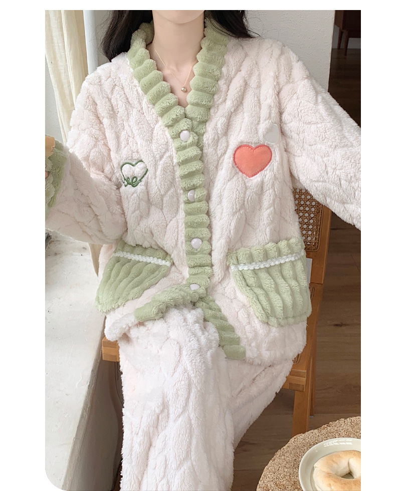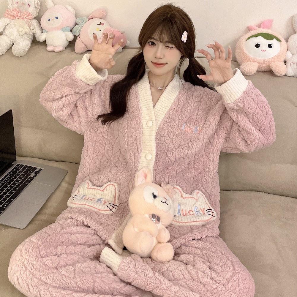 산호 양털 파자마 여성의 가을과 겨울 새로운 도착 기모 두꺼운 따뜻한 달콤한 플란넬 세트