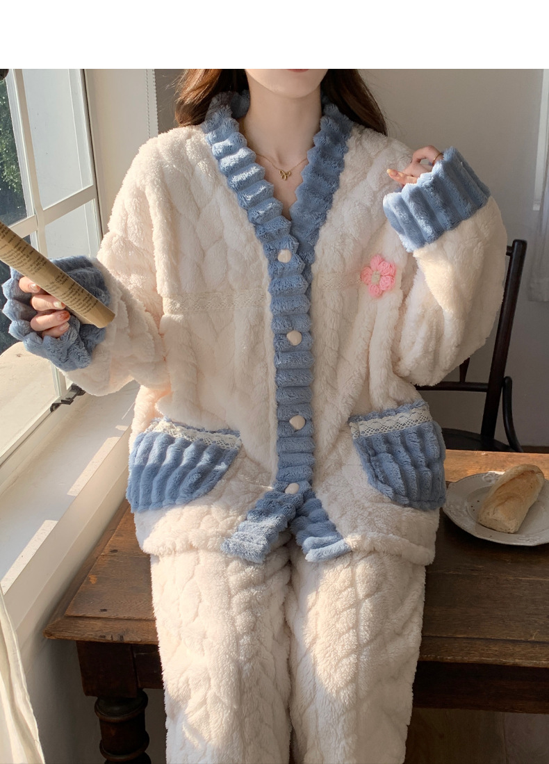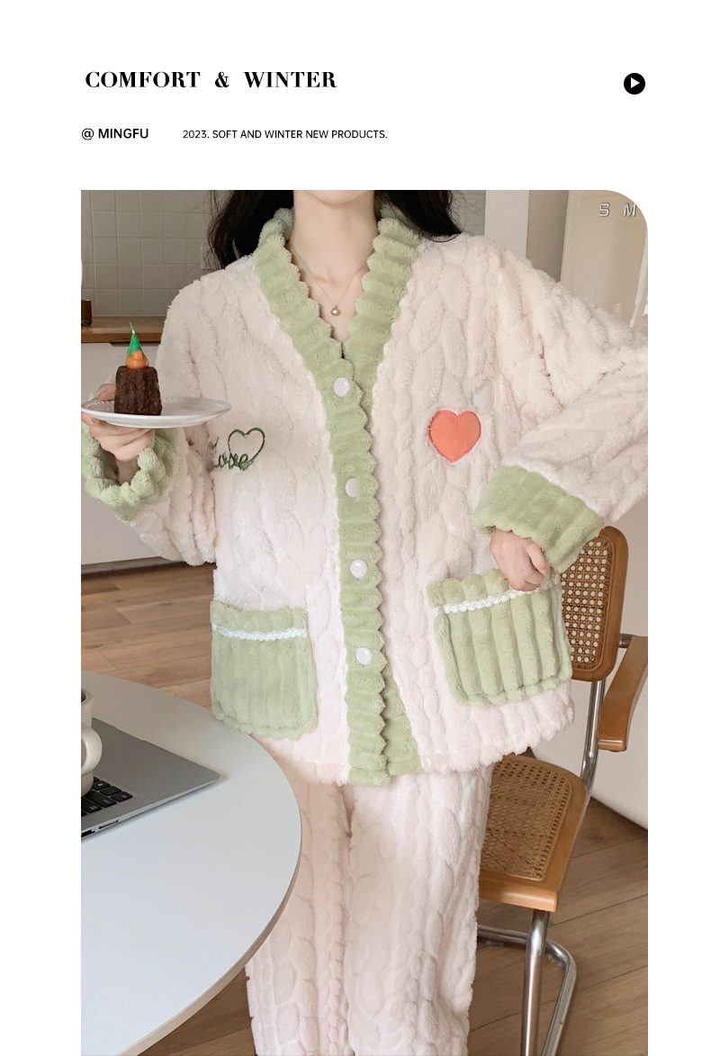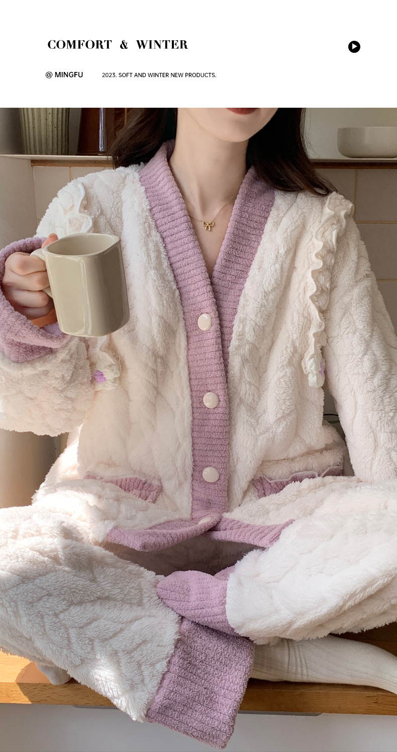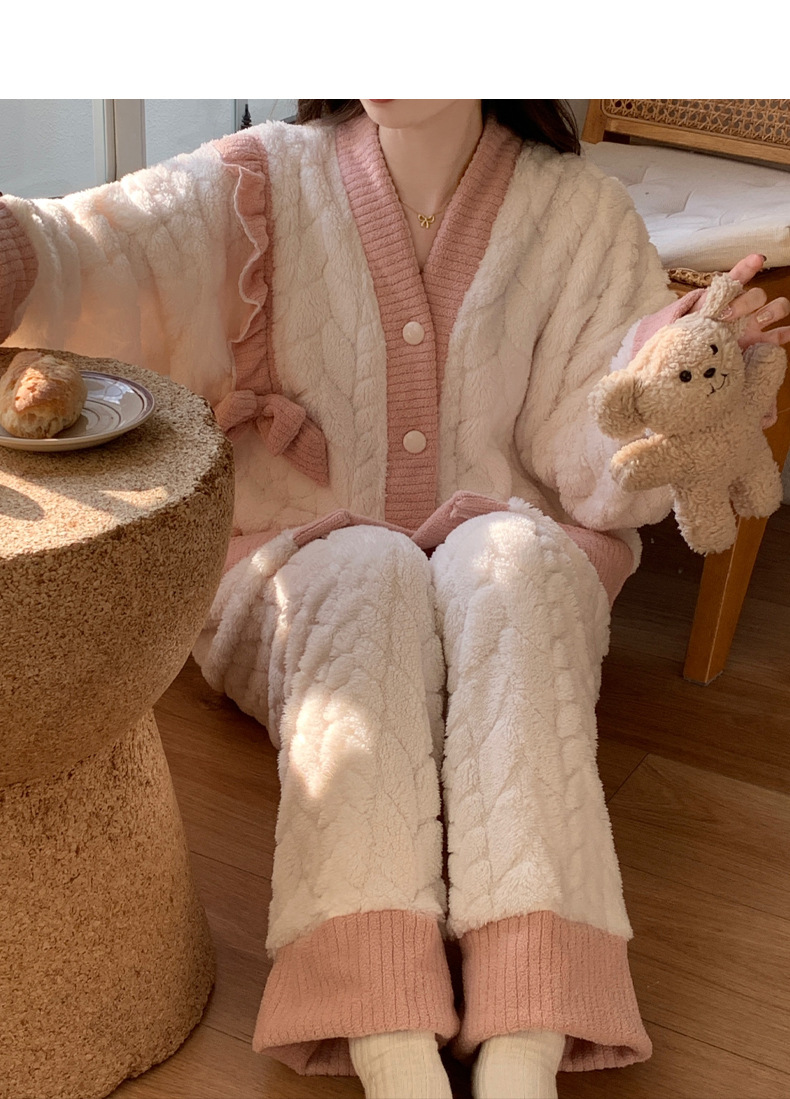 산호 양털 파자마 여성의 가을과 겨울 새로운 도착 기모 두꺼운 따뜻한 달콤한 플란넬 세트
