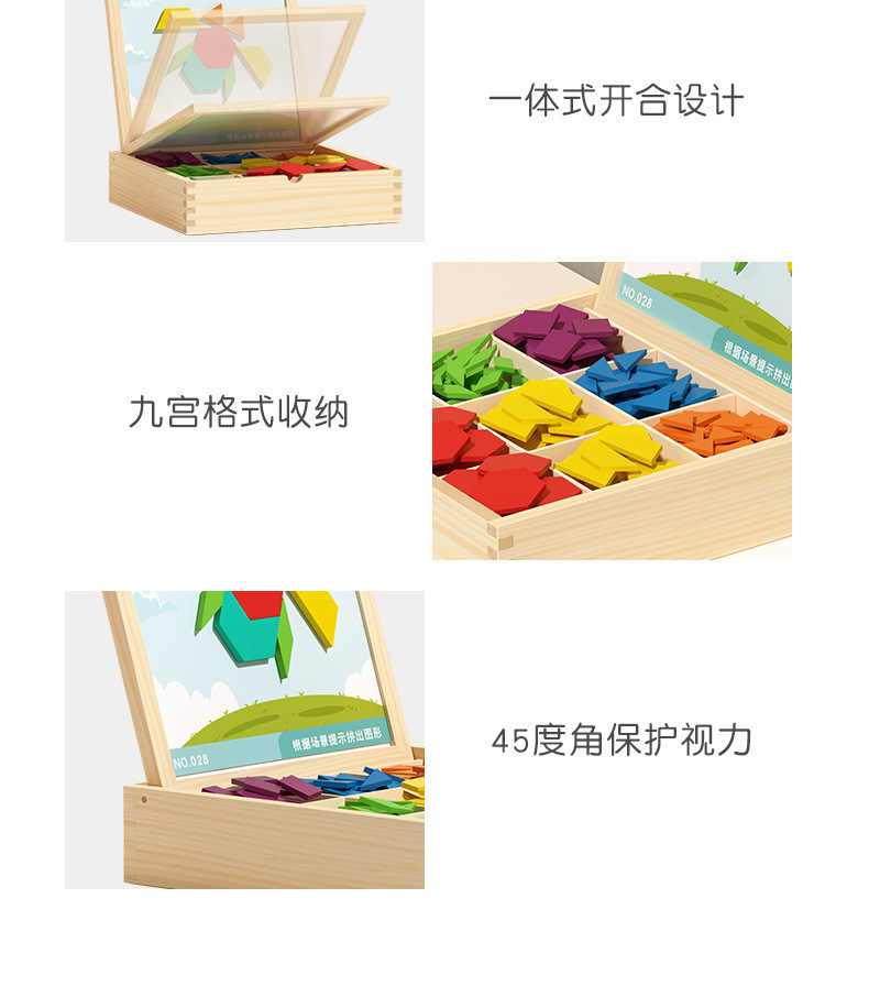 • 248P 나무 상자 자석 기하학 칠교놀이