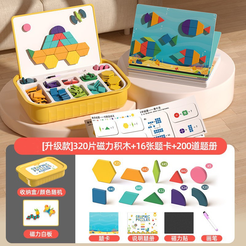 • 188P 나무 상자 자석 기하학 칠교놀이