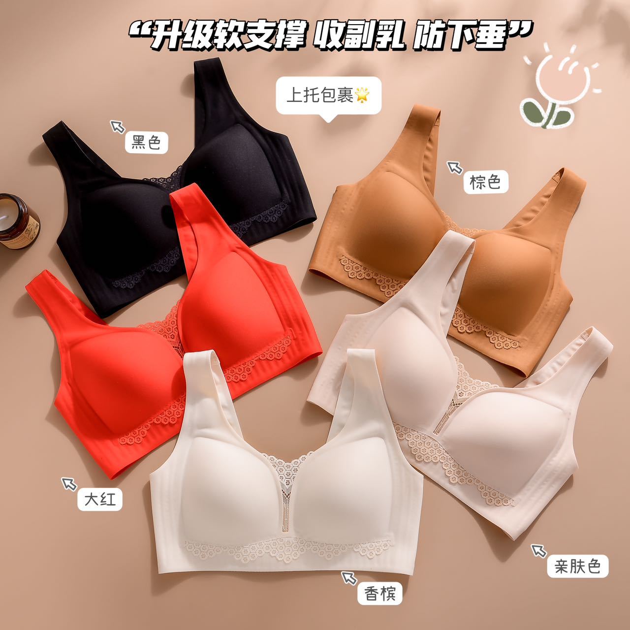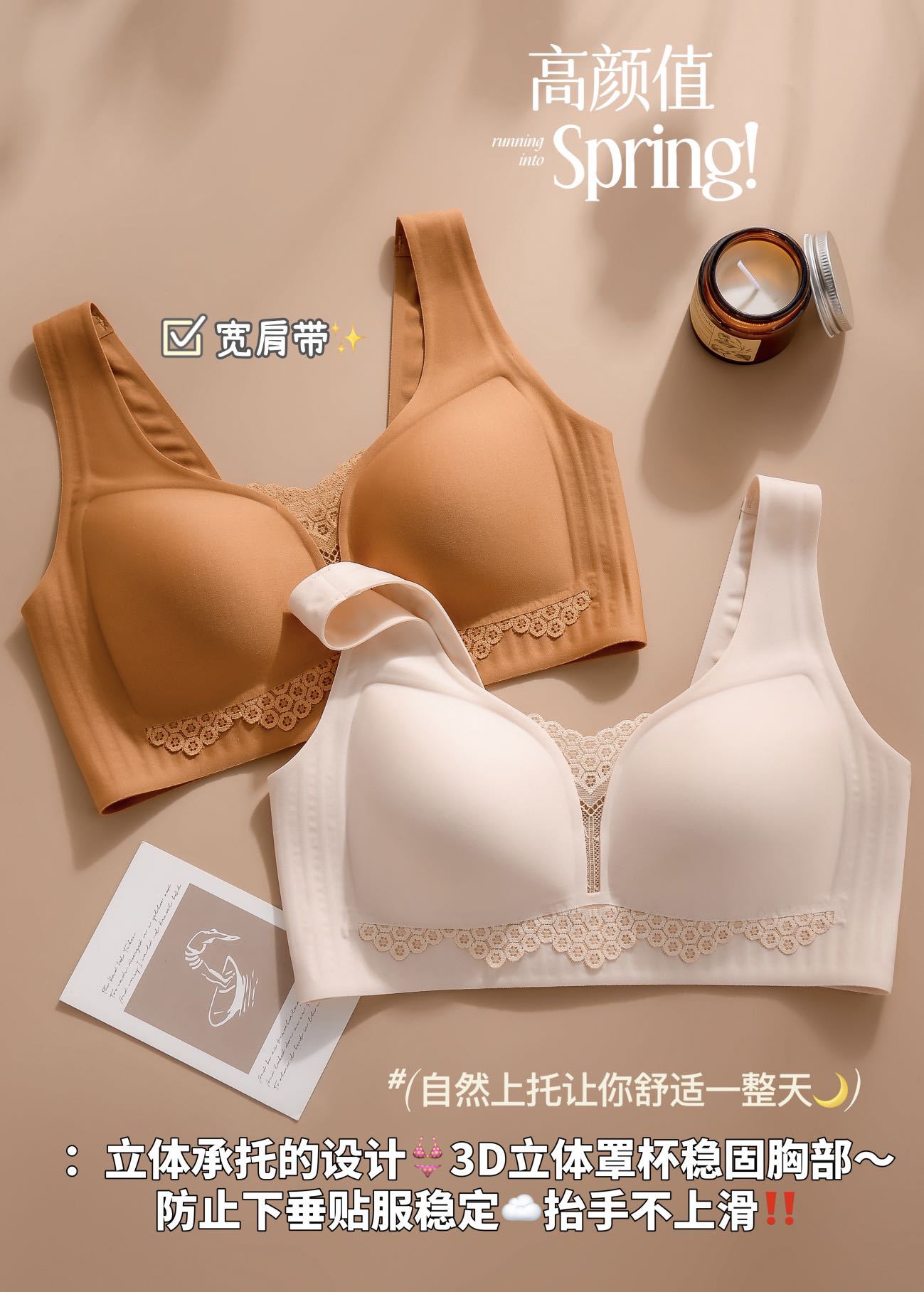 신제품 무봉제 소프트 서포트 브라 레이스 얇은 반고정 노와이어 브라 조절형 풀컵