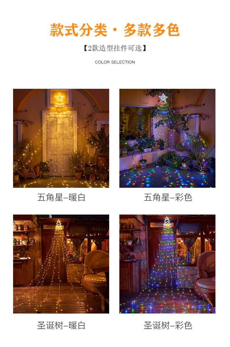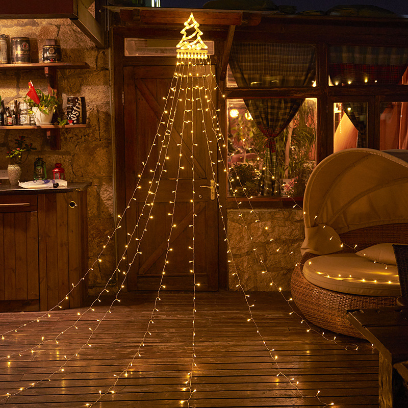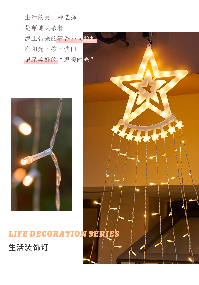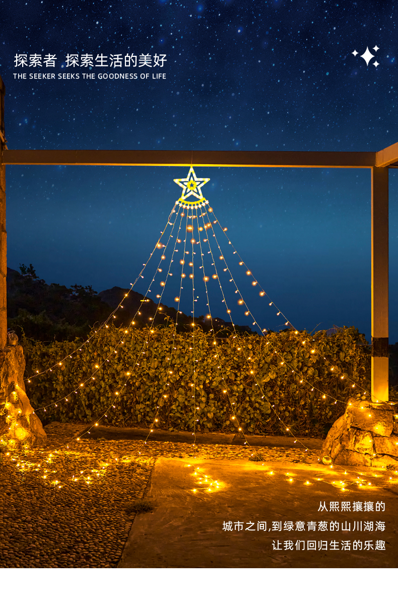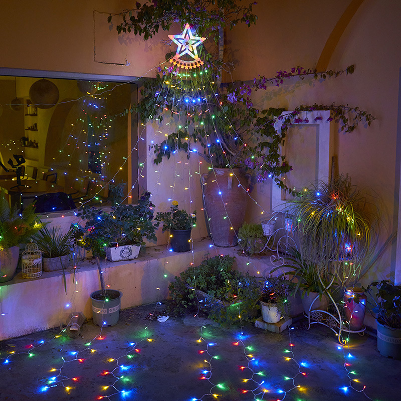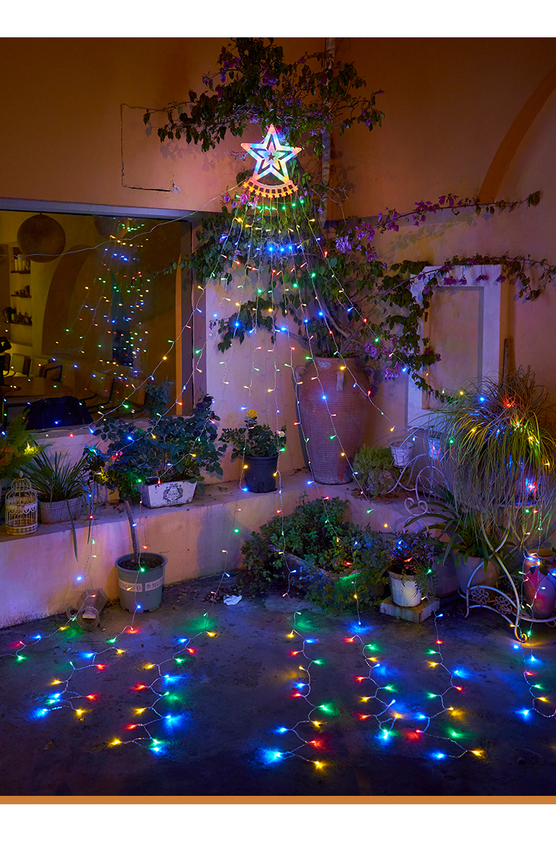 태양 5 각형 별 폭포 조명 흐르는 물 조명 크리스마스 장식 조명 안뜰 야외 발코니 방수 교수형 나무 조명
