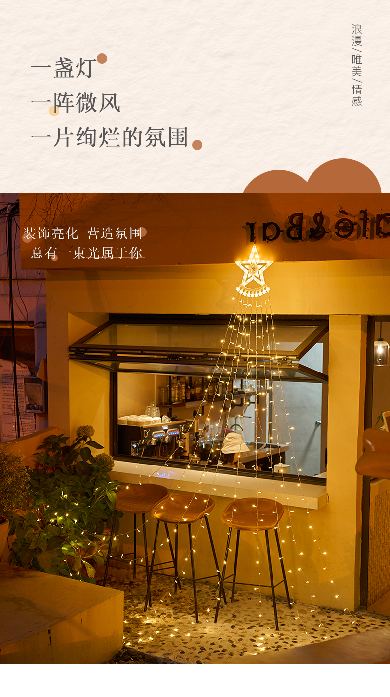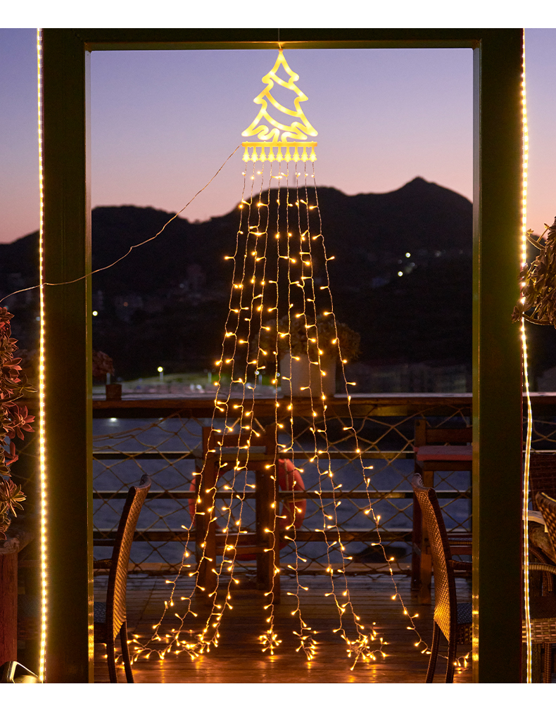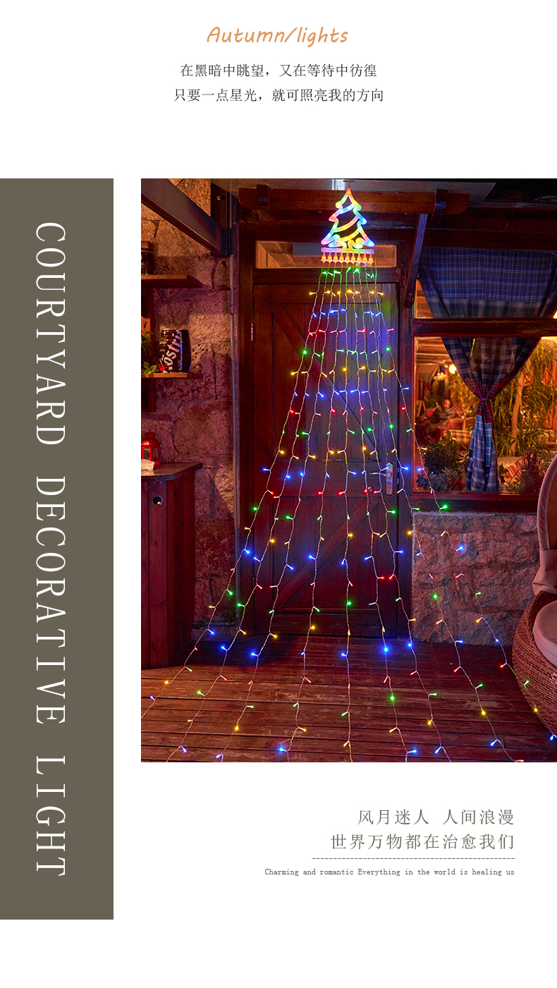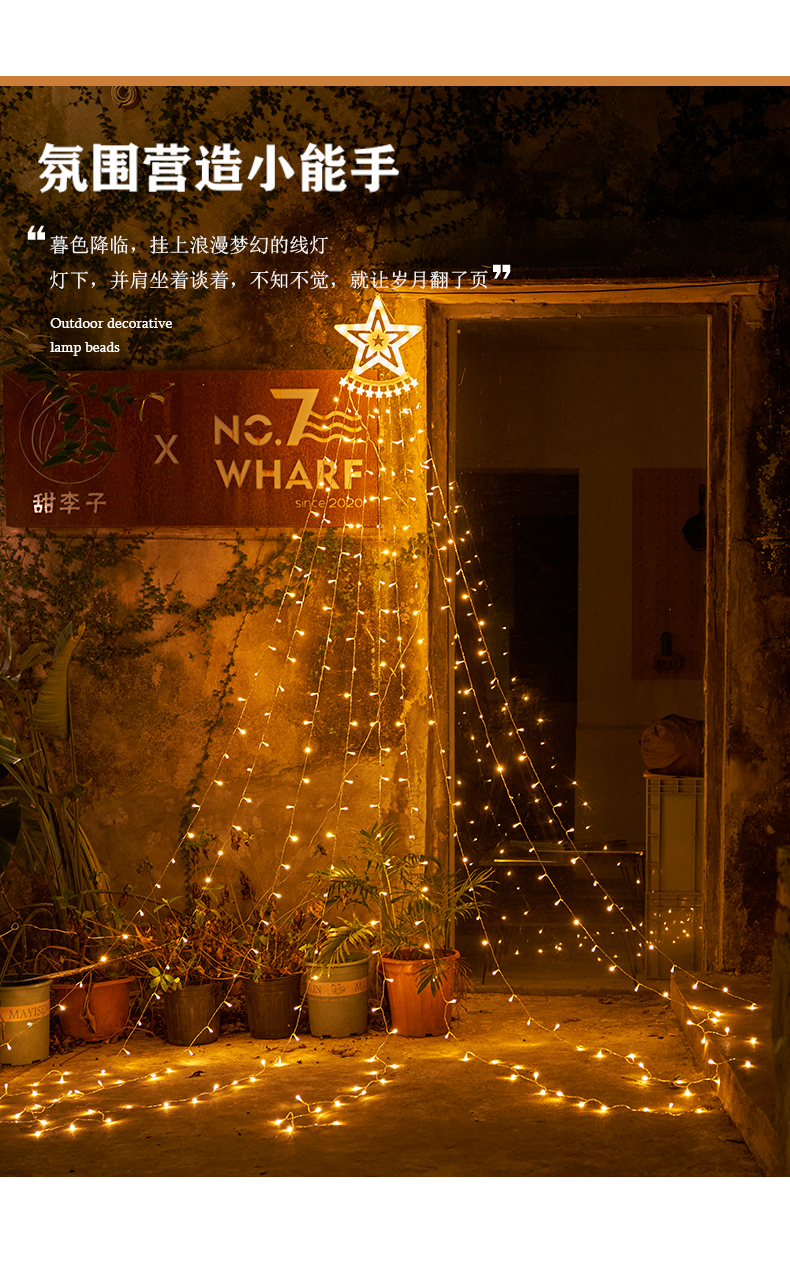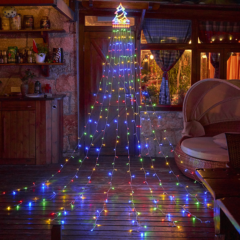 태양 5 각형 별 폭포 조명 흐르는 물 조명 크리스마스 장식 조명 안뜰 야외 발코니 방수 교수형 나무 조명
