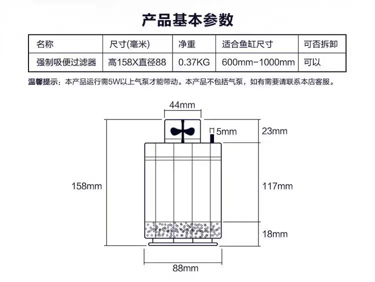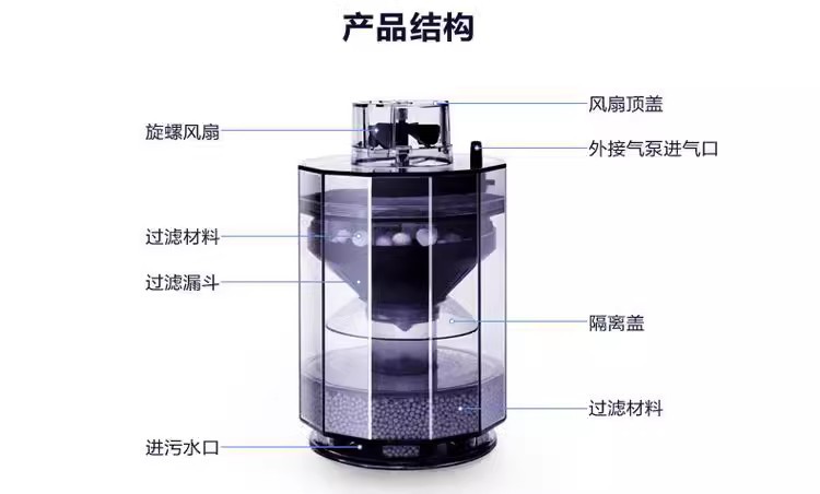 강제 흡입 필터 자동 청소 어항 침강 필터 공압 물 고블린 산소 증가 박테리아 정수