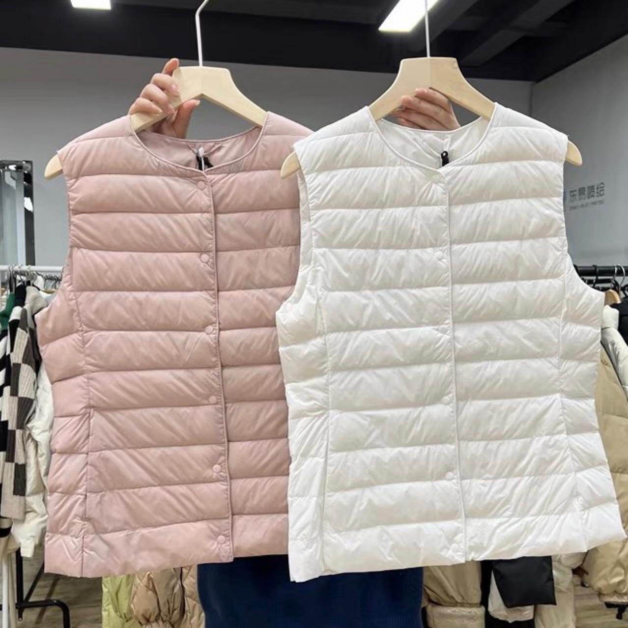 2025 가을 겨울 신상 경량 다운 재킷 여성 슬림핏 이너 조끼 라운드넥 V넥 이너웨어 경량 조끼 얇은 스타일스토어 가기