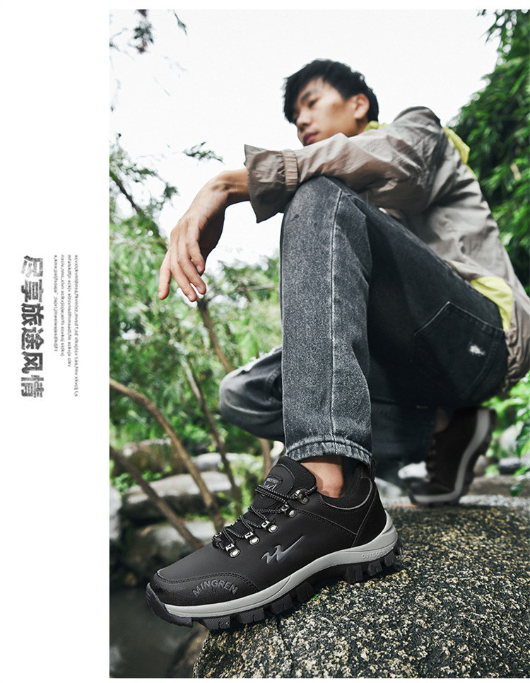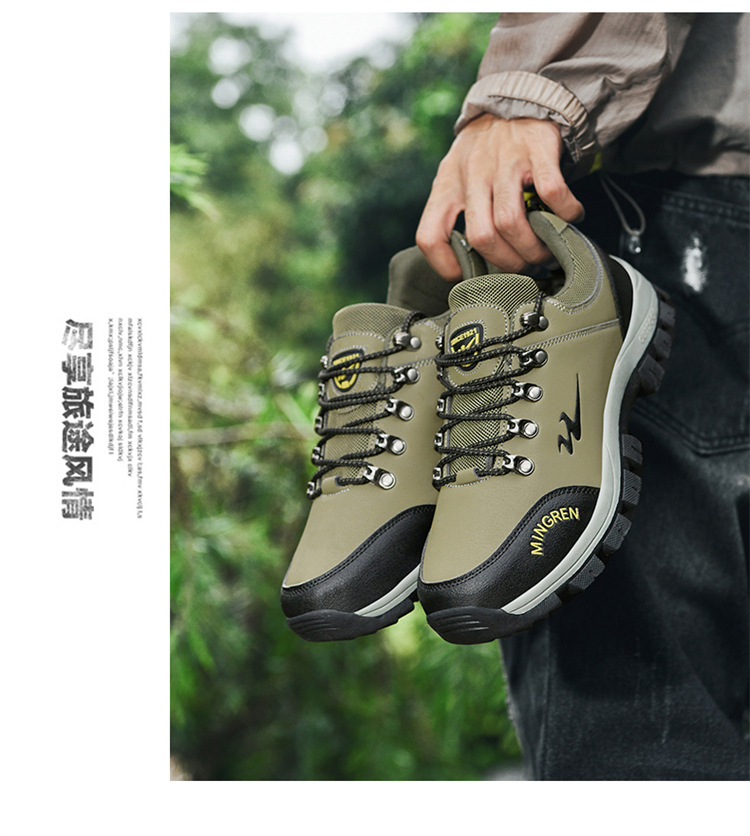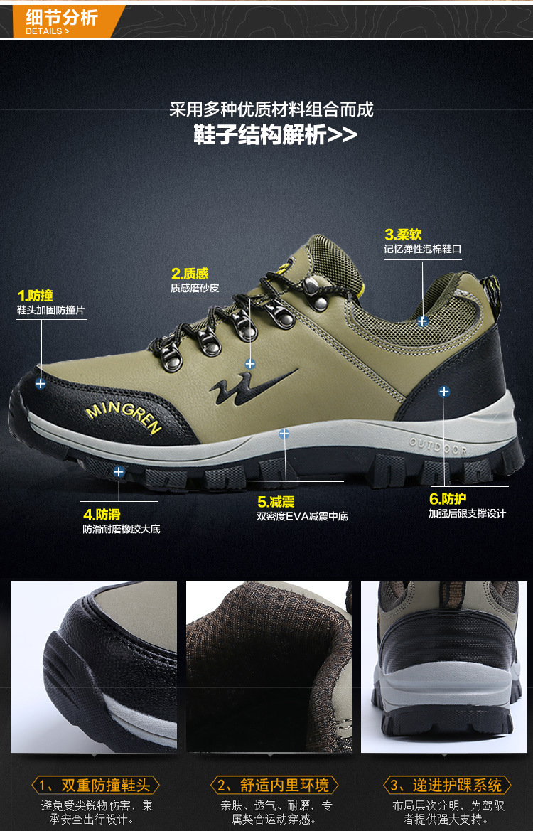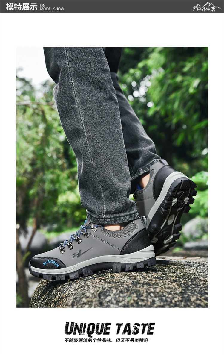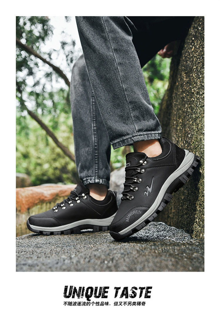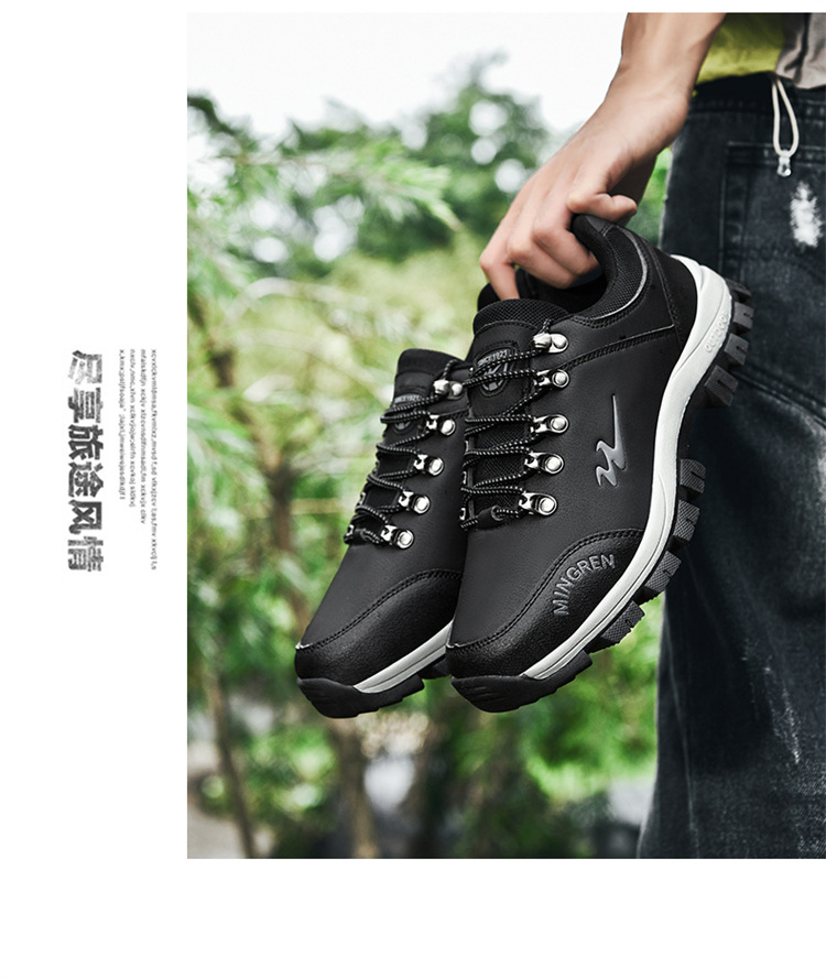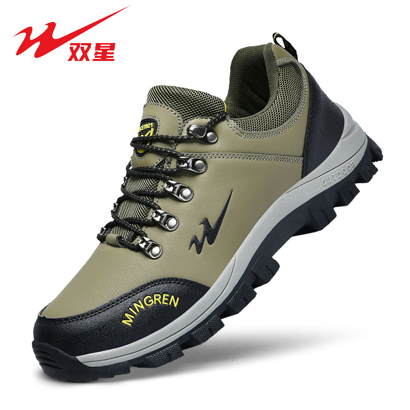 더블 스타 남성 신발 가죽 표면 방수 부드러운 밑창 야외 하이킹 신발 남성용 미끄럼 방지 내마모성 스포츠 하이킹 신발 남성용스토어 가기