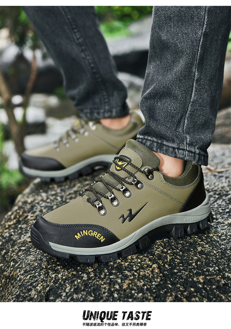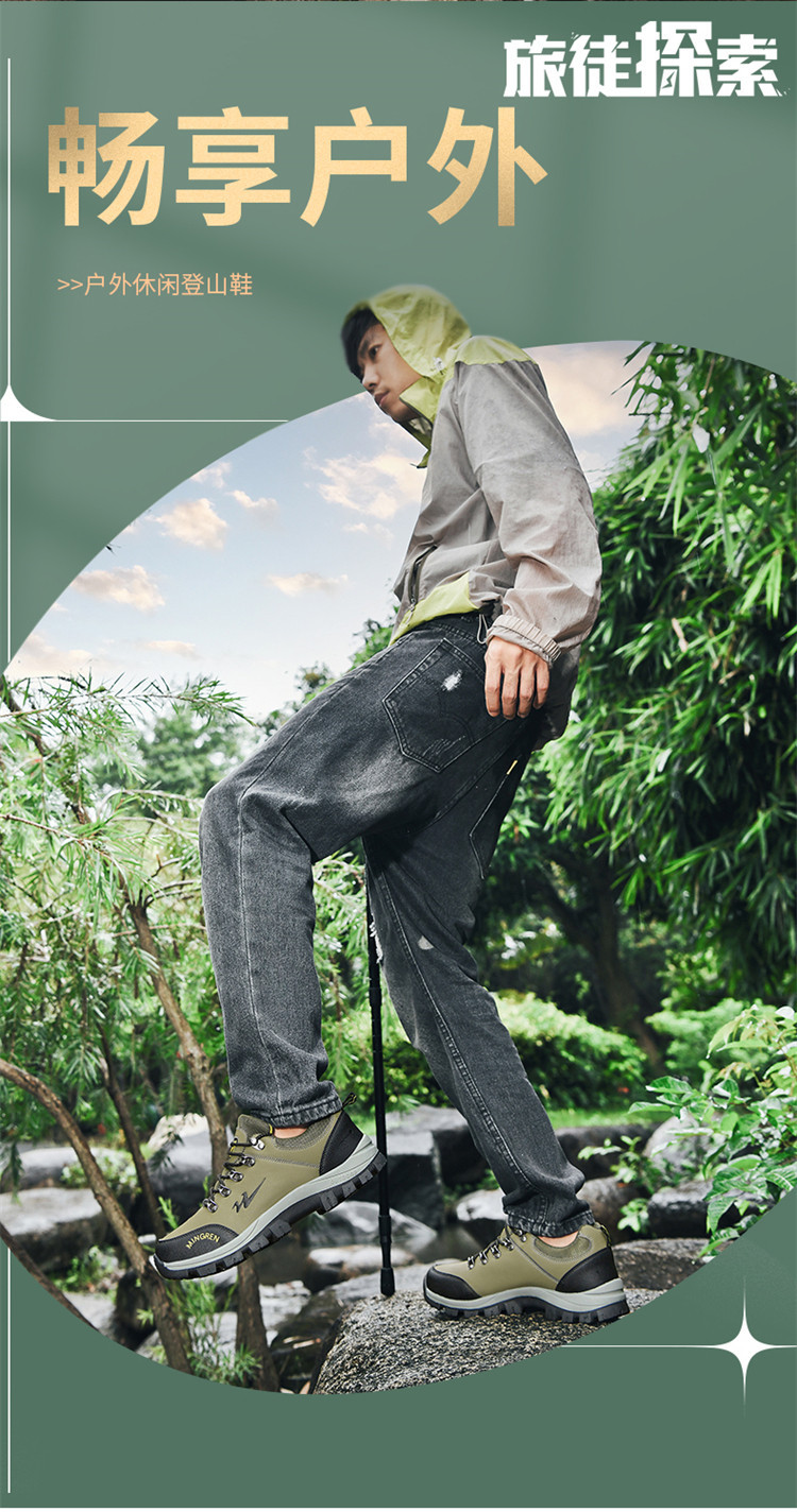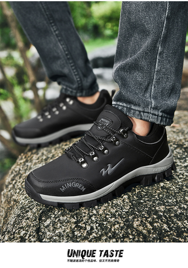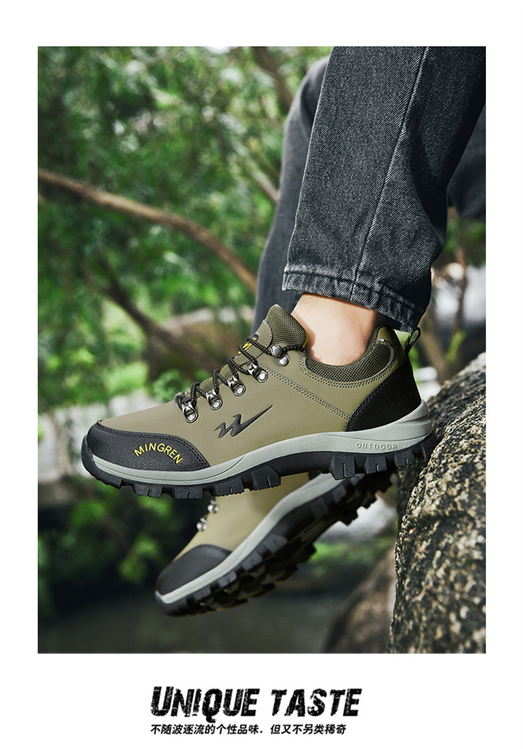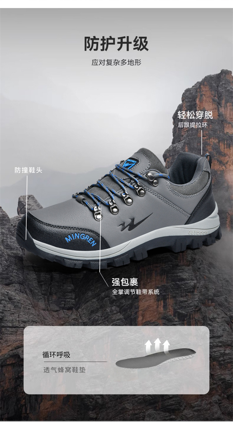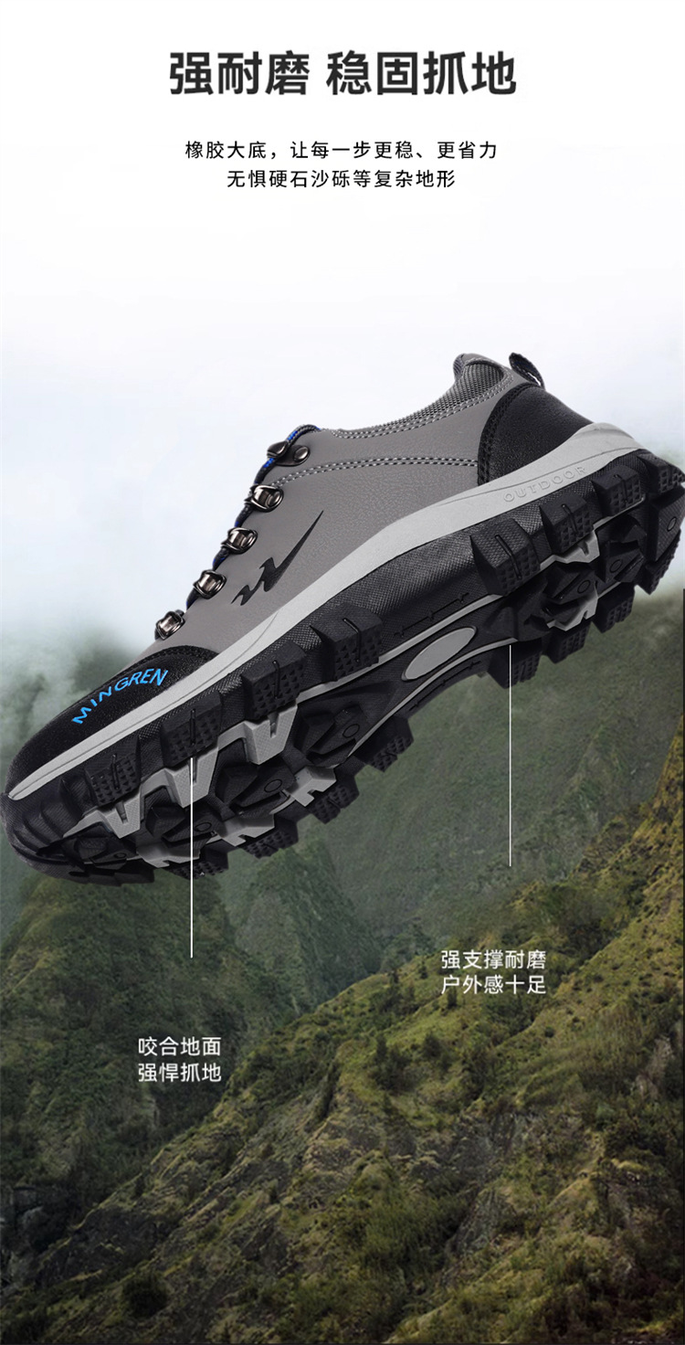 더블 스타 남성 신발 가죽 표면 방수 부드러운 밑창 야외 하이킹 신발 남성용 미끄럼 방지 내마모성 스포츠 하이킹 신발 남성용스토어 가기