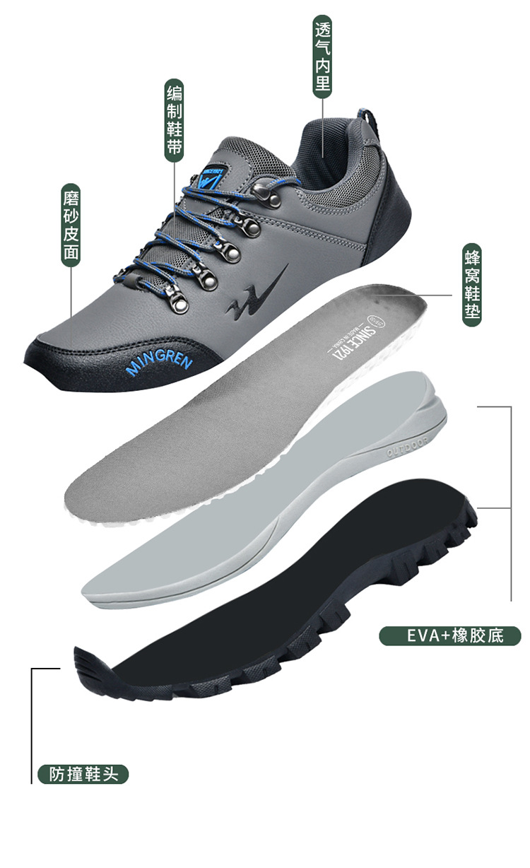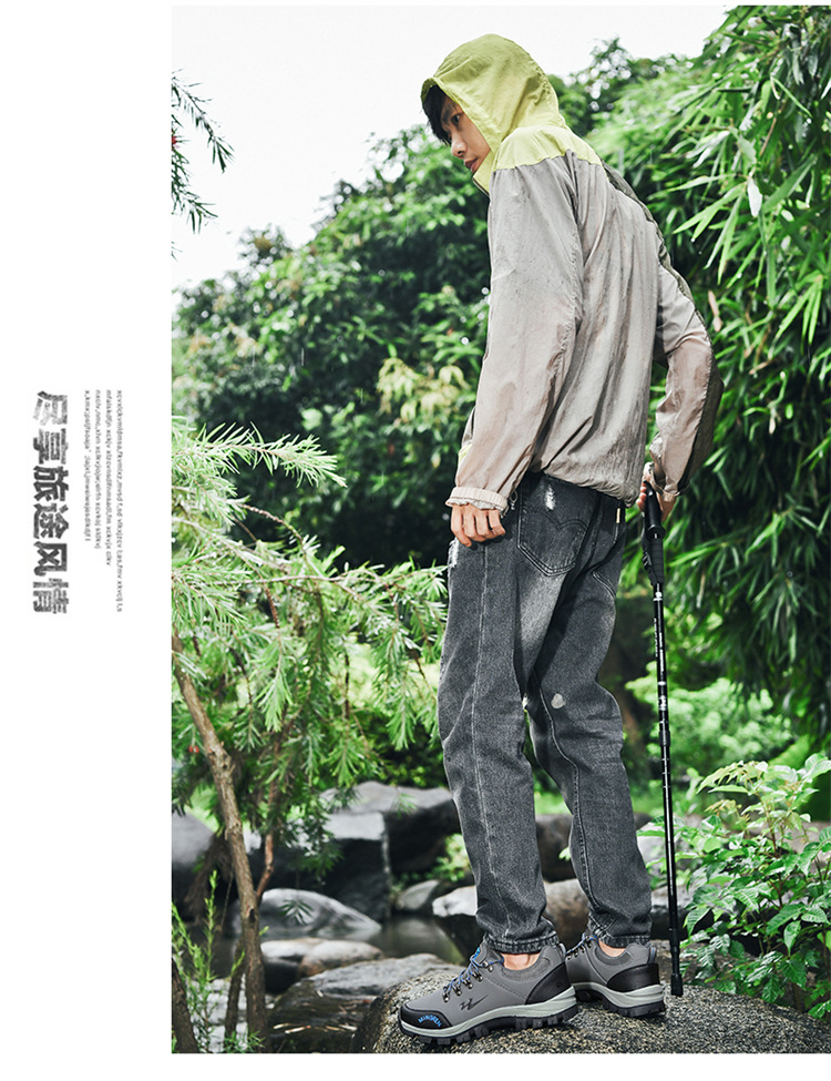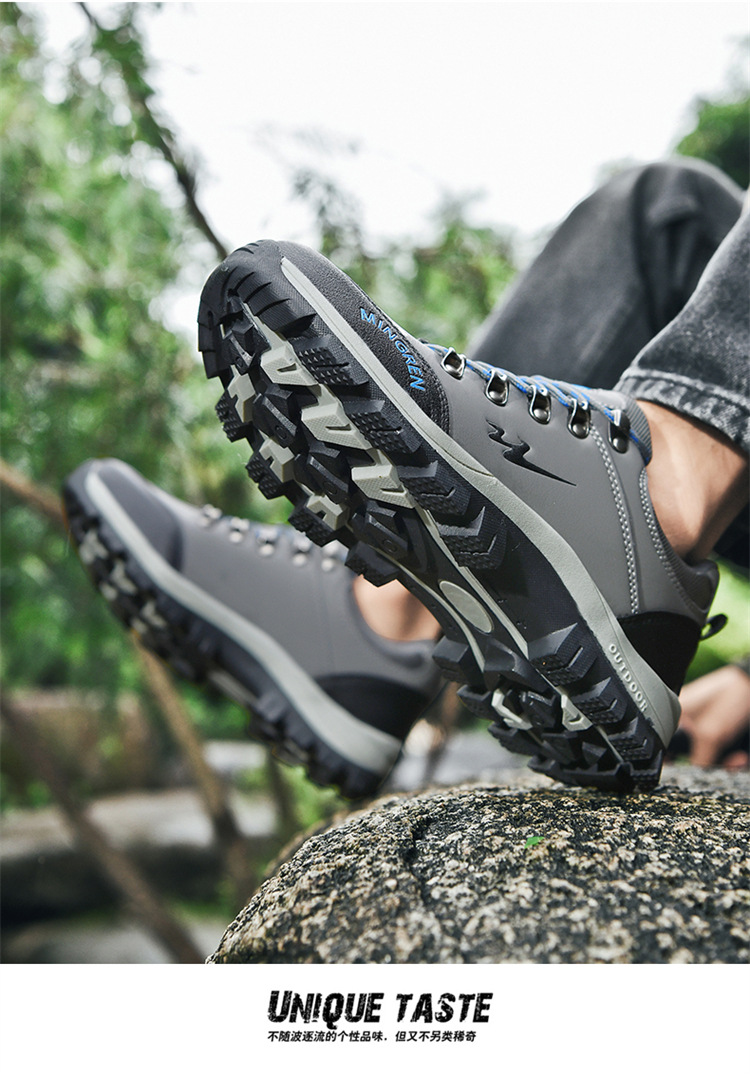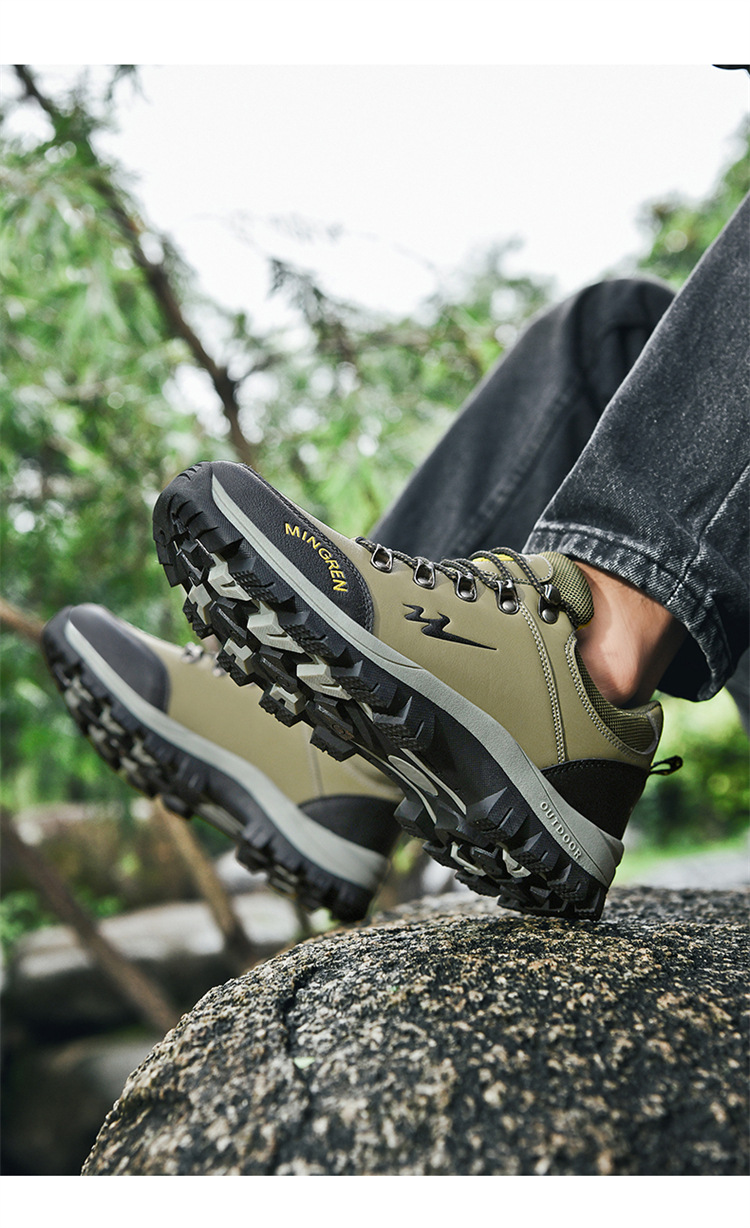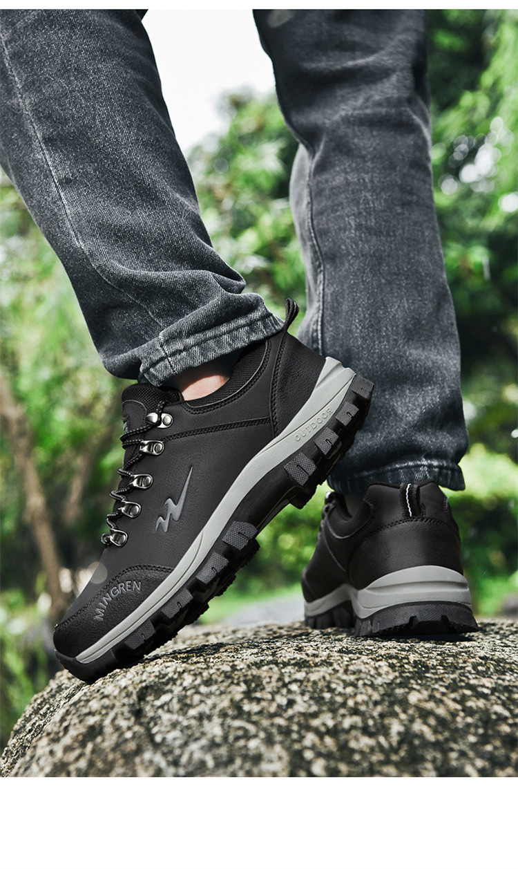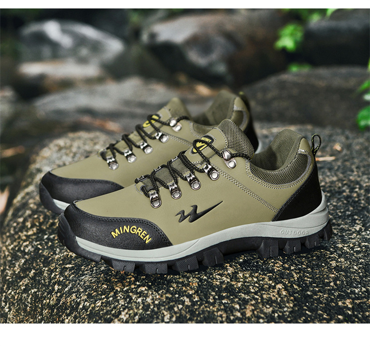 더블 스타 남성 신발 가죽 표면 방수 부드러운 밑창 야외 하이킹 신발 남성용 미끄럼 방지 내마모성 스포츠 하이킹 신발 남성용스토어 가기