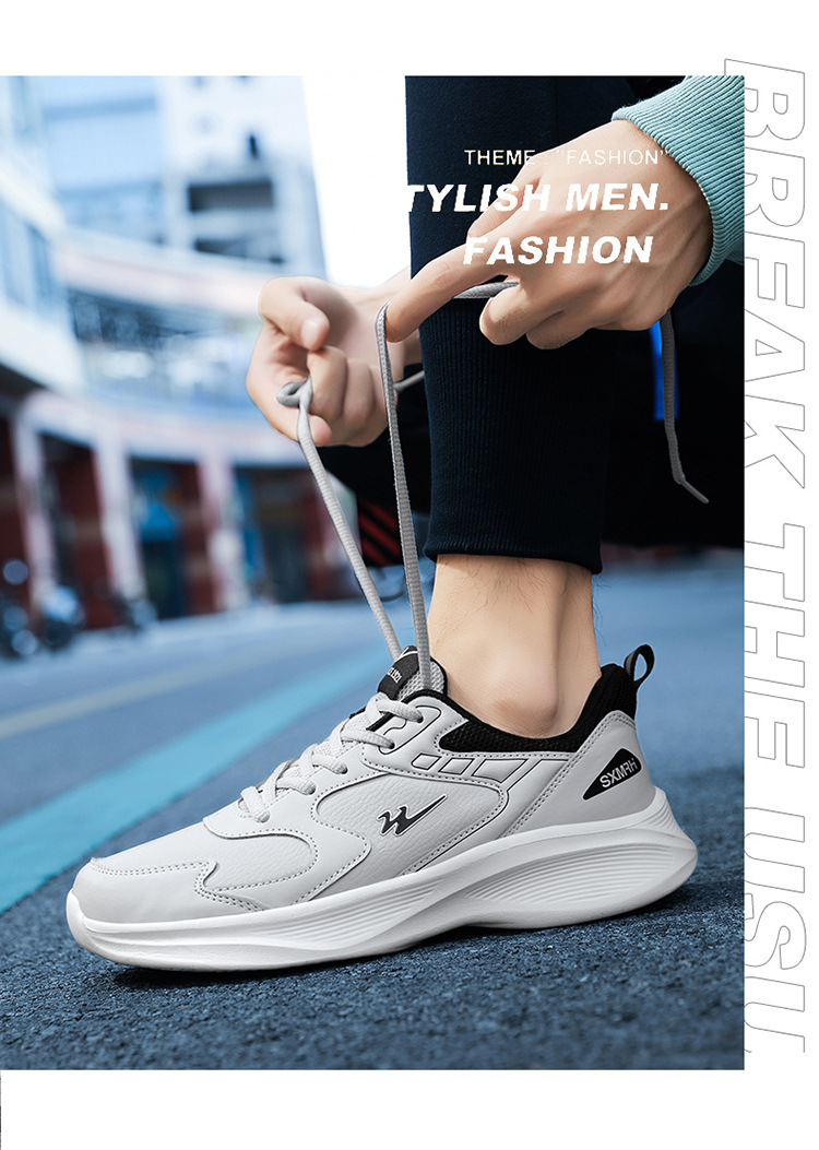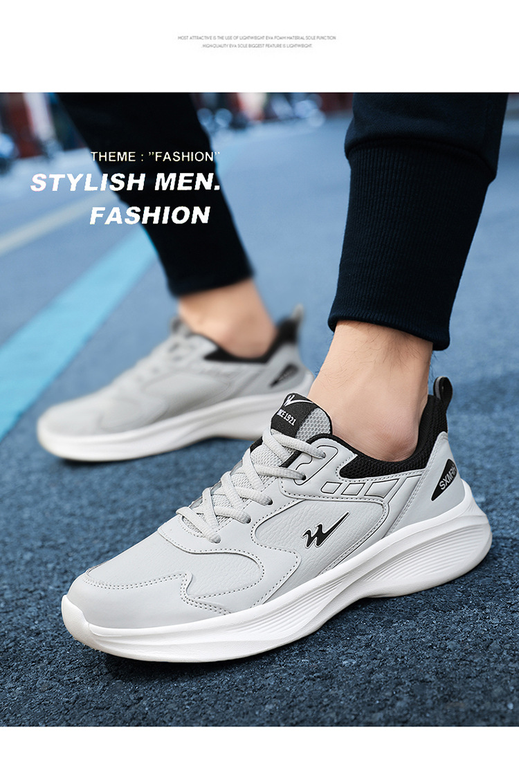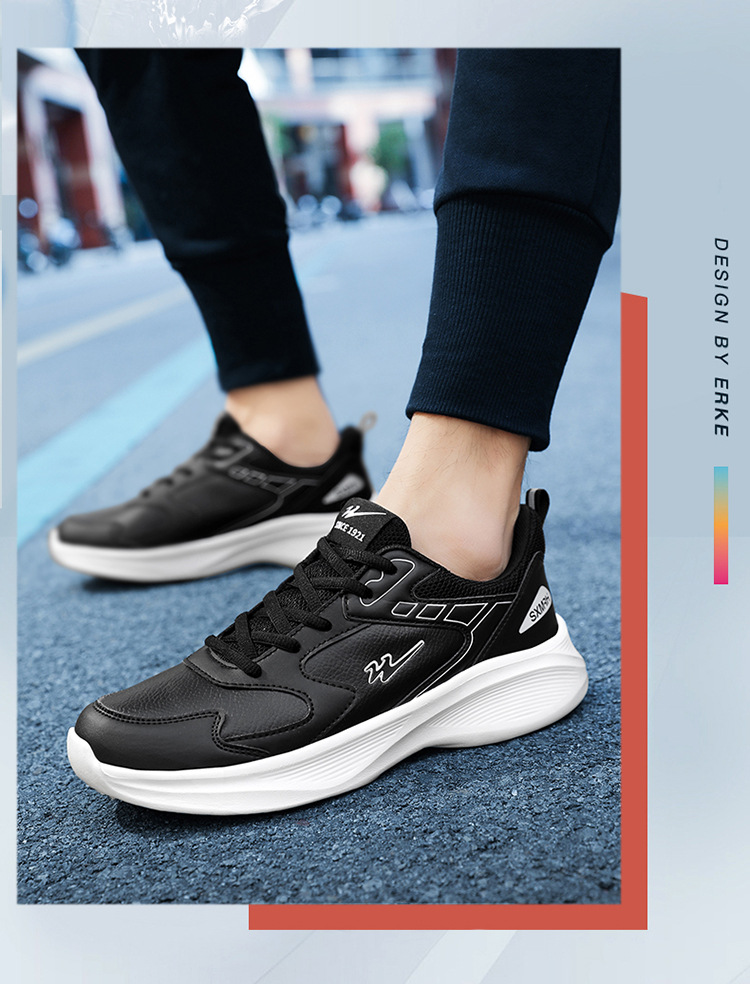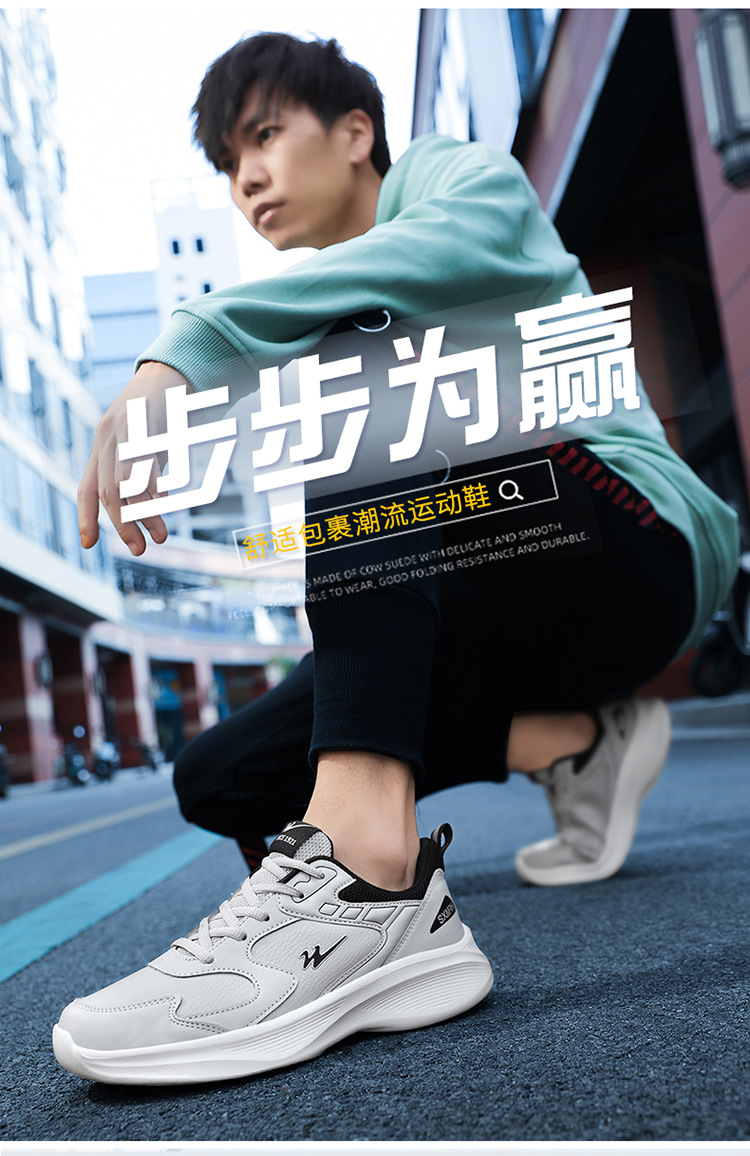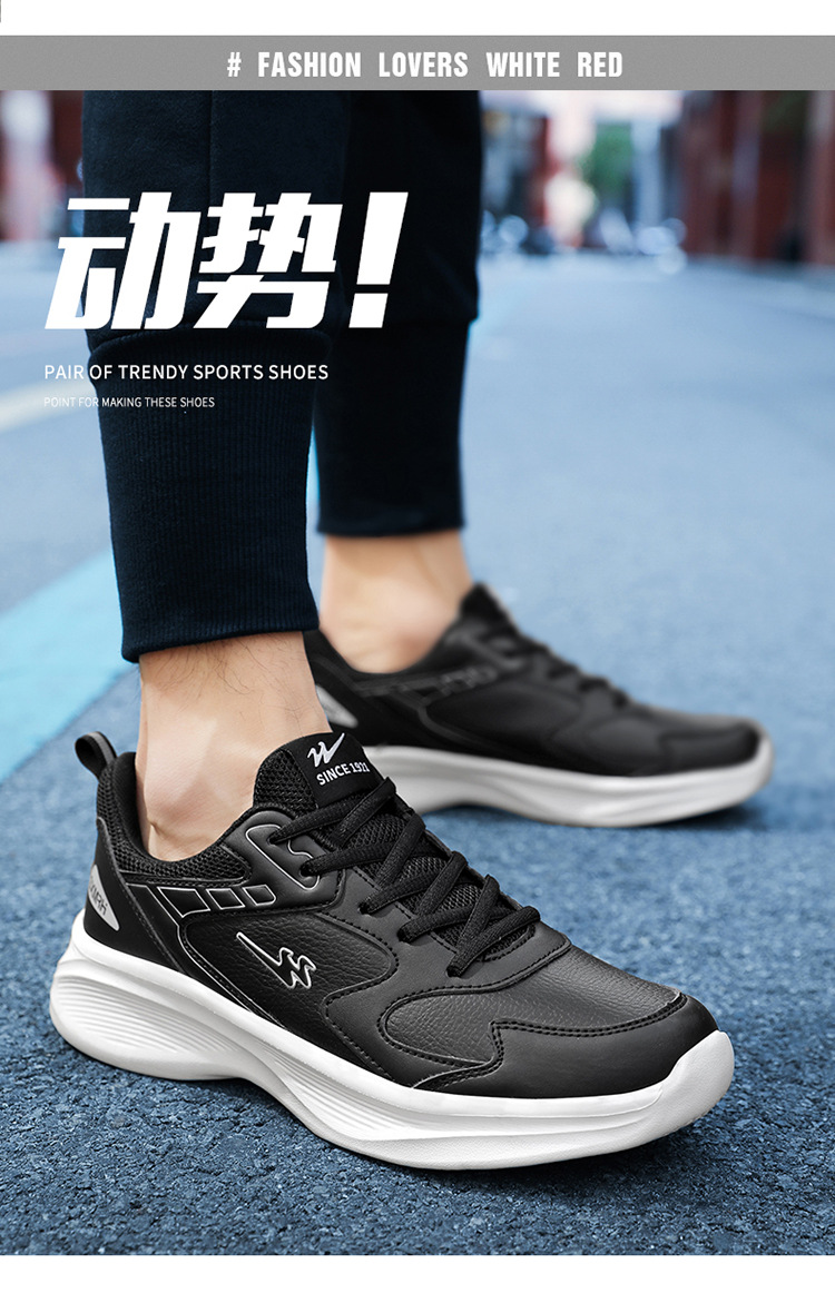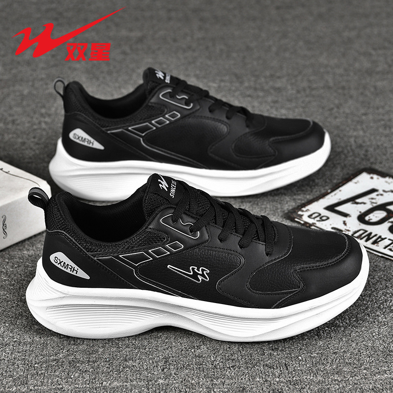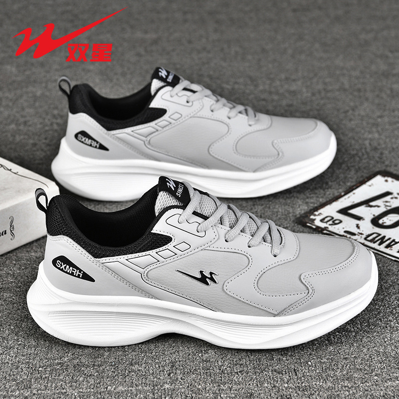 더블 스타 남성 신발 봄과 가을 새 가죽 방수 통기성 운동화 부드러운 바닥 미끄럼 방지 내마모성 패션 모든 매치 러닝화