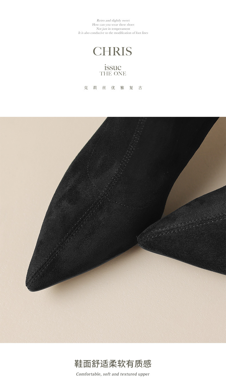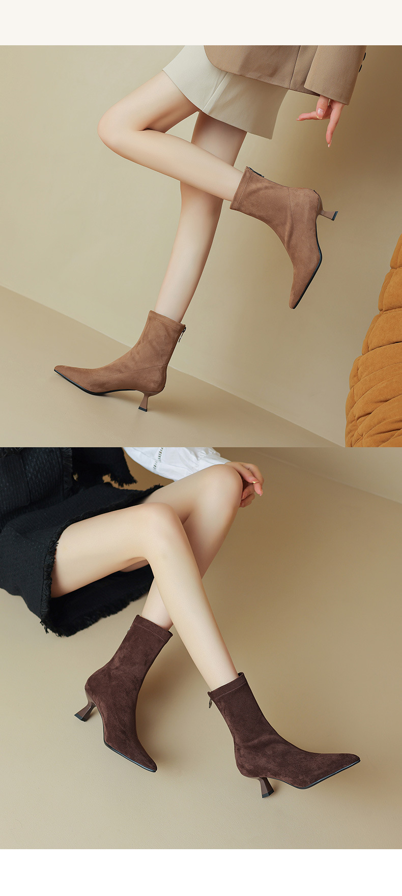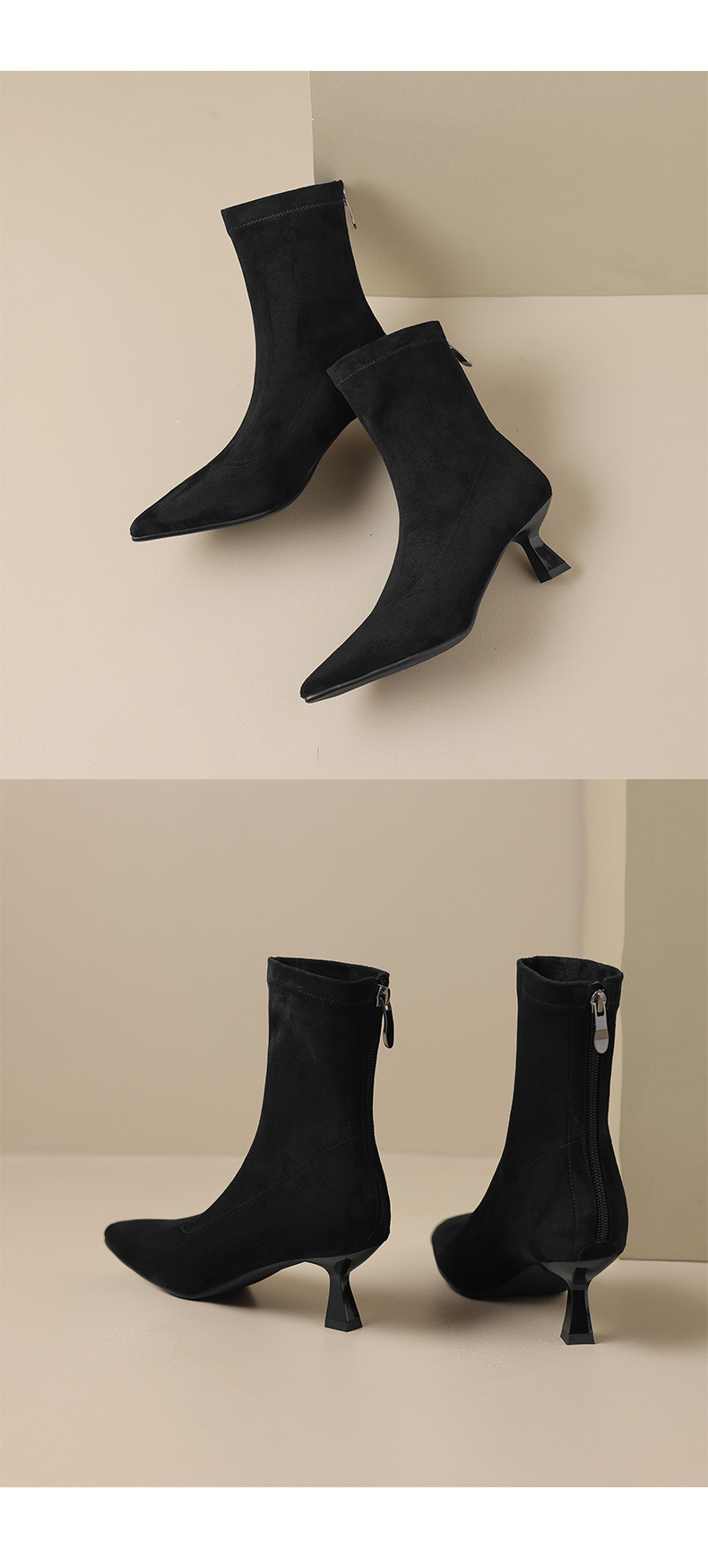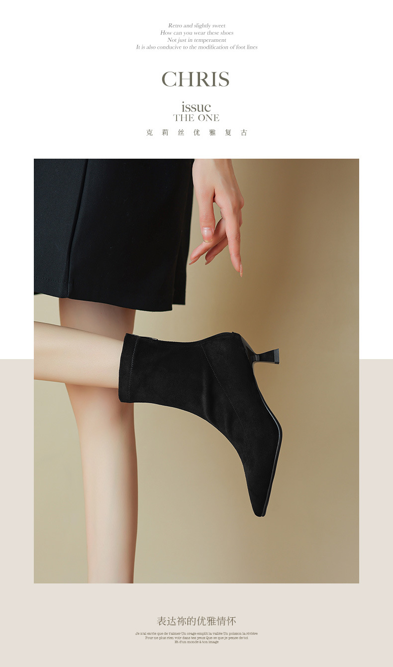 빈티지 뾰족한 하이힐 앵클 부츠 여성 가을과 겨울 2023 새로운 지퍼 스웨이드 얇은 굽 알몸 부츠 스트레치 얇은 부츠 양말 부츠스토어 가기