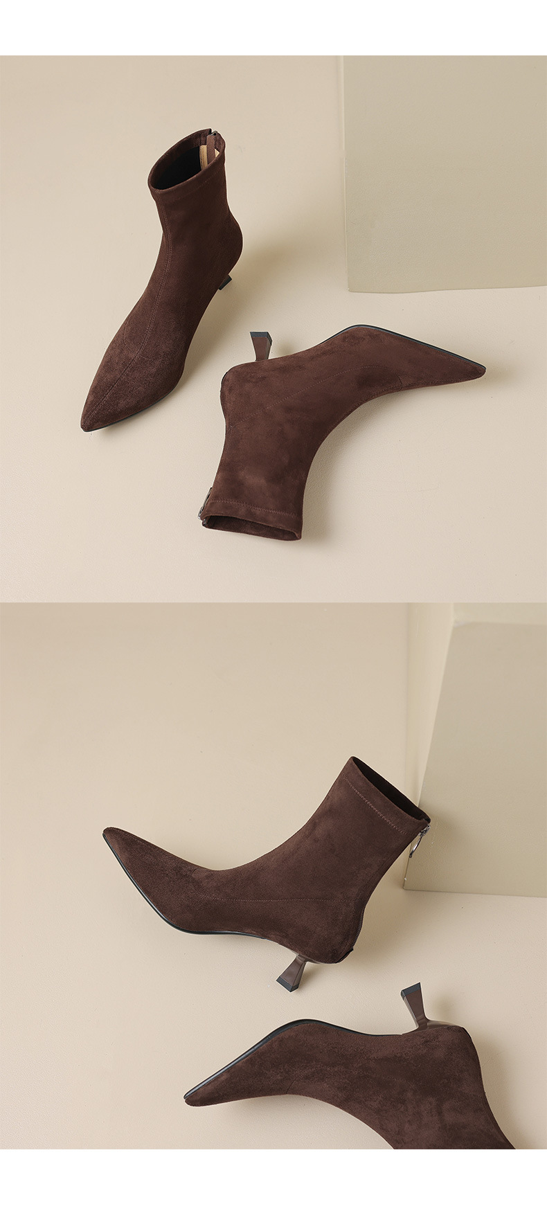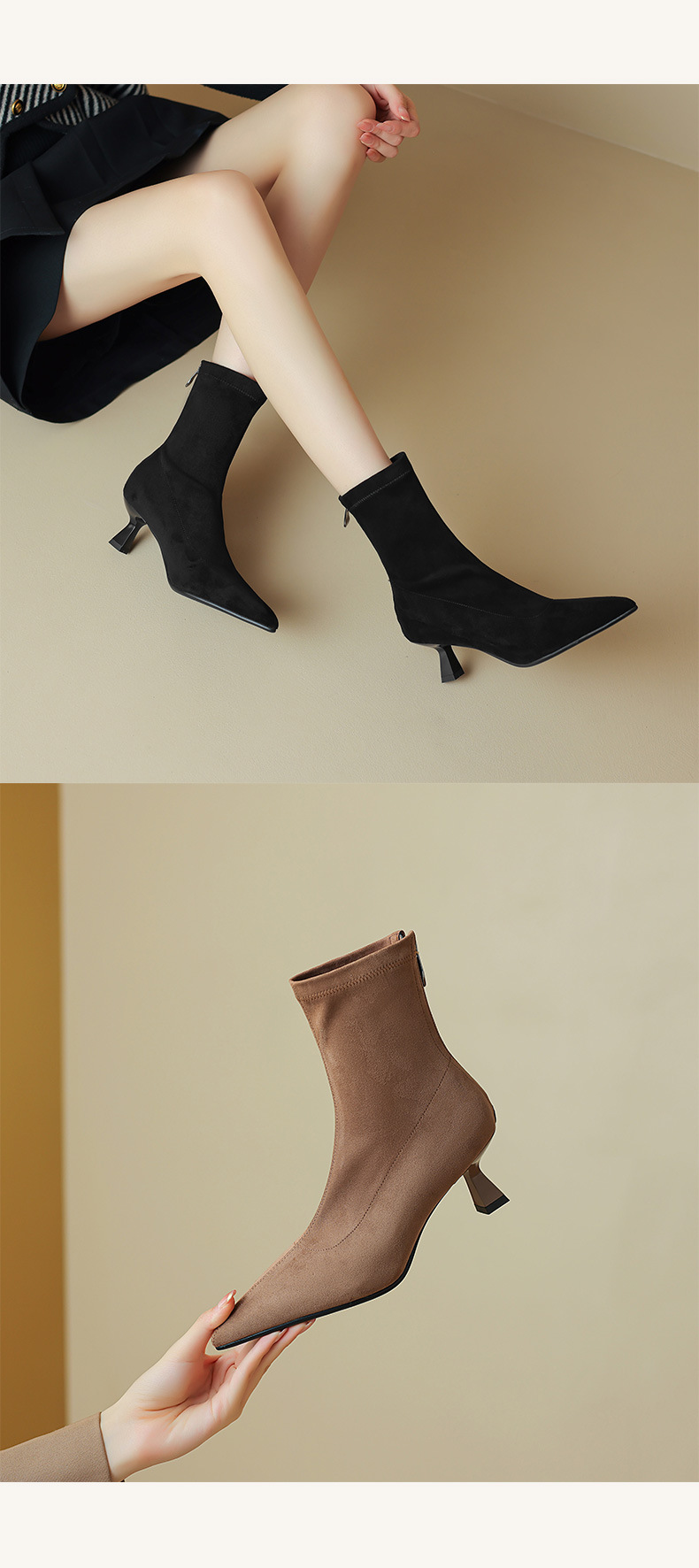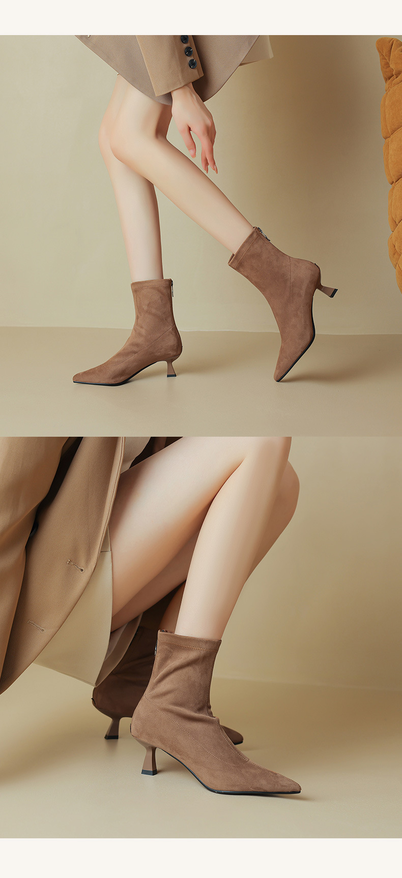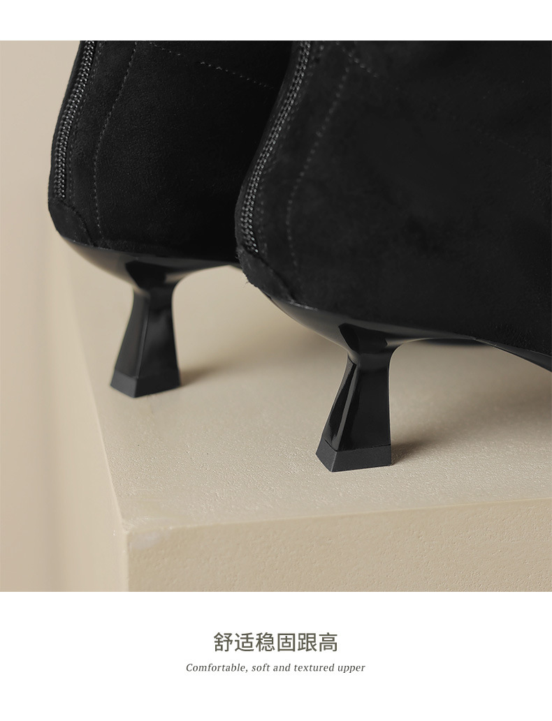 빈티지 뾰족한 하이힐 앵클 부츠 여성 가을과 겨울 2023 새로운 지퍼 스웨이드 얇은 굽 알몸 부츠 스트레치 얇은 부츠 양말 부츠스토어 가기
