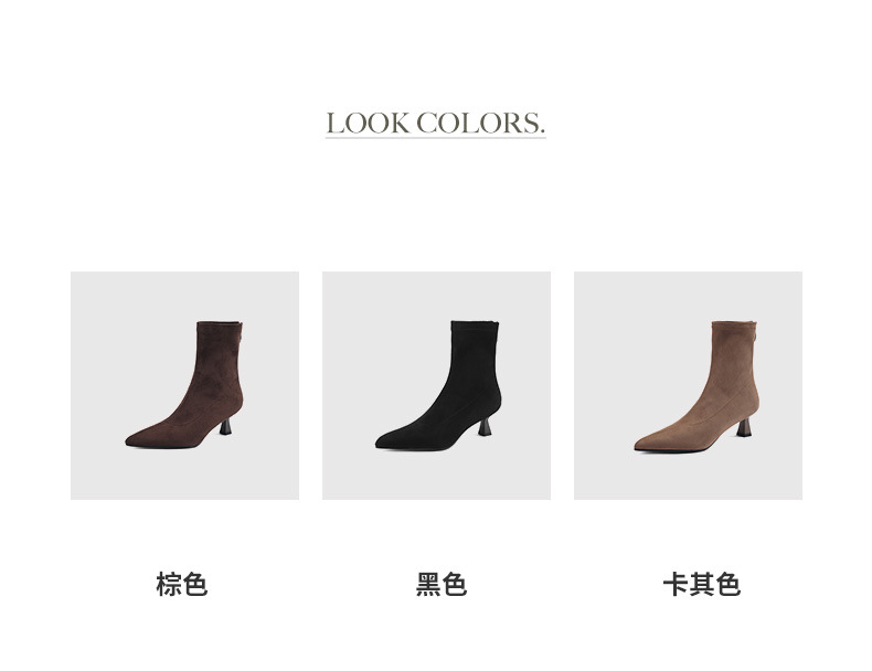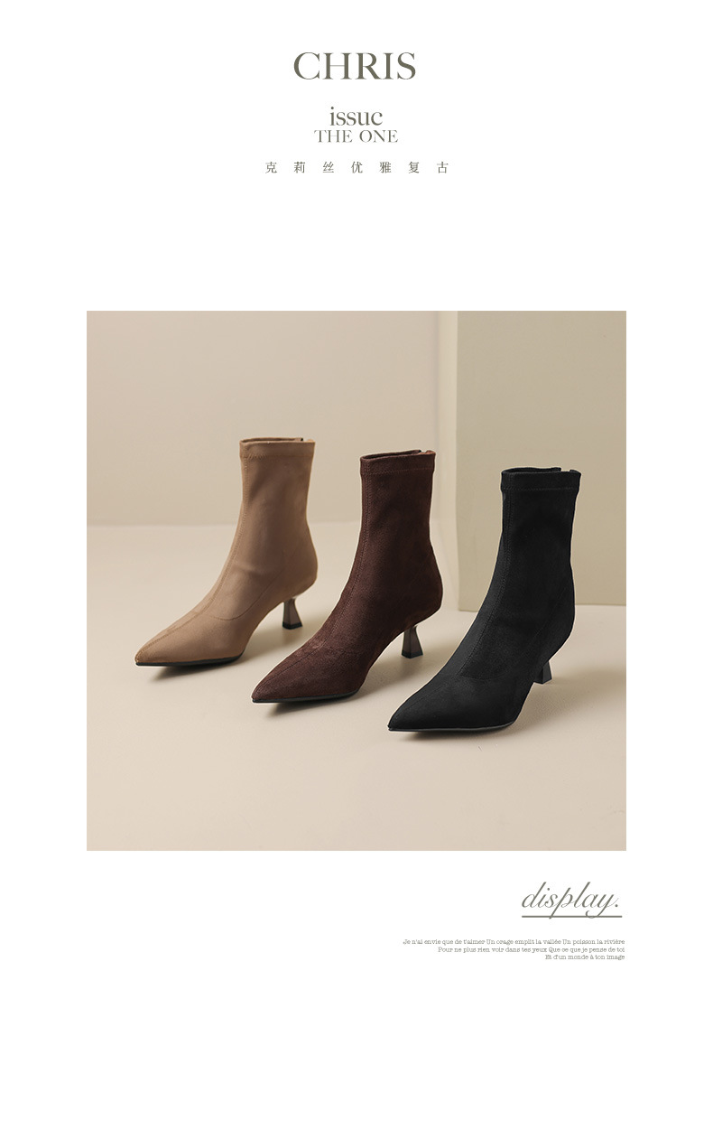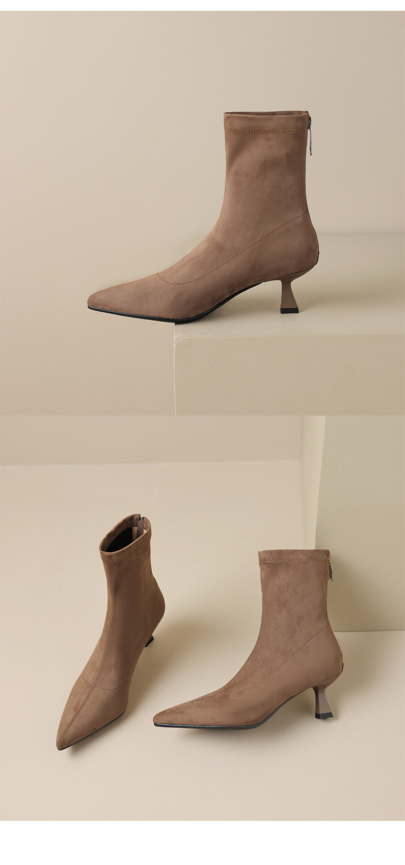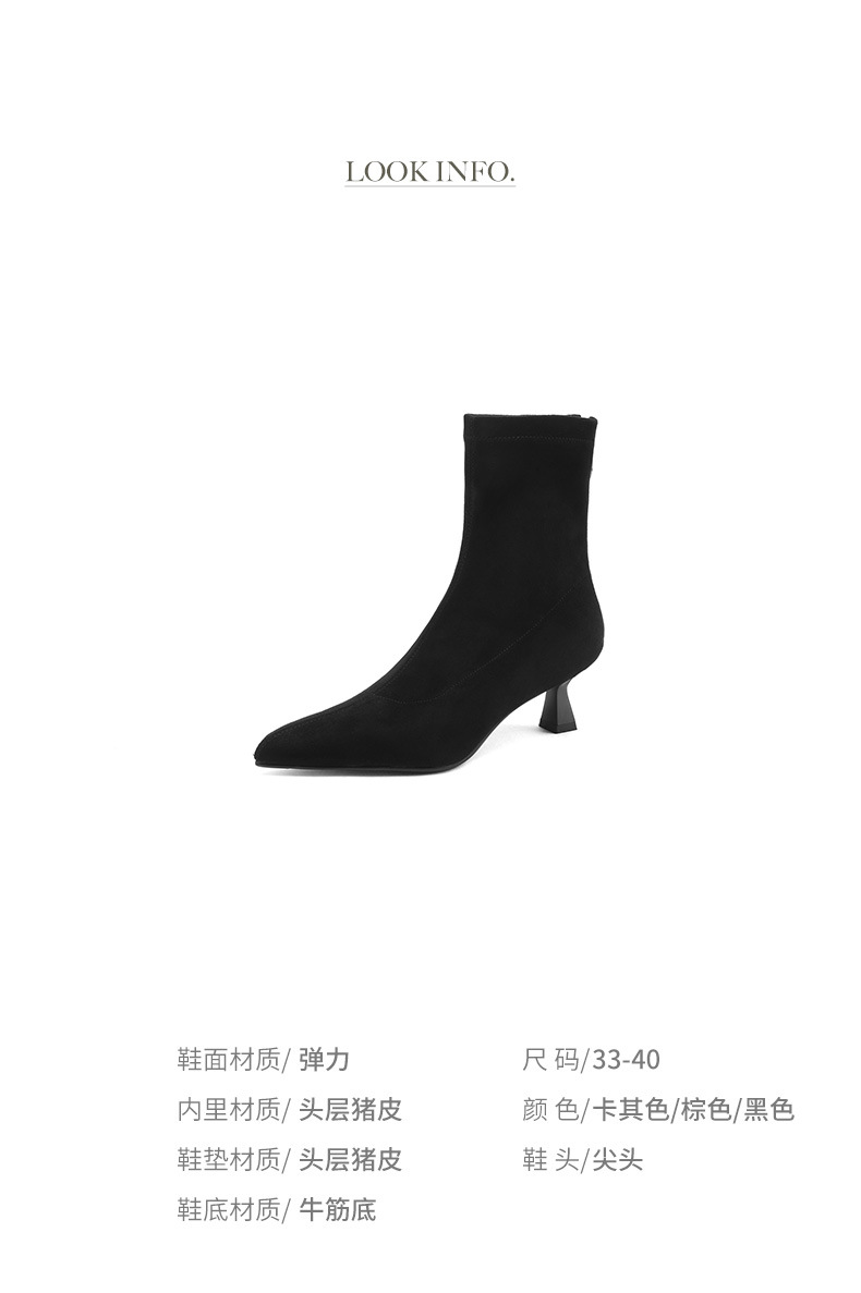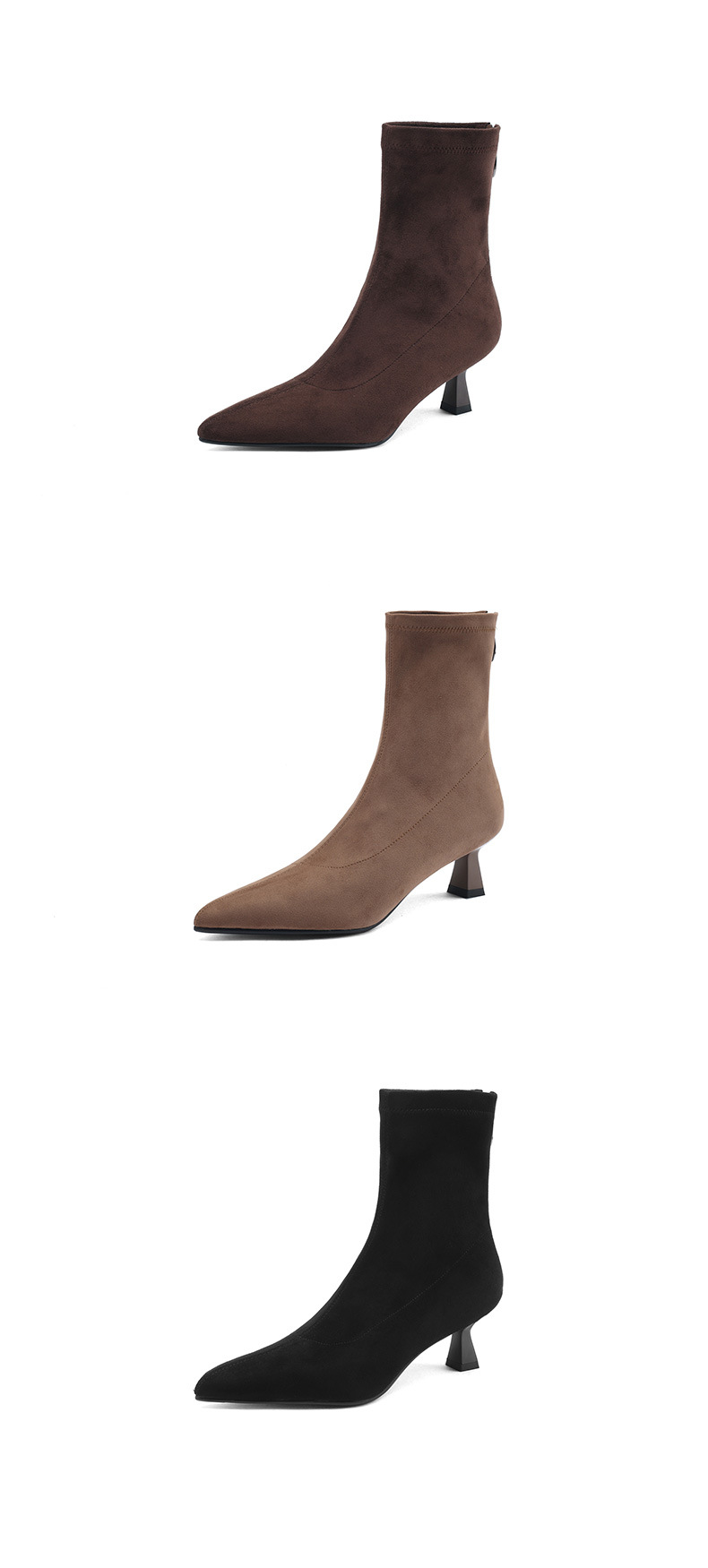 빈티지 뾰족한 하이힐 앵클 부츠 여성 가을과 겨울 2023 새로운 지퍼 스웨이드 얇은 굽 알몸 부츠 스트레치 얇은 부츠 양말 부츠스토어 가기