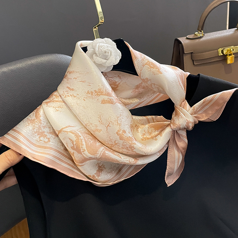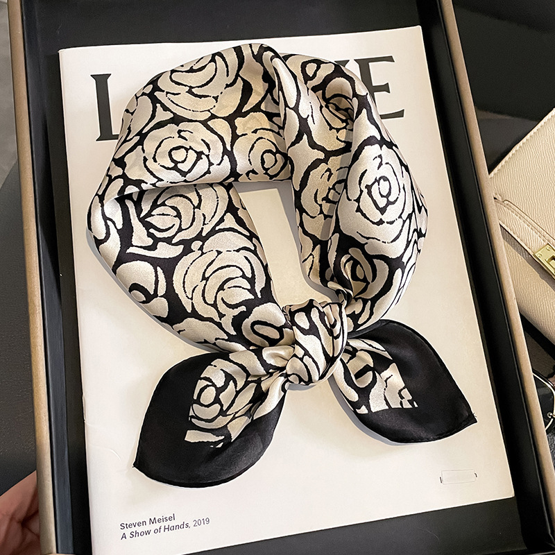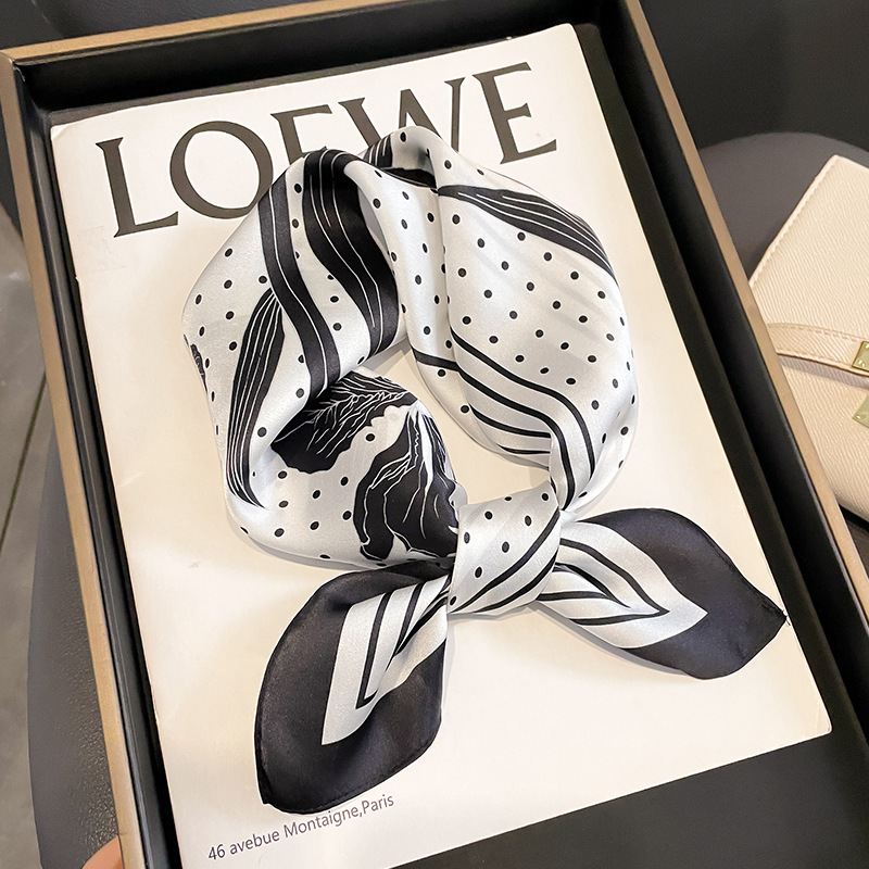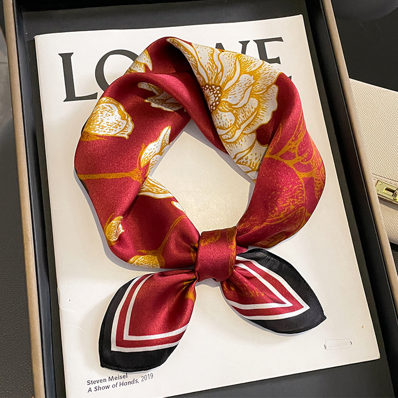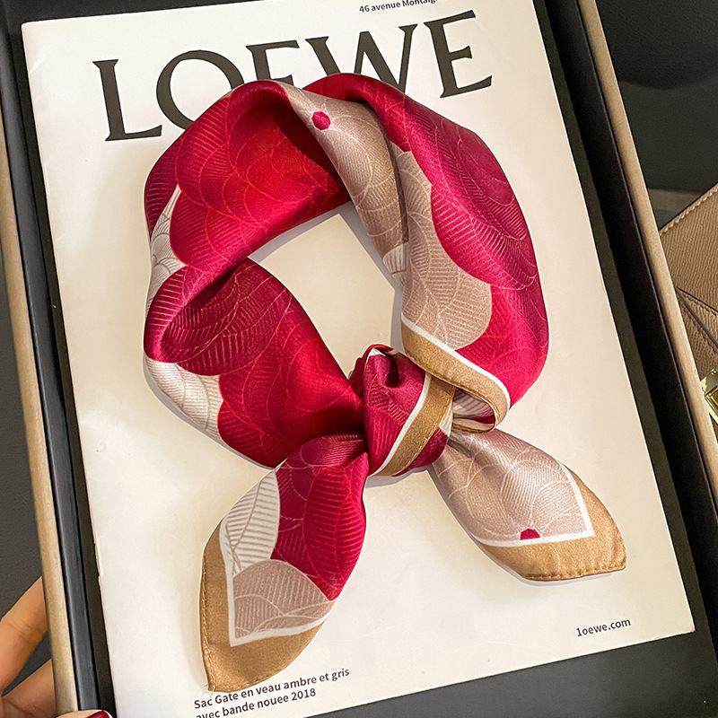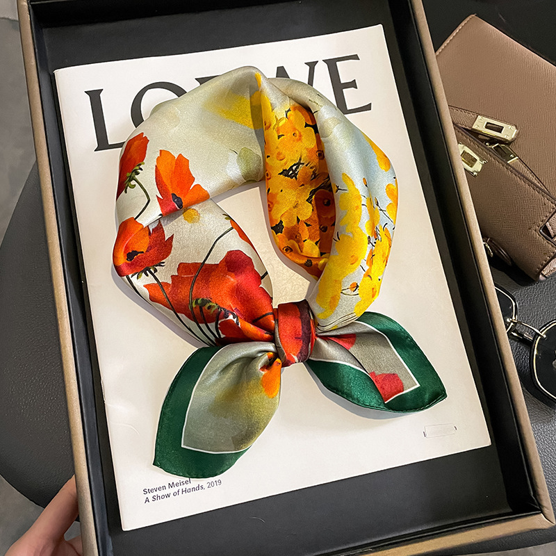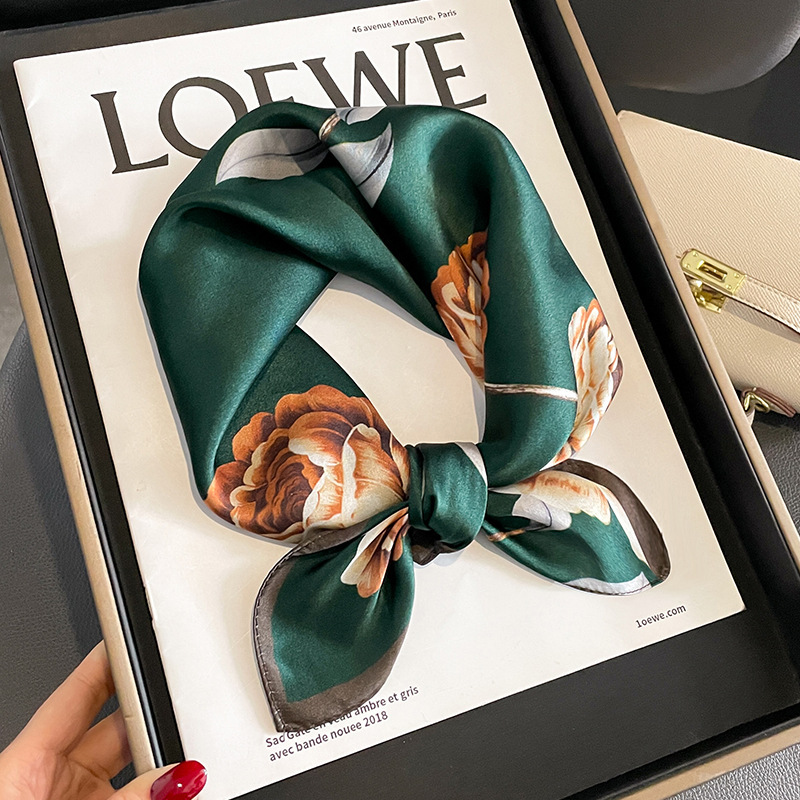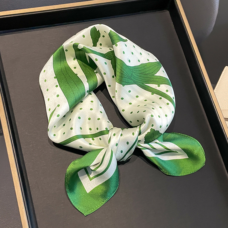녹색 실크 스카프 여자의 봄과 가을 100% 뽕나무 실크 작은 사각 스카프 경추 모든 일치 유행 한국 작은 스카프스토어 가기