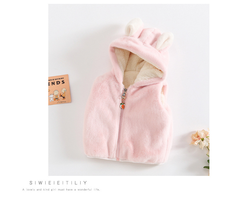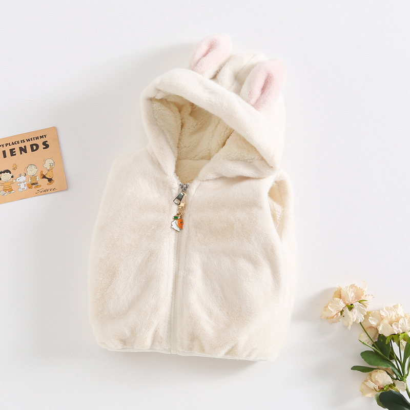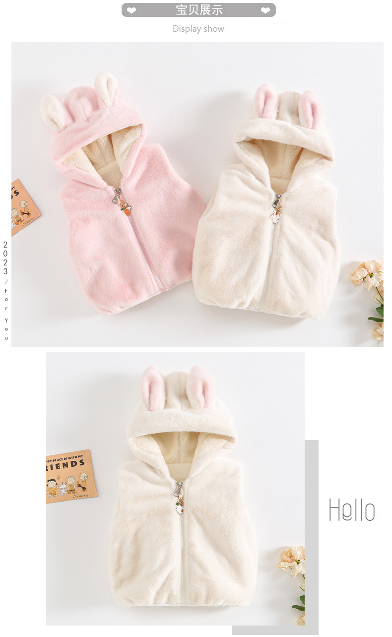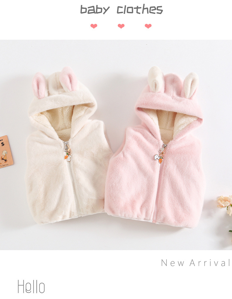 아기 가을 겨울용 두꺼운 벨벳 조끼, 만화 토끼 디자인, 아기 외출용 방한 포켓, 유아용 만화 보온 조끼스토어 가기