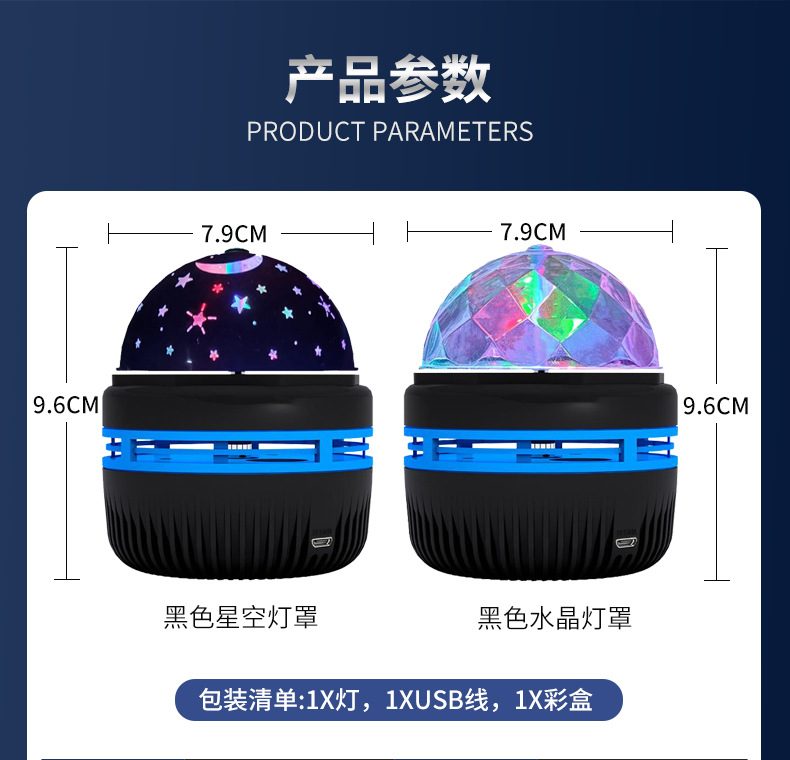 국경 간 별이 빛나는 하늘 프로젝션 램프 별이 빛나는 크리스탈 램프 크리스마스 파티 캠핑 충전 회전 분위기 밤 빛 마법의 공
