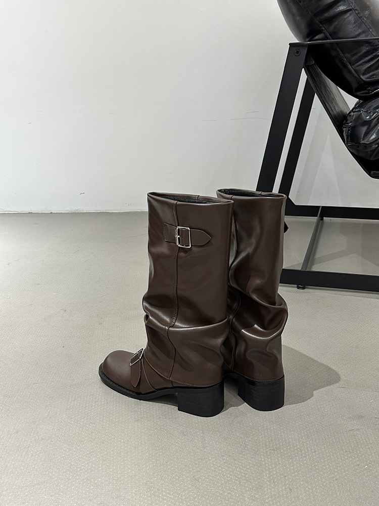 그러나 무릎 긴 부츠 여성용 두꺼운 뒤꿈치 2023 가을과 겨울 새 여성 부츠 유럽과 미국 부츠 롱 부츠 라운드 헤드 웨스턴 나이트 부츠