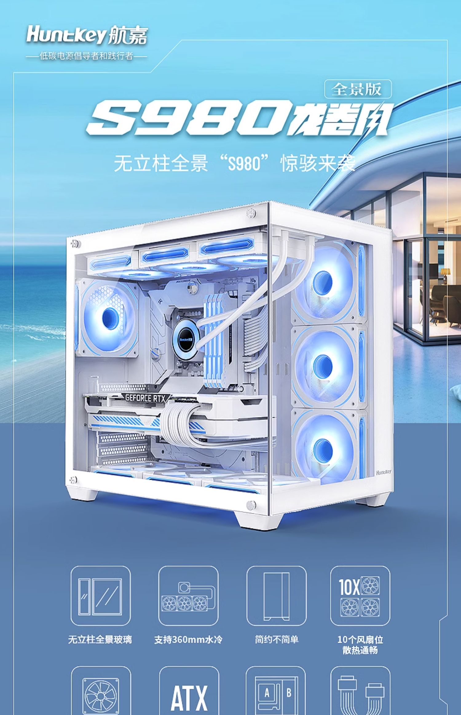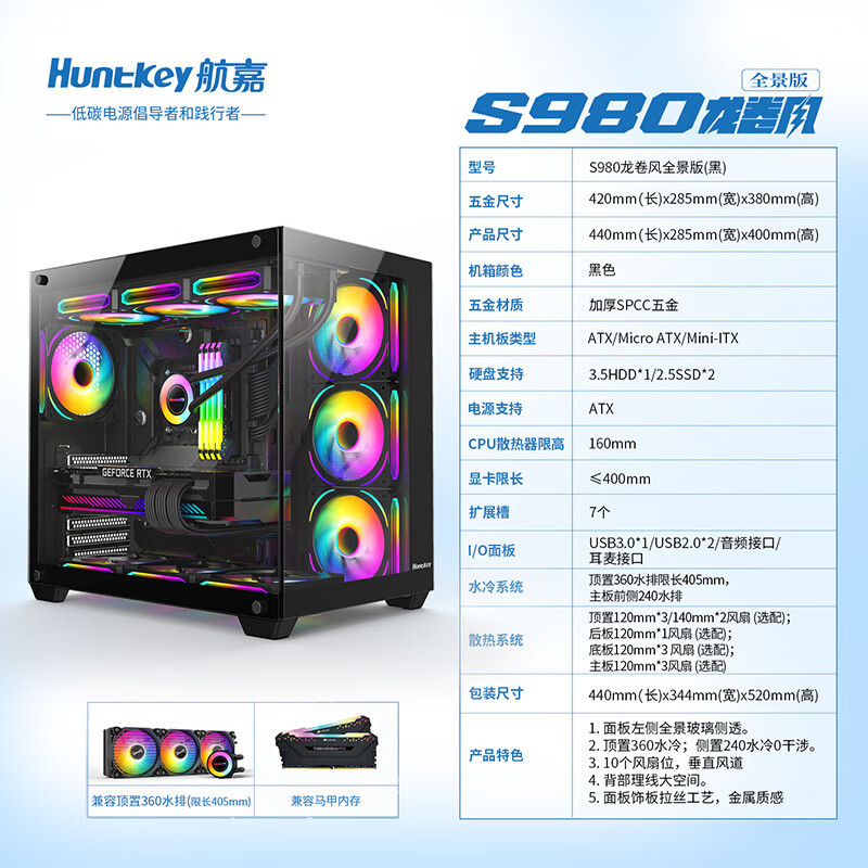 Hangjia S980 토네이도 파노라마 에디션 바다 전망 룸 강화 유리 컴퓨터 빈 케이스 블랙/화이트 적용 가능스토어 가기