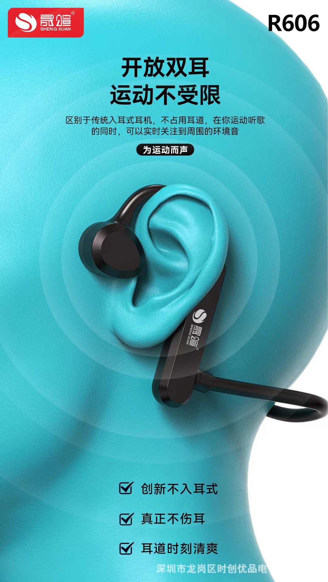 2,不伤耳,保护听力,开放式音色,不影响听外界声音,更安全;