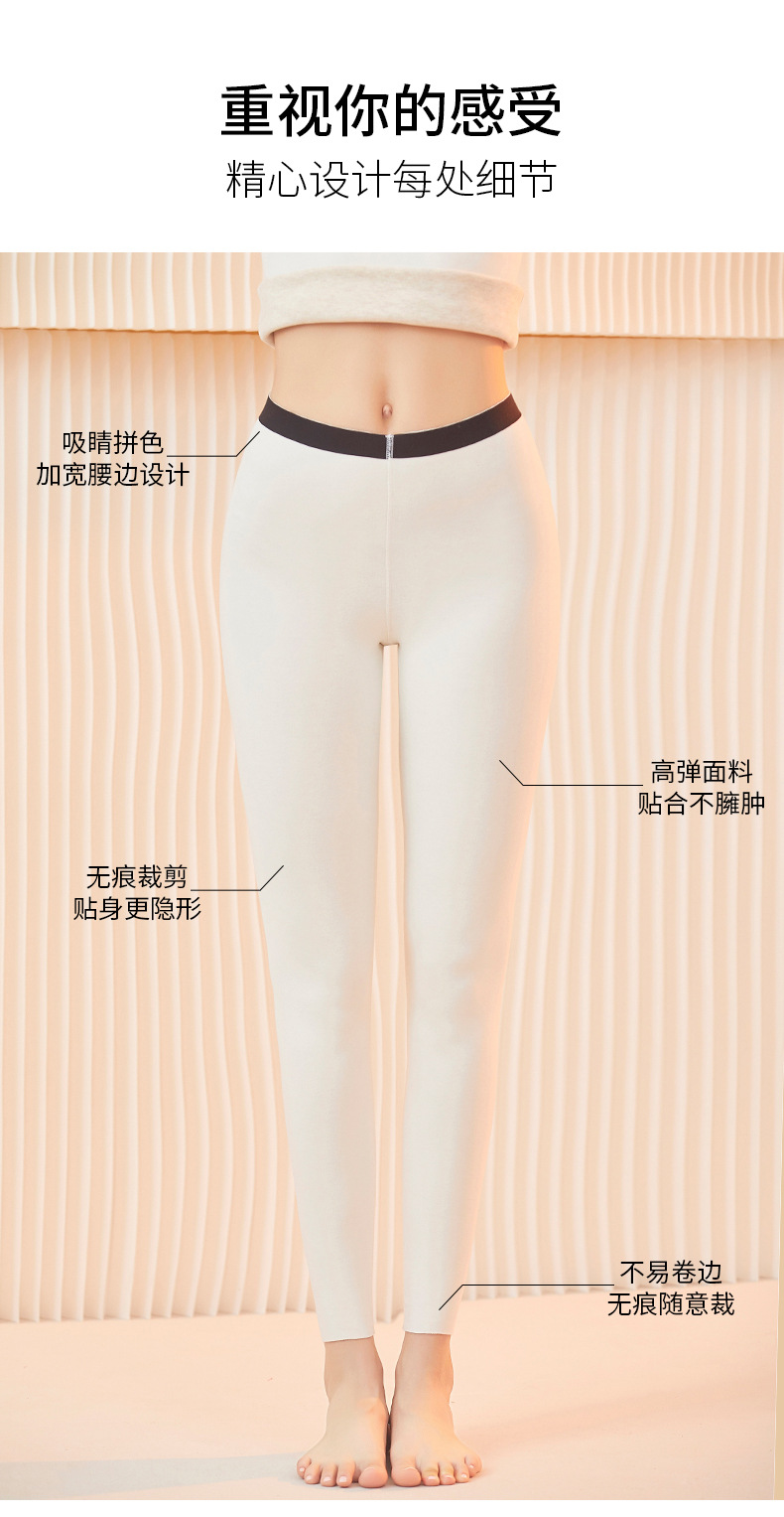 캐시미어 롱 존스 여성용 따뜻한 바지 난방 두꺼운 바지 이너웨어 가벼운 럭셔리 대비 컬러 레깅스 모든 매치 플러스 사이즈 중간 허리 바지