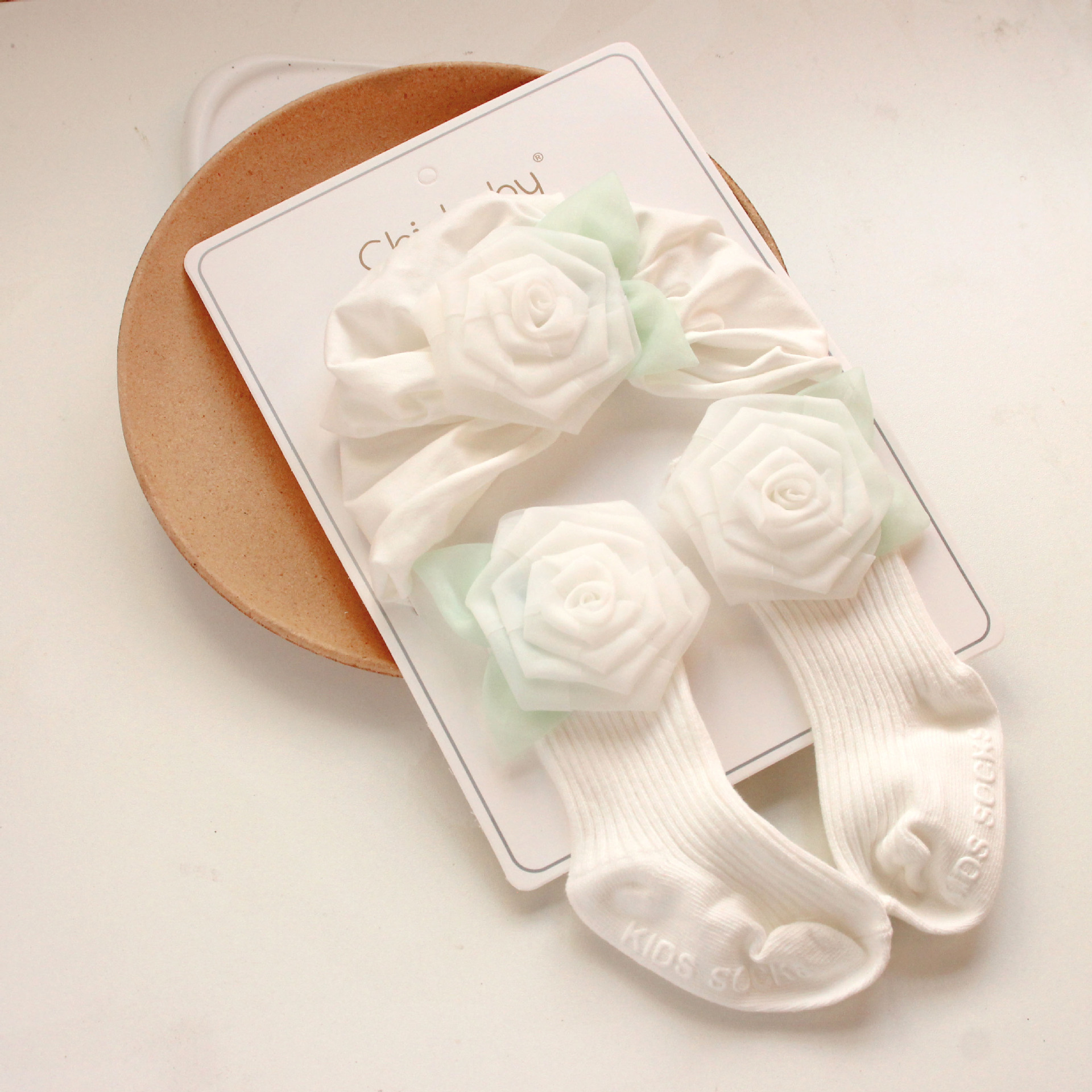 • 이 화이트 롤 로즈 모자 + 스타킹
