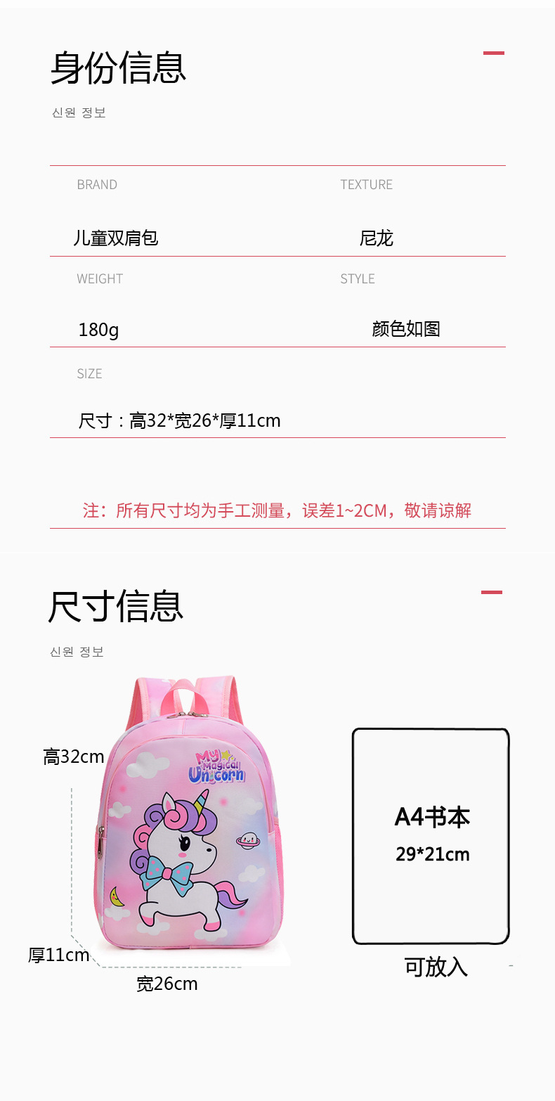 책가방 초등학생 만화 고양이 귀여운 소년과 소녀 어린이 울트라 라이트 릿지 가방 배낭 유니콘 배낭