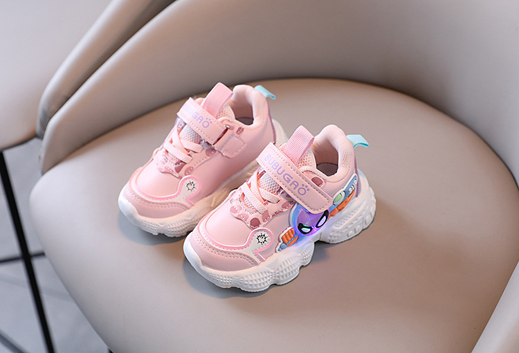 소년 운동화 2023 가을과 겨울 새로운 가죽 여아 가벼운 단독 캐주얼 신발 운동화 아기 유아 신발 플래시 신발