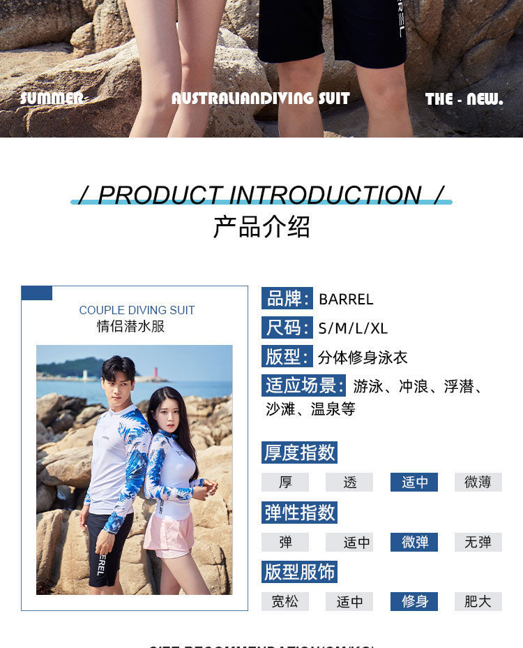 커플용 다이빙 슈트 긴팔 수영복 남성용 자외선 차단 속건 슬림핏 보수적인 수영복 여성용 분리형 해파리 방지복 프리다이빙스토어 가기