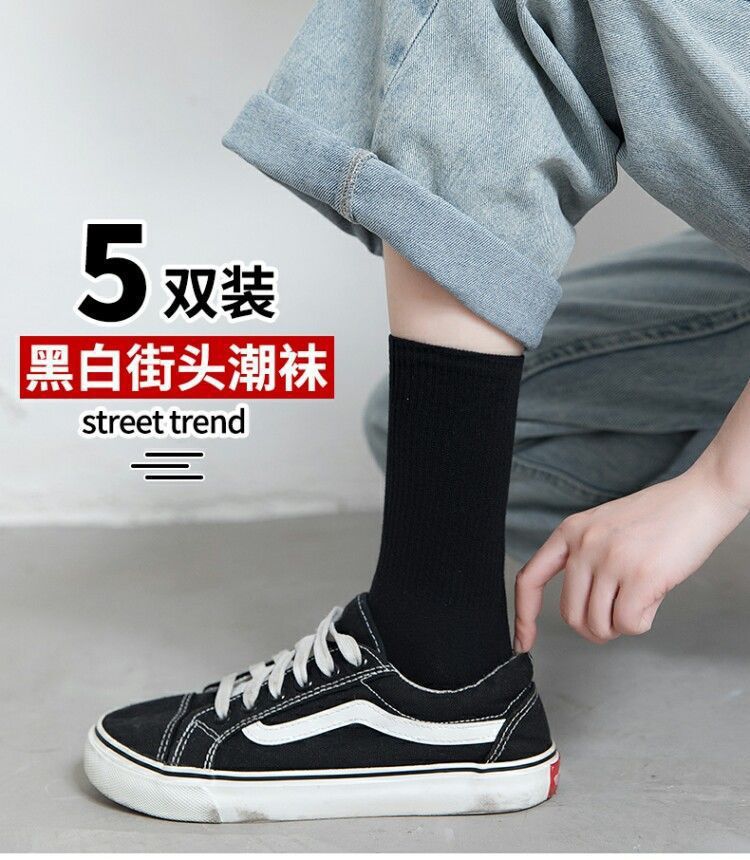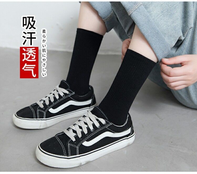 양말 남성용 및 여성용 블랙 롱 양말 단색 모든 매치 일본식 인 트렌디 한 미드 배럴 통기성 스포츠 스타킹 캐주얼 심플스토어 가기