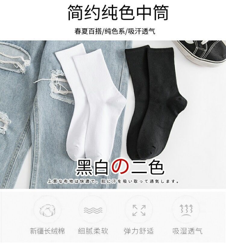 양말 남성용 및 여성용 블랙 롱 양말 단색 모든 매치 일본식 인 트렌디 한 미드 배럴 통기성 스포츠 스타킹 캐주얼 심플