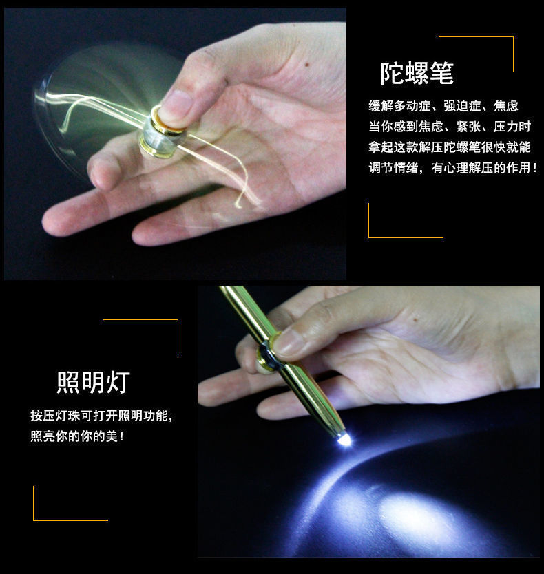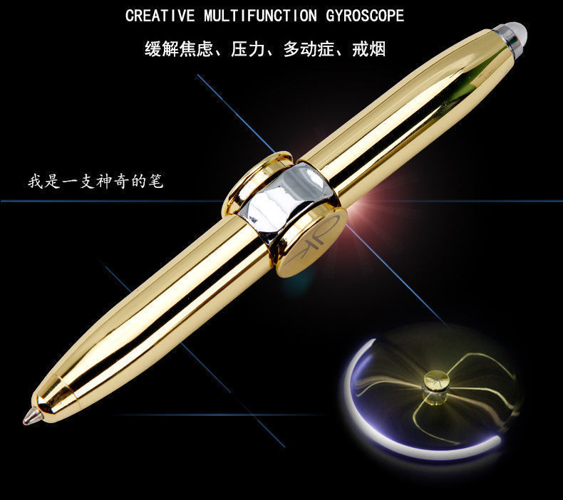 핑거팁 자이로 LED 램프 발광 장난감 펜 보링 벤트 감압 펜 메탈 펜 다기능 학생 볼펜