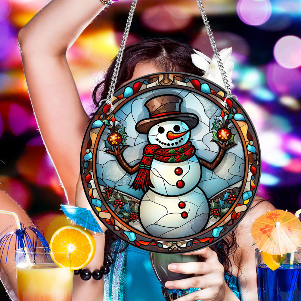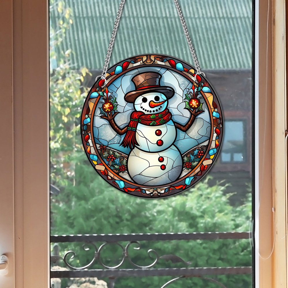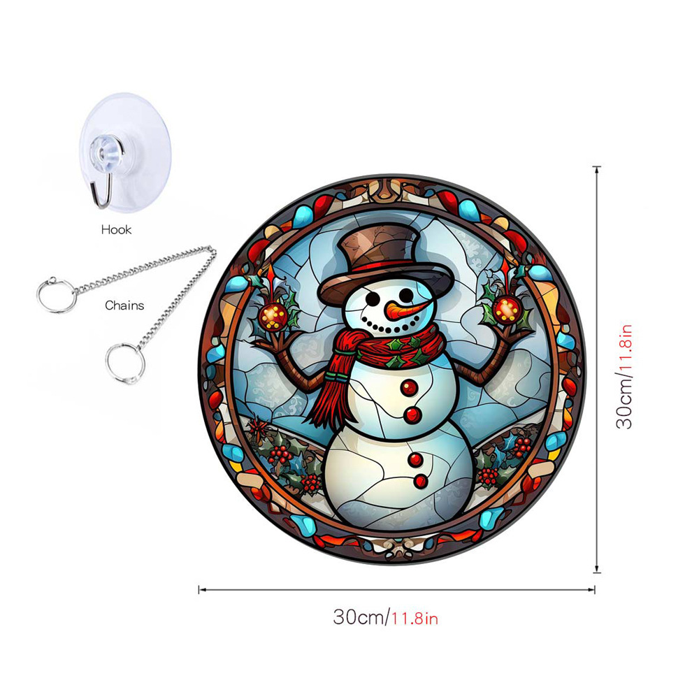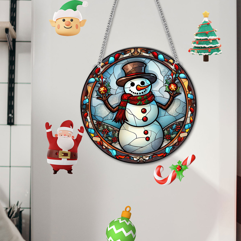 TYU152 크로스 보더 크리스마스 눈사람 아크릴 펜던트 창 베란다 가정 장식 양면 패턴 철 체인 태그스토어 가기