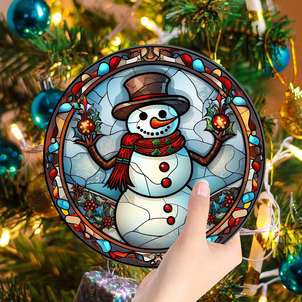 TYU152 크로스 보더 크리스마스 눈사람 아크릴 펜던트 창 베란다 가정 장식 양면 패턴 철 체인 태그