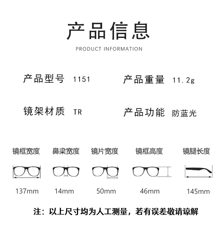 1151 신제품 2023 초경량 TR90 남녀 학생용 근시 안경테 도매 다용도 무테 안경스토어 가기