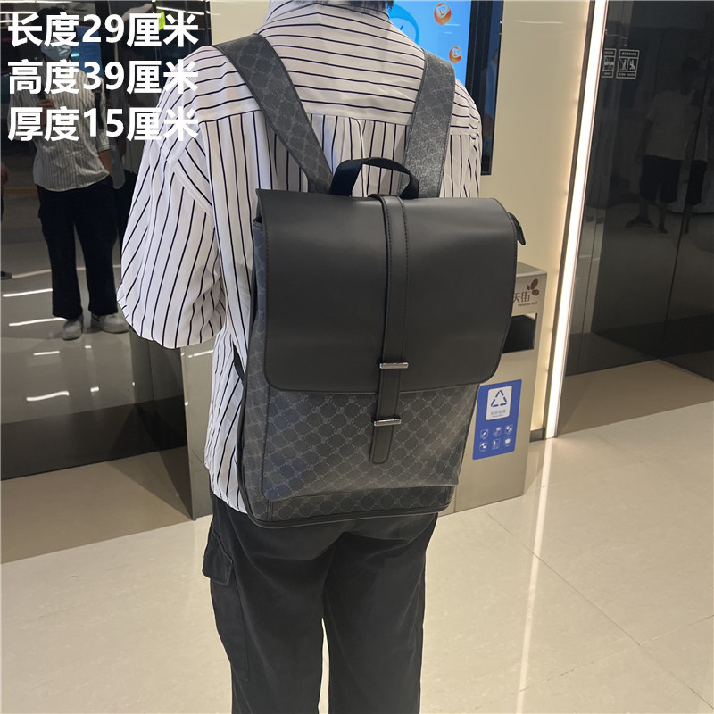 2023时尚格子男士双肩包 日韩潮手提斜挎背包 校园学院风旅行书包