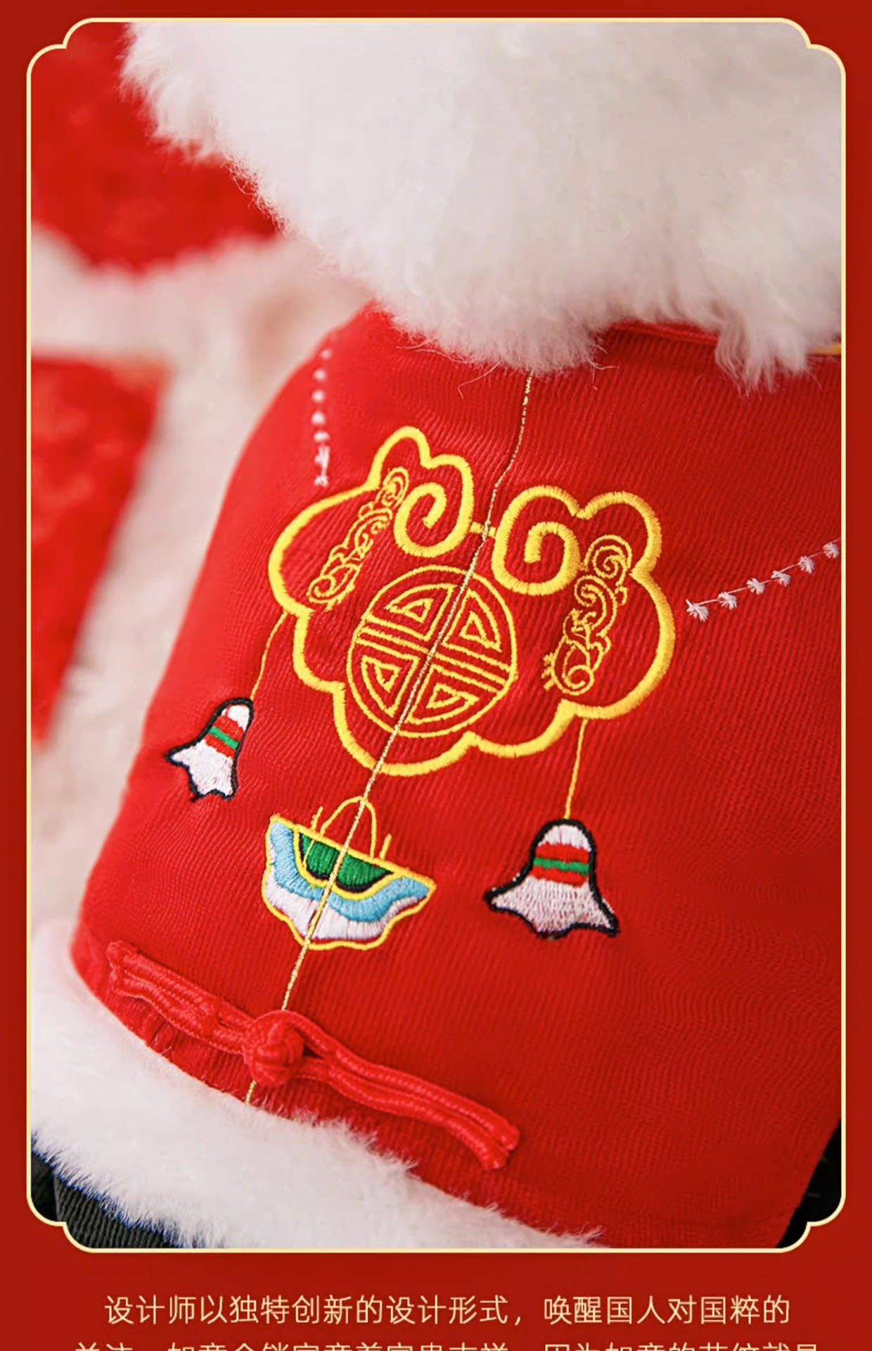 가을과 겨울 개 탕 세트 황금 잠금 수 놓은 디스크 버클 새해 네 발 면 코트 중소 개 테디 애완 동물 개 옷