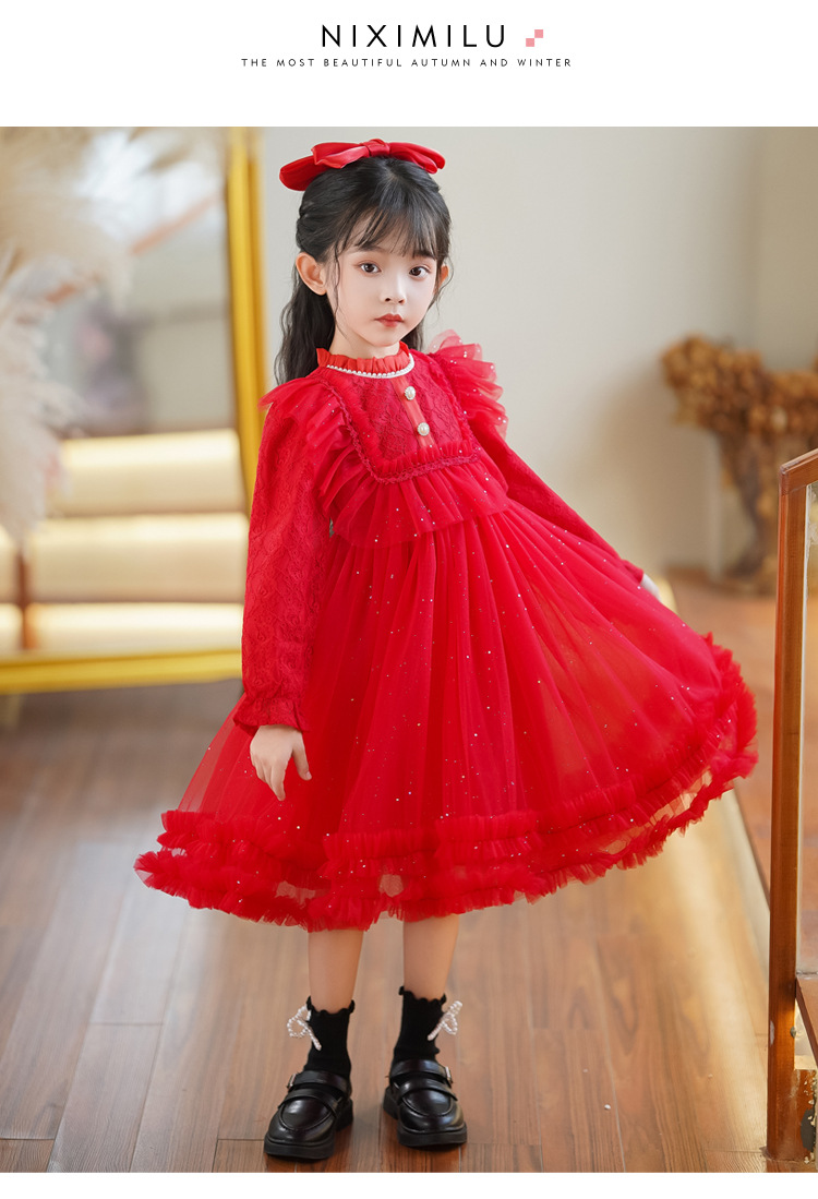 여아 공주 드레스 가을 패션 어린이 드레스 아기 가을 겨울 로리타 퍼프 드레스 공연용 드레스스토어 가기