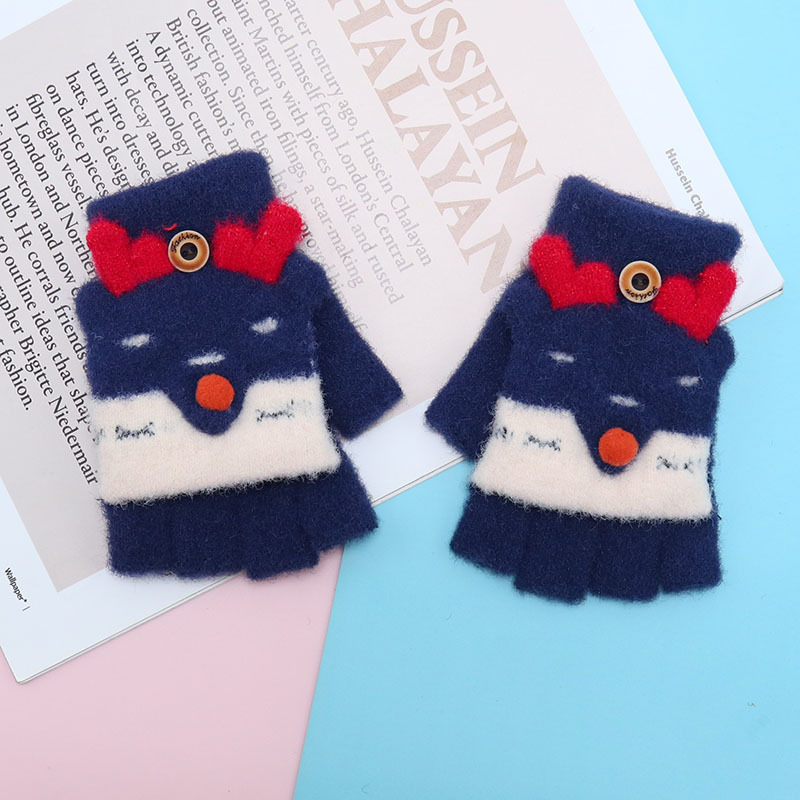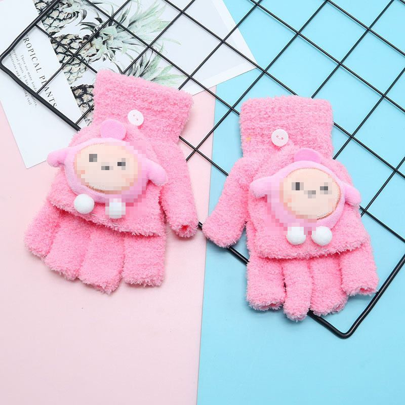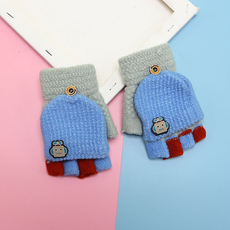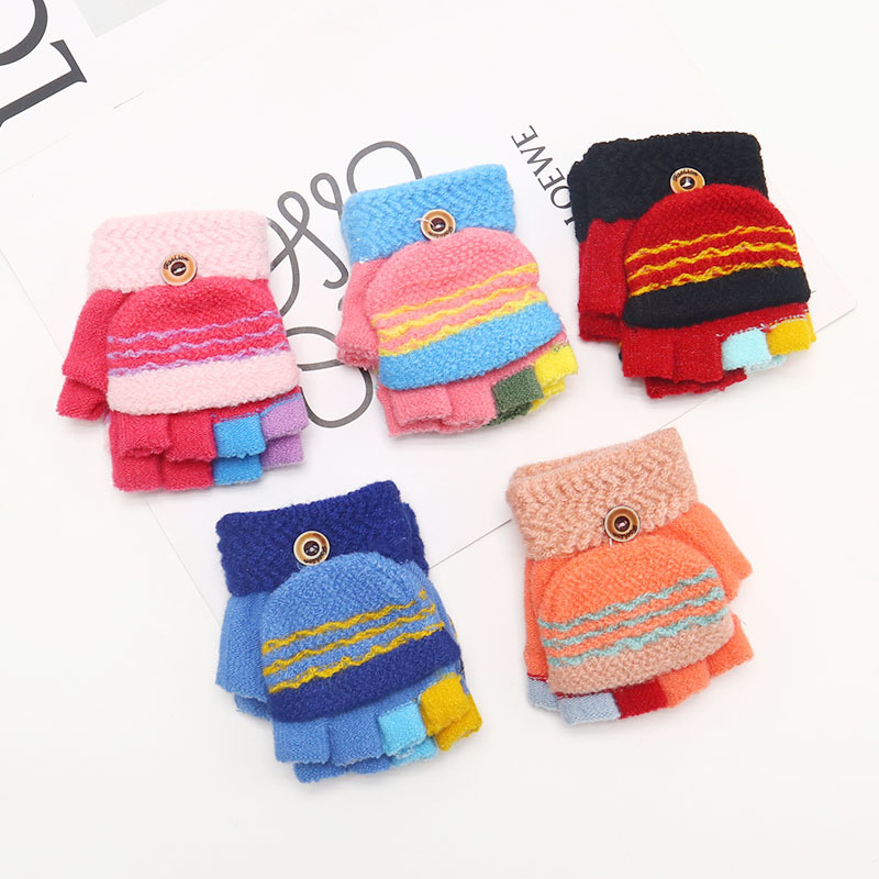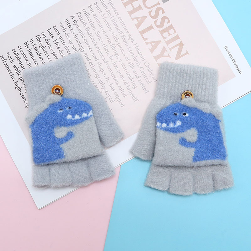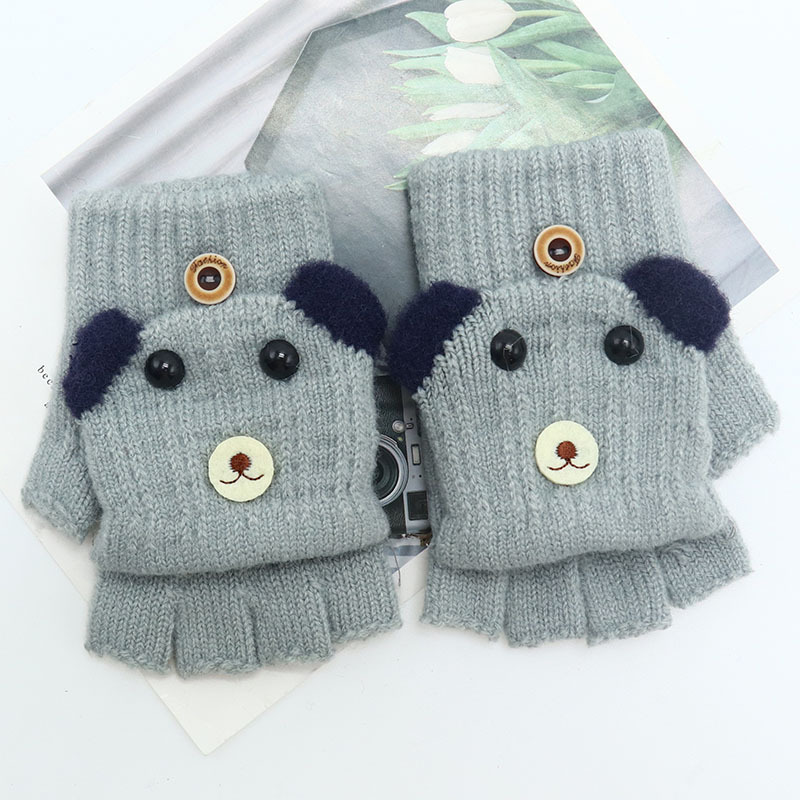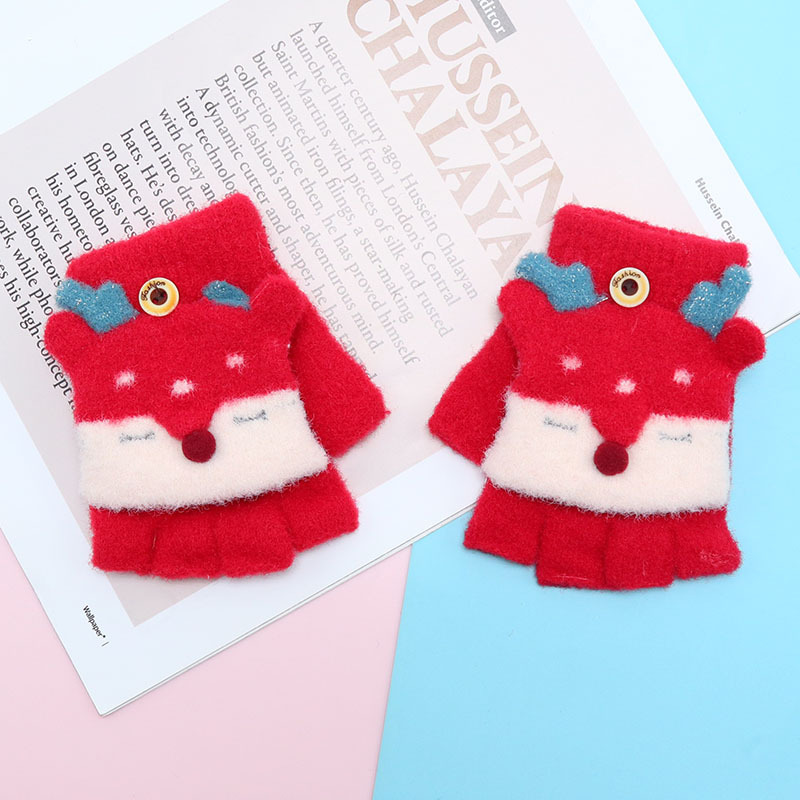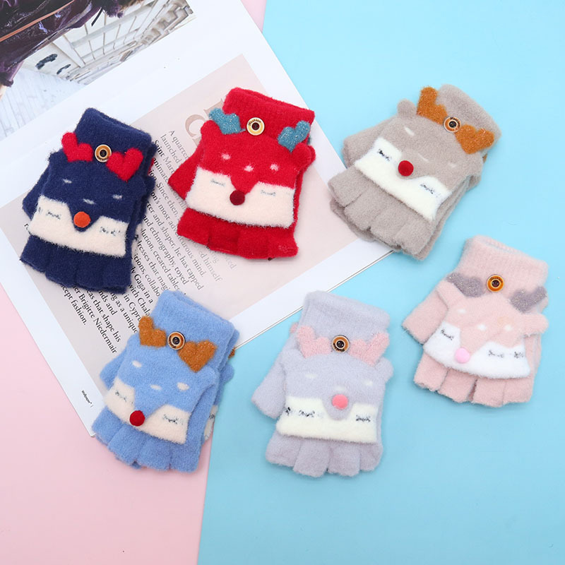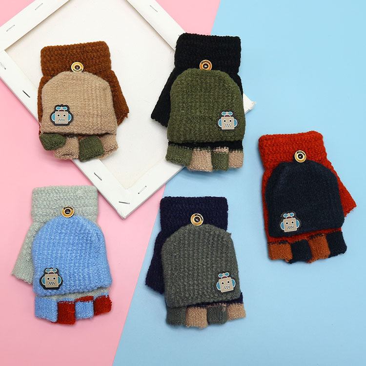 어린이 장갑 가을과 겨울 따뜻한 반 손가락 플립 만화 소년과 소녀를위한 귀여운 니트 아기 기모 두꺼운 손가락