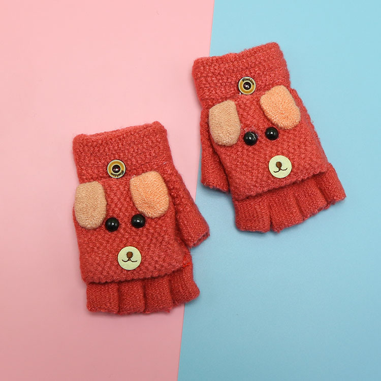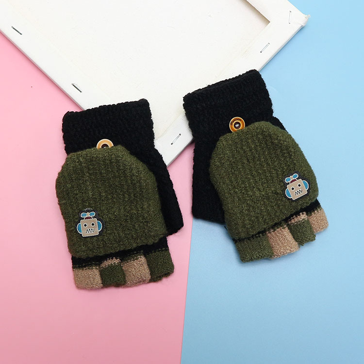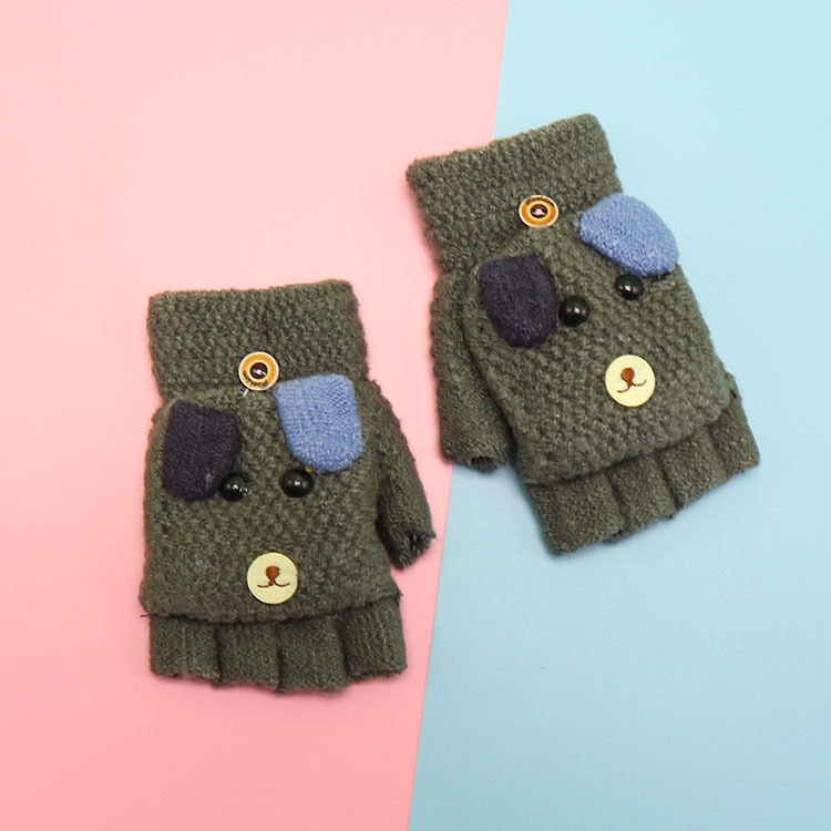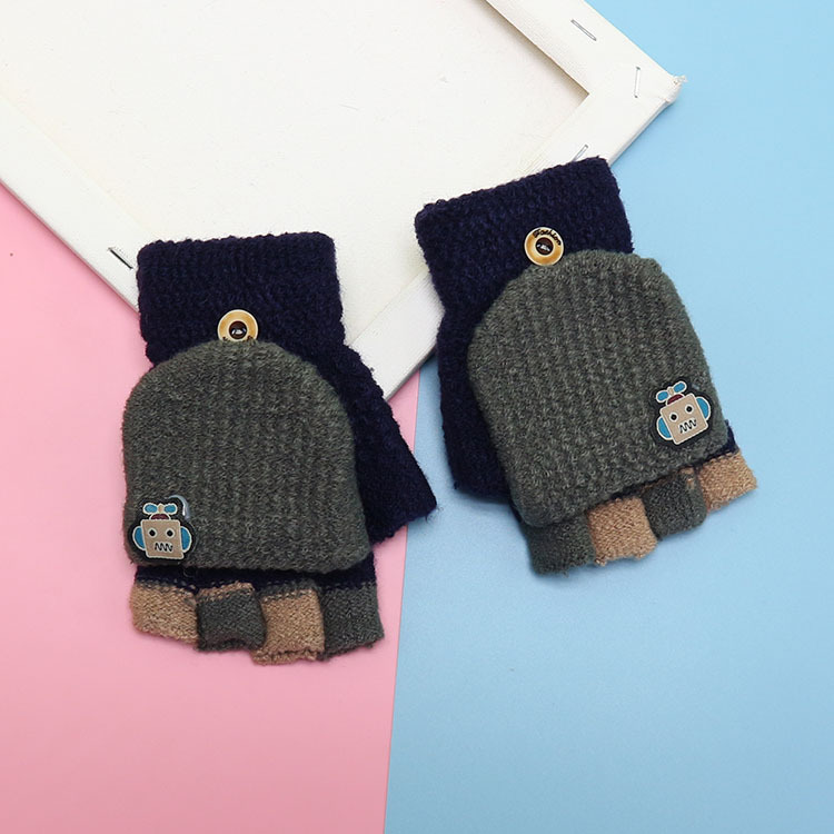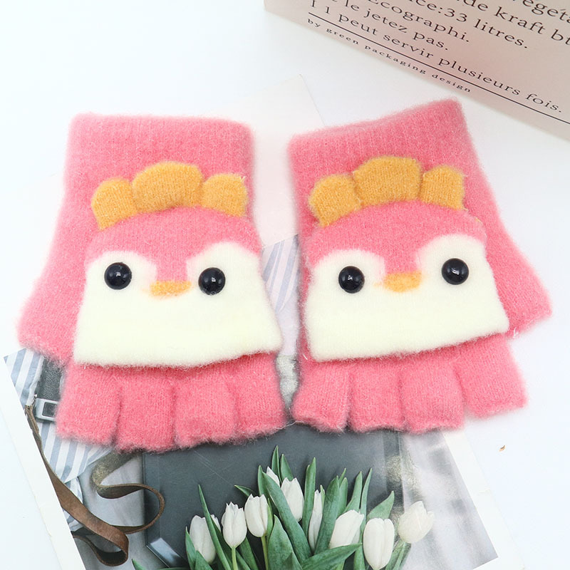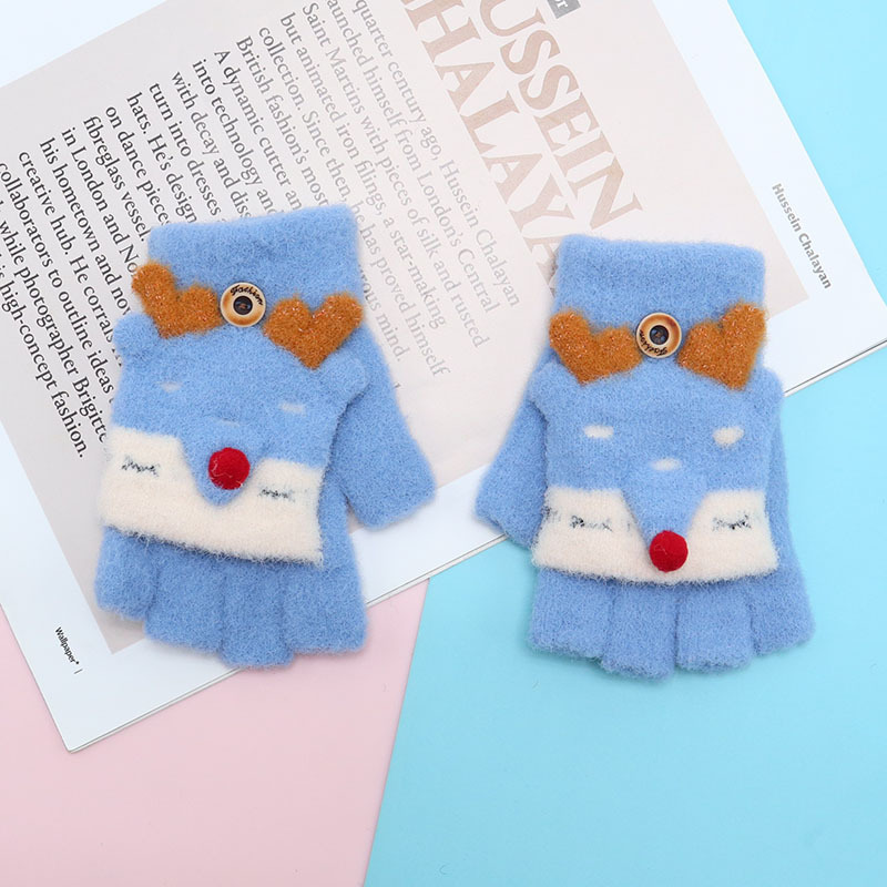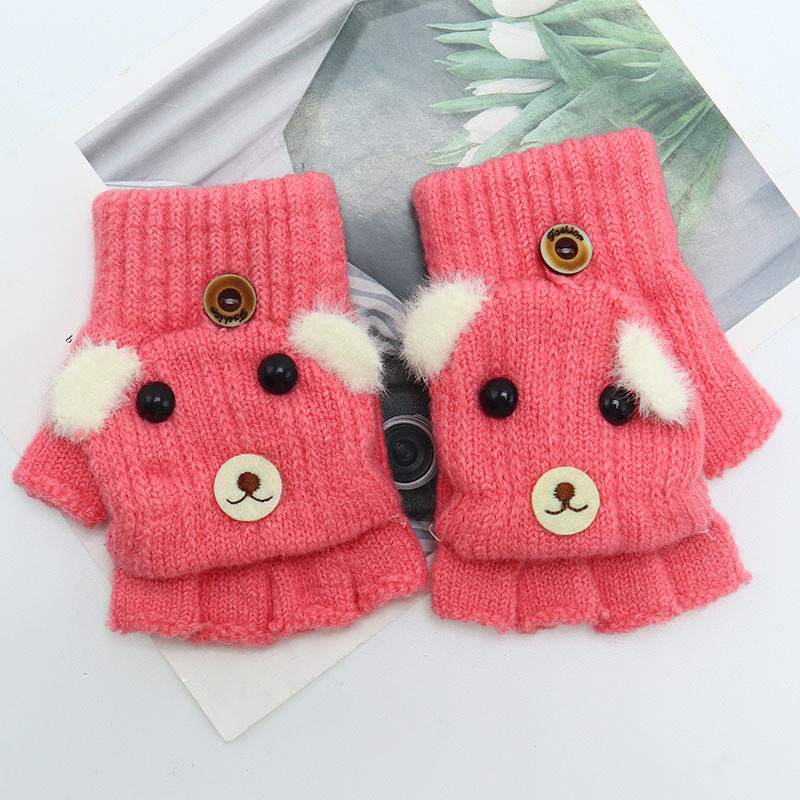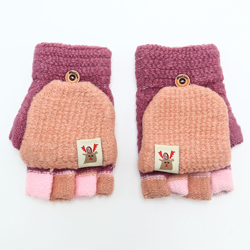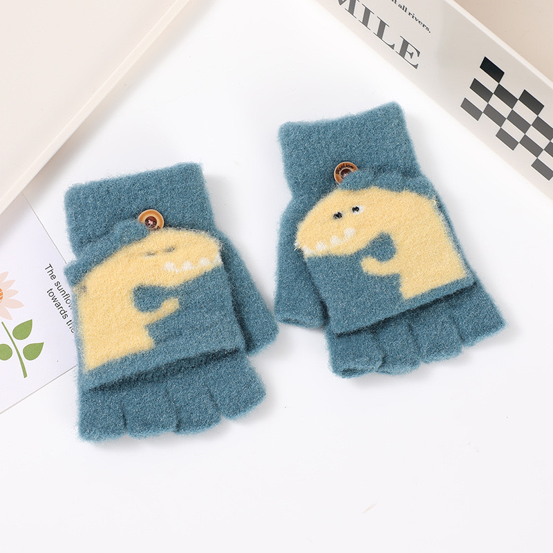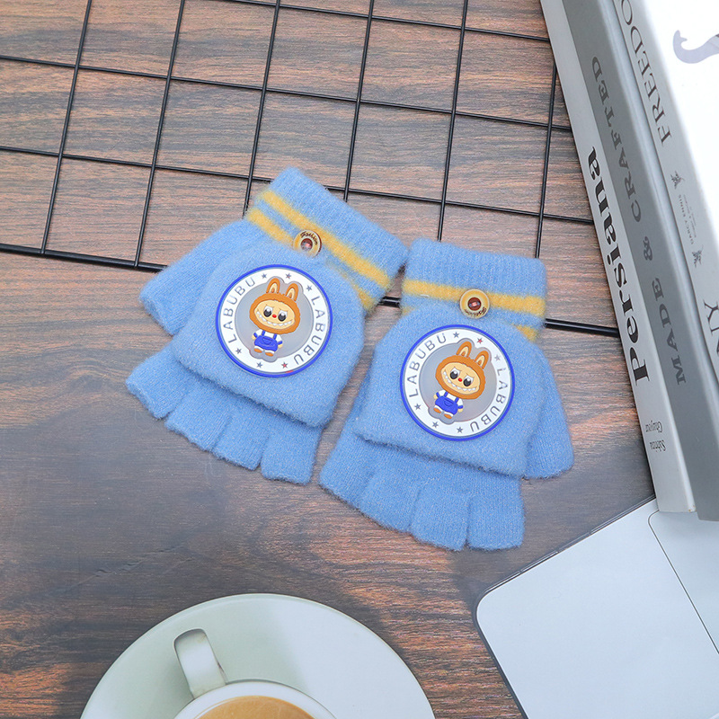 어린이 장갑 가을과 겨울 따뜻한 반 손가락 플립 만화 소년과 소녀를위한 귀여운 니트 아기 기모 두꺼운 손가락