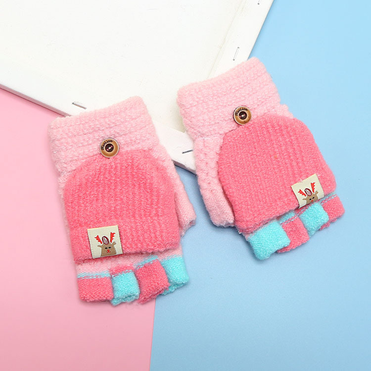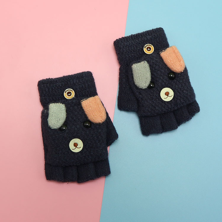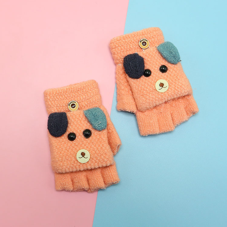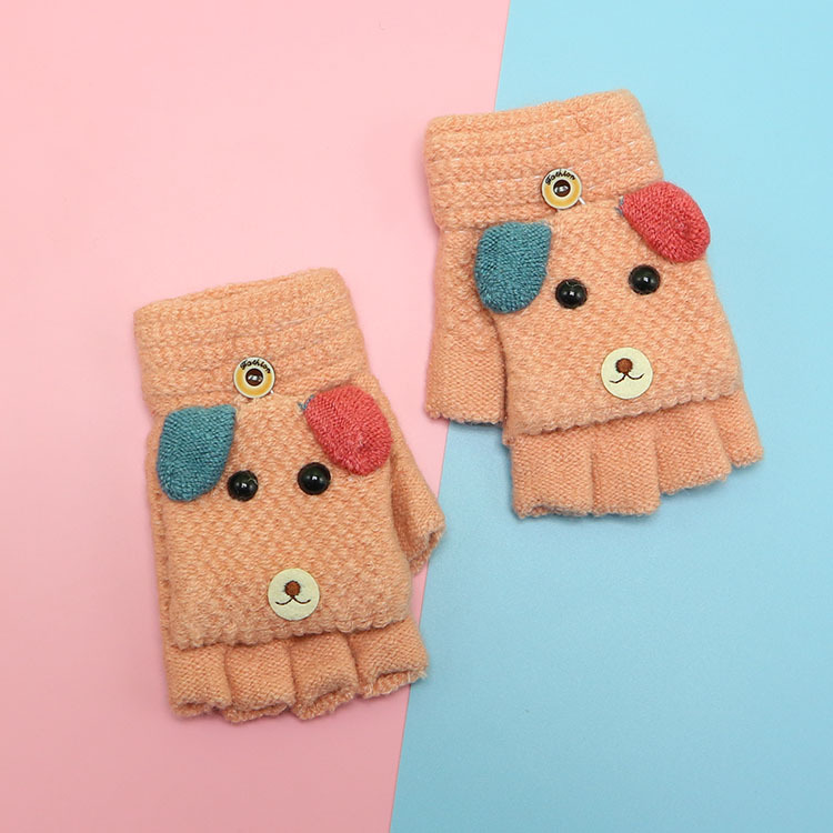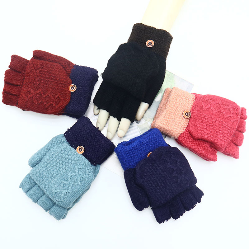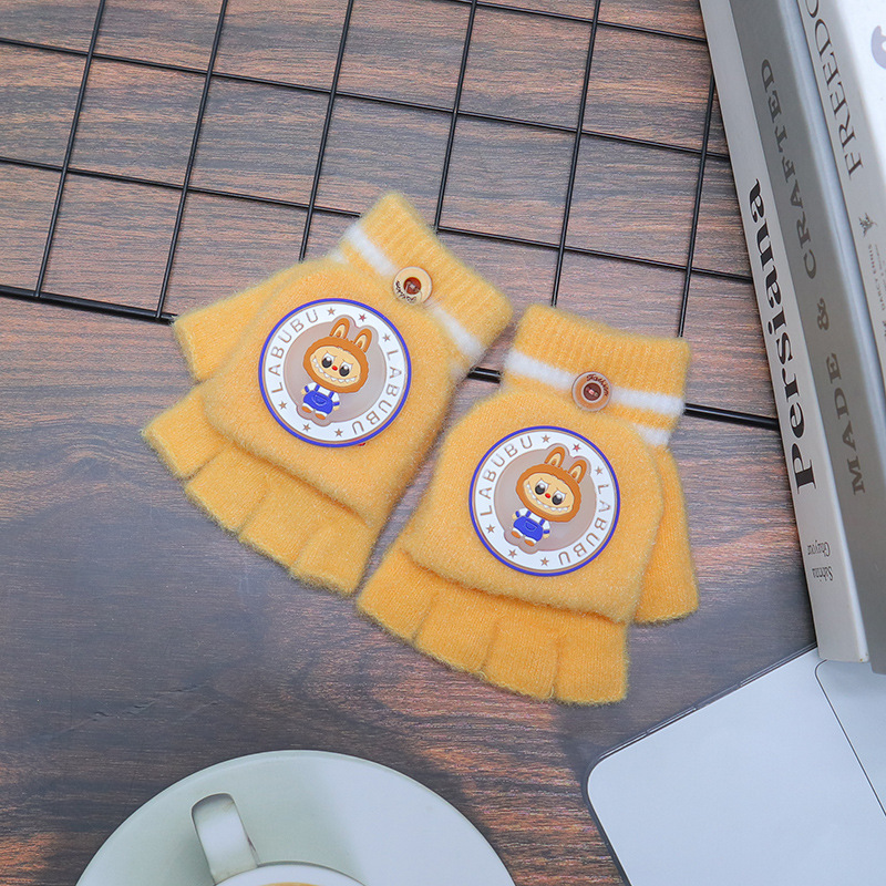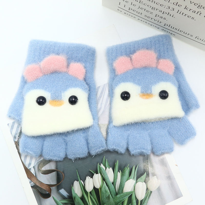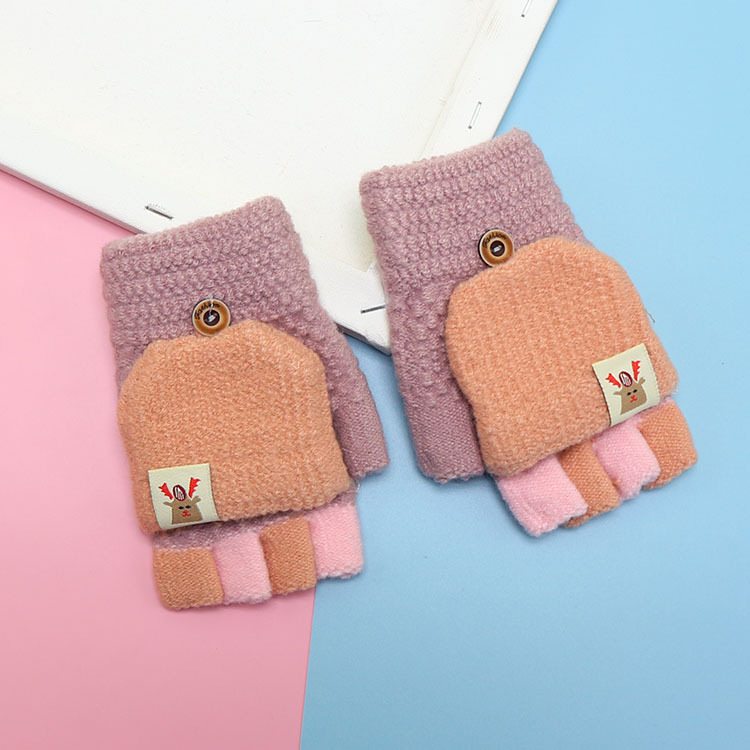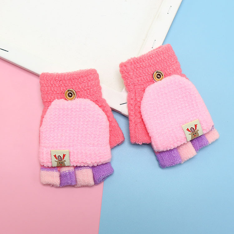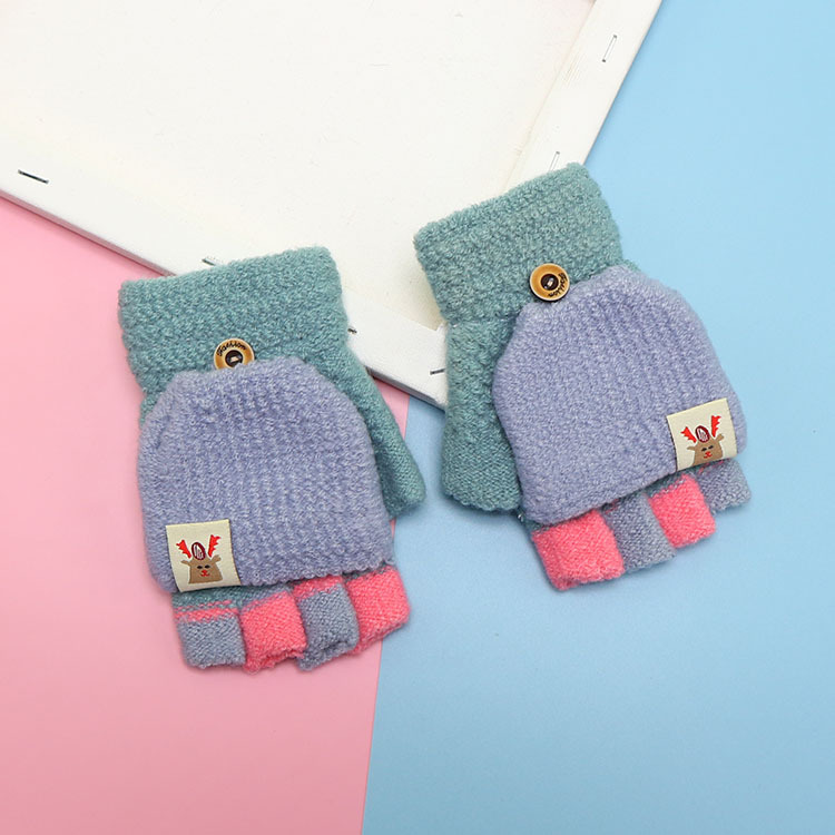 어린이 장갑 가을과 겨울 따뜻한 반 손가락 플립 만화 소년과 소녀를위한 귀여운 니트 아기 기모 두꺼운 손가락
