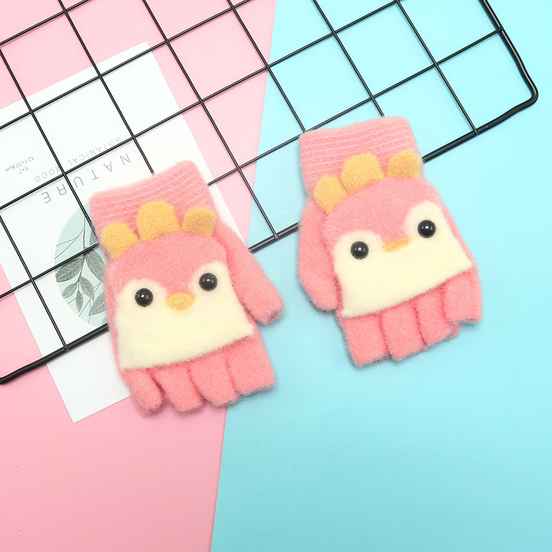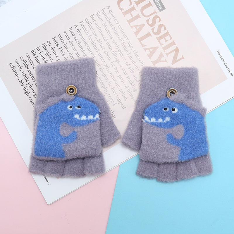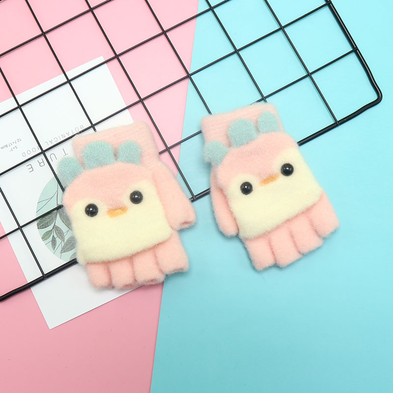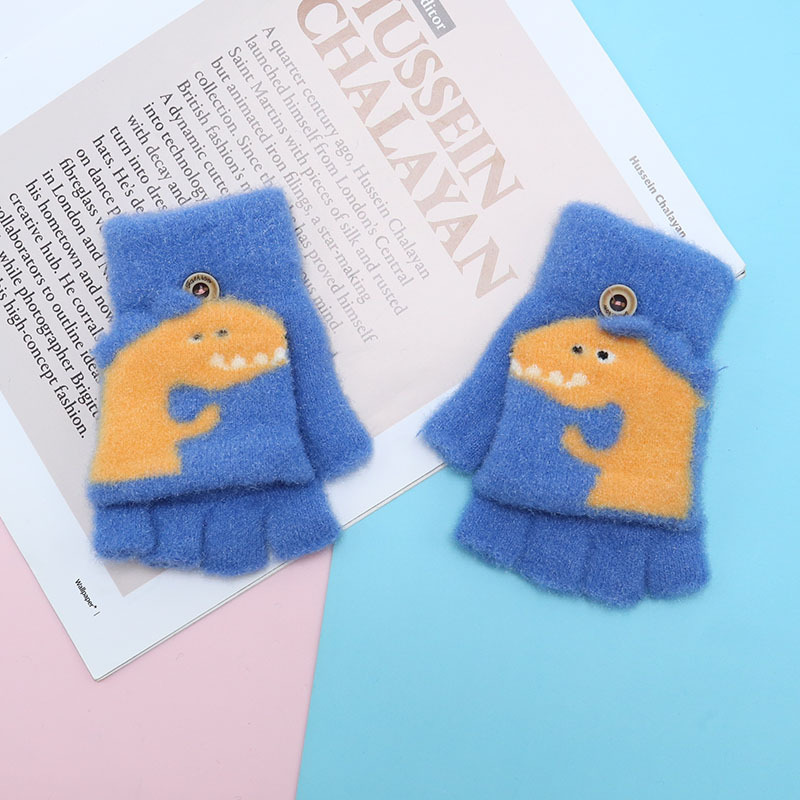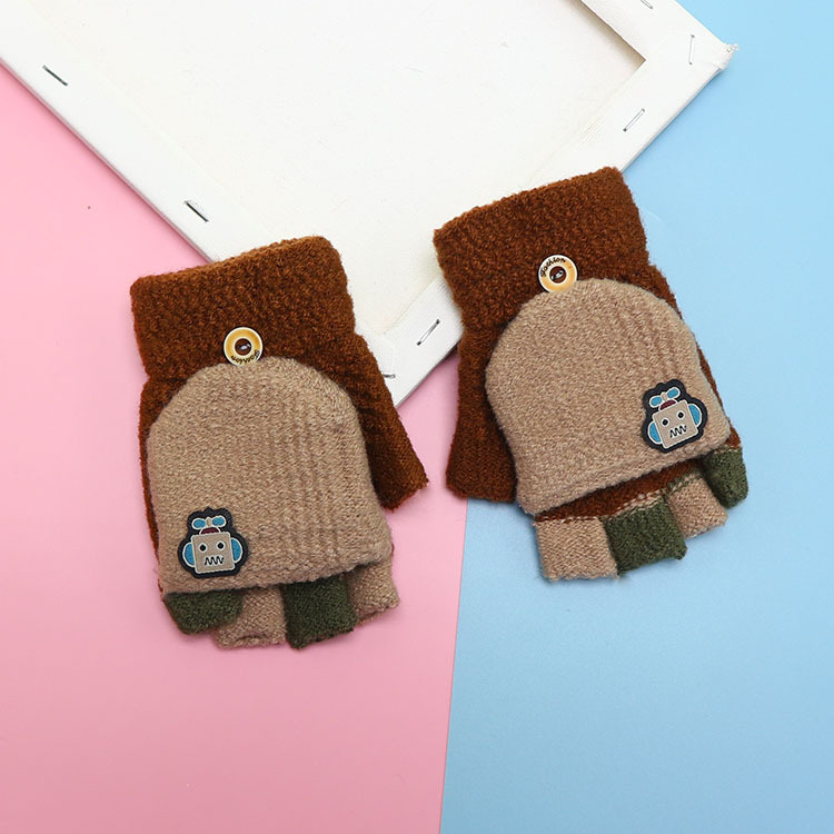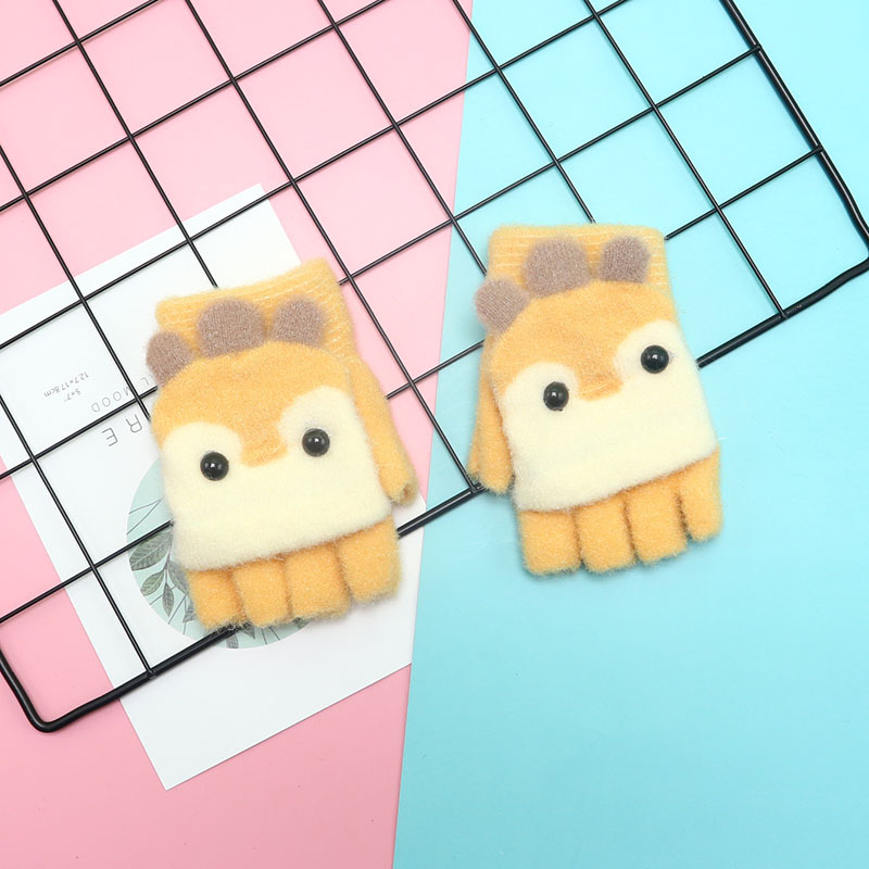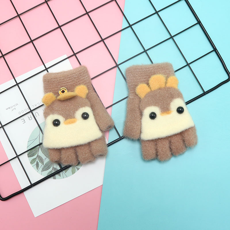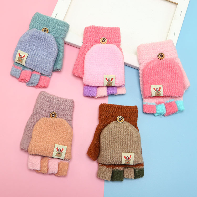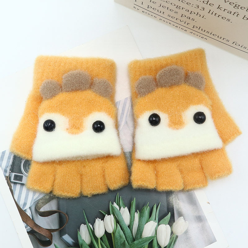 어린이 장갑 가을과 겨울 따뜻한 반 손가락 플립 만화 소년과 소녀를위한 귀여운 니트 아기 기모 두꺼운 손가락스토어 가기