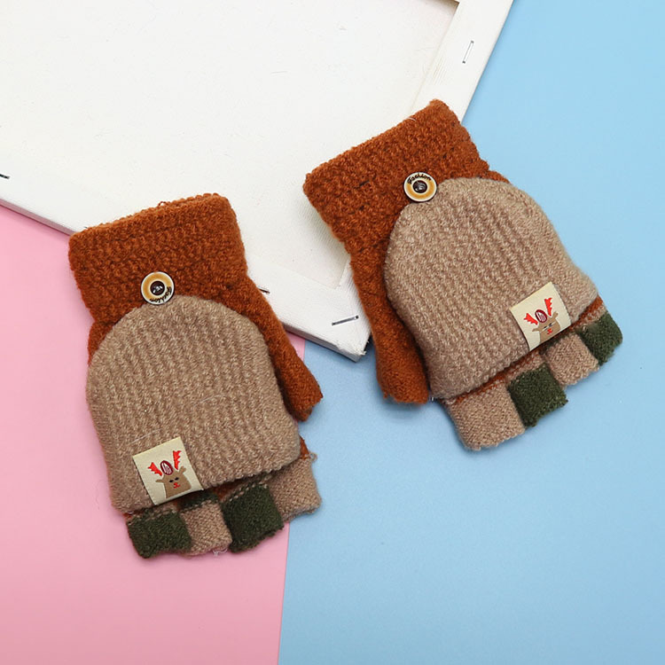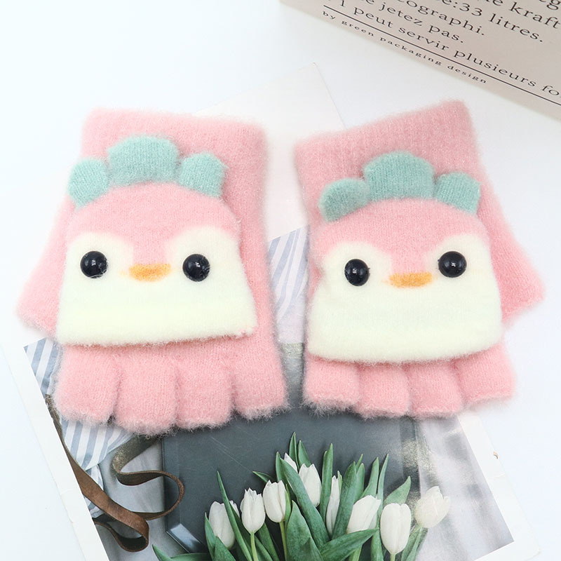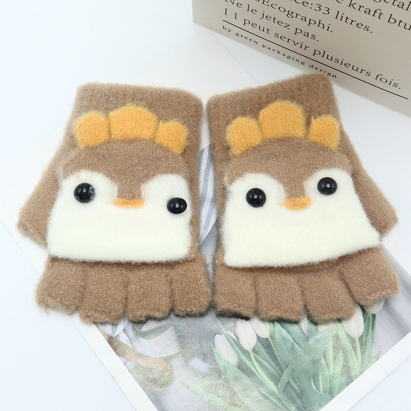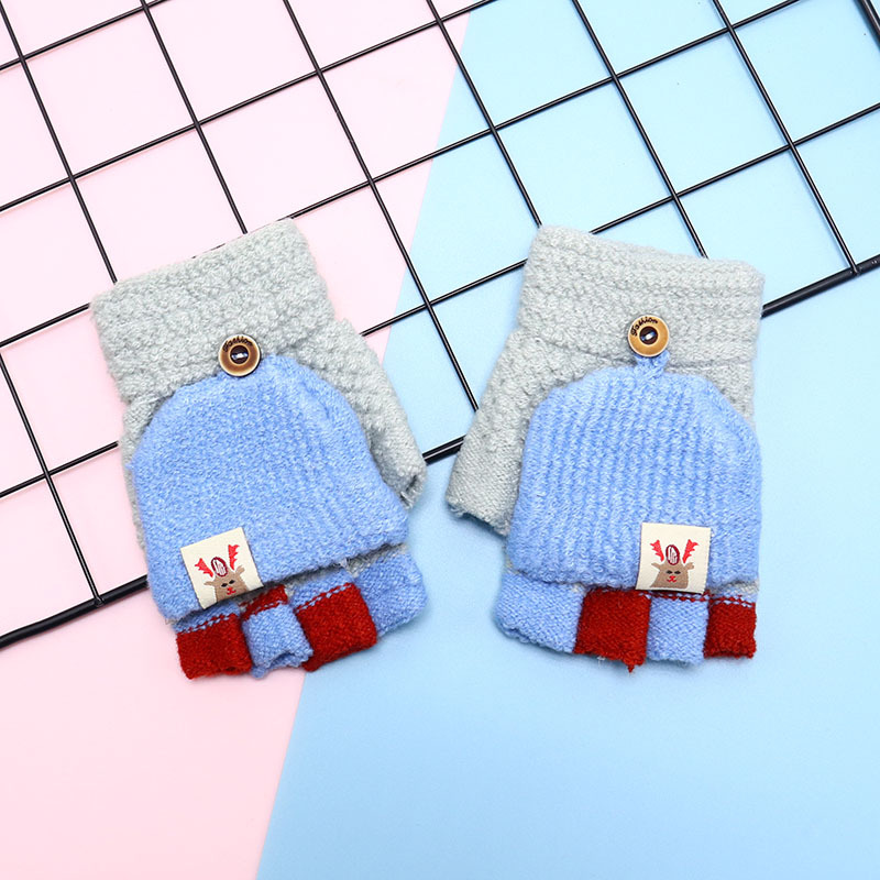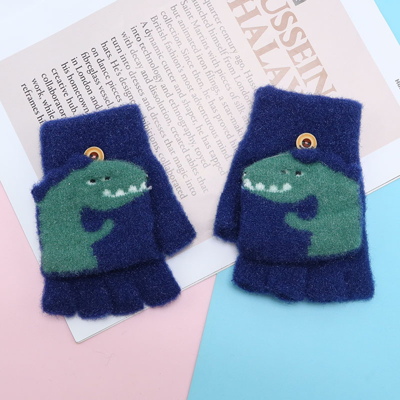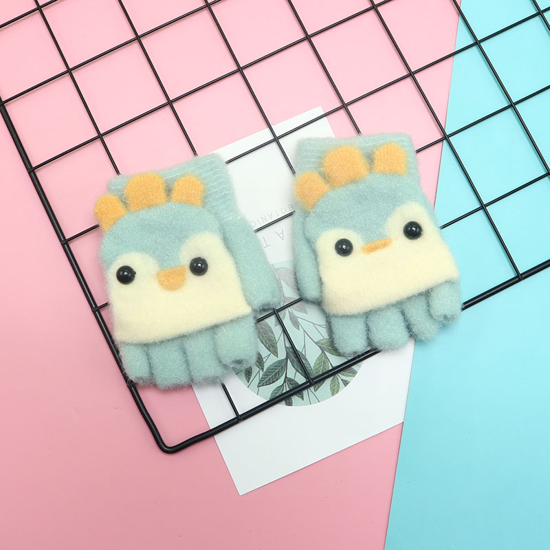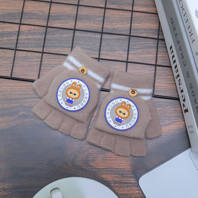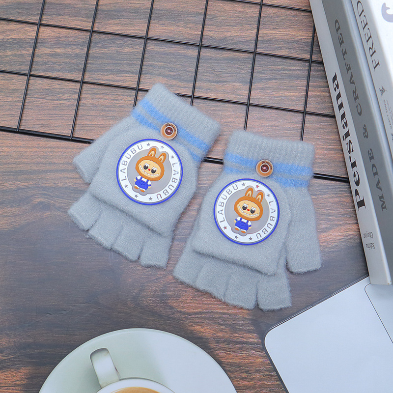 어린이 장갑 가을과 겨울 따뜻한 반 손가락 플립 만화 소년과 소녀를위한 귀여운 니트 아기 기모 두꺼운 손가락스토어 가기