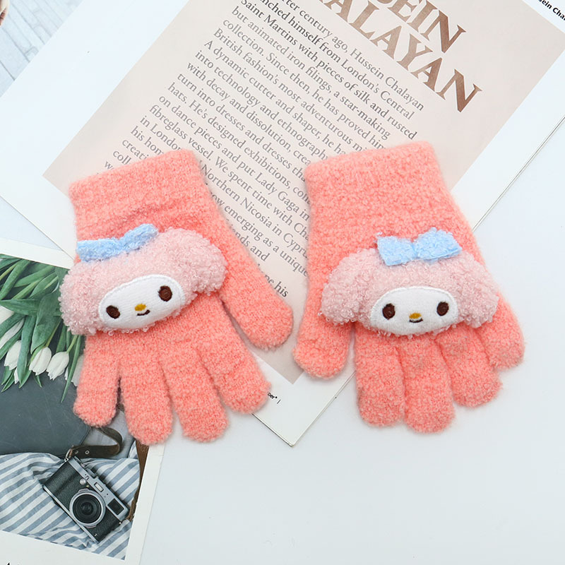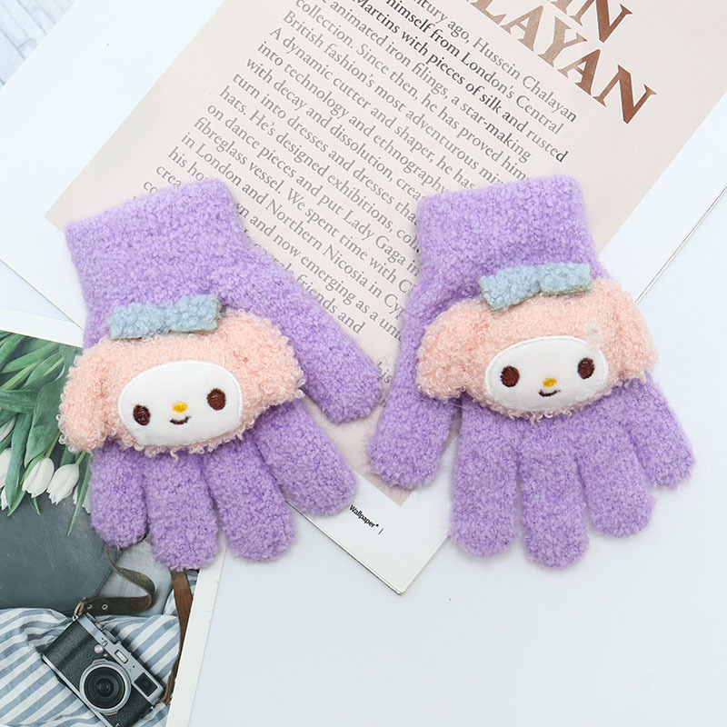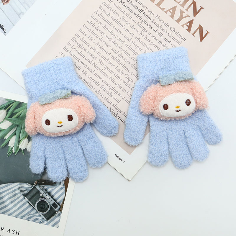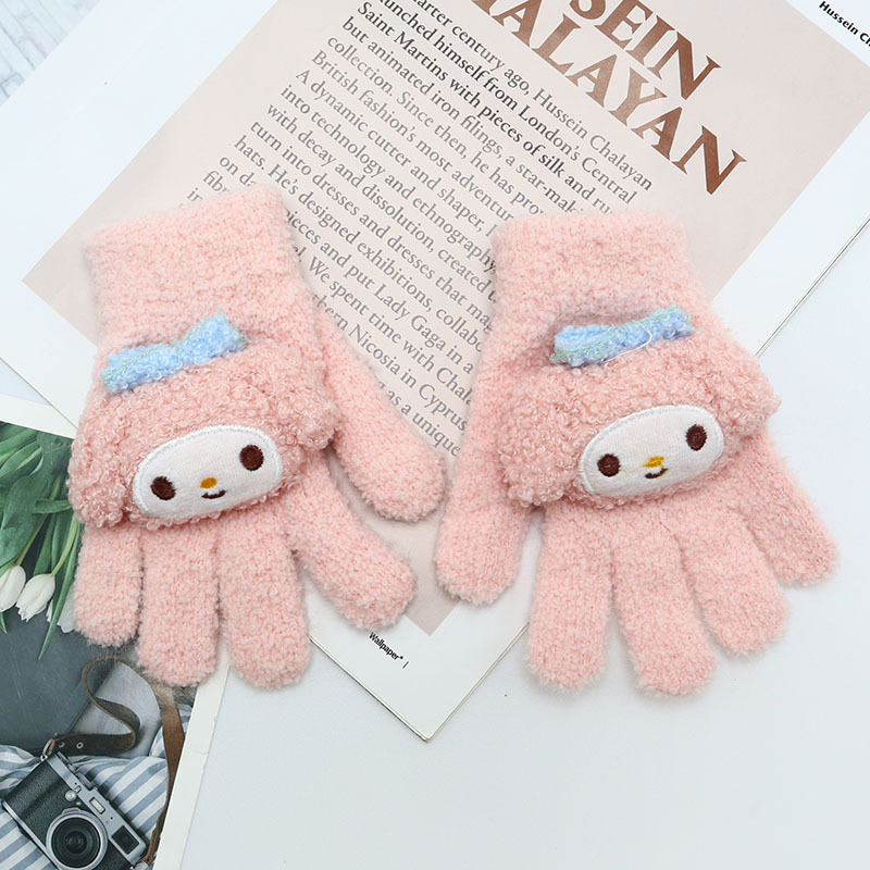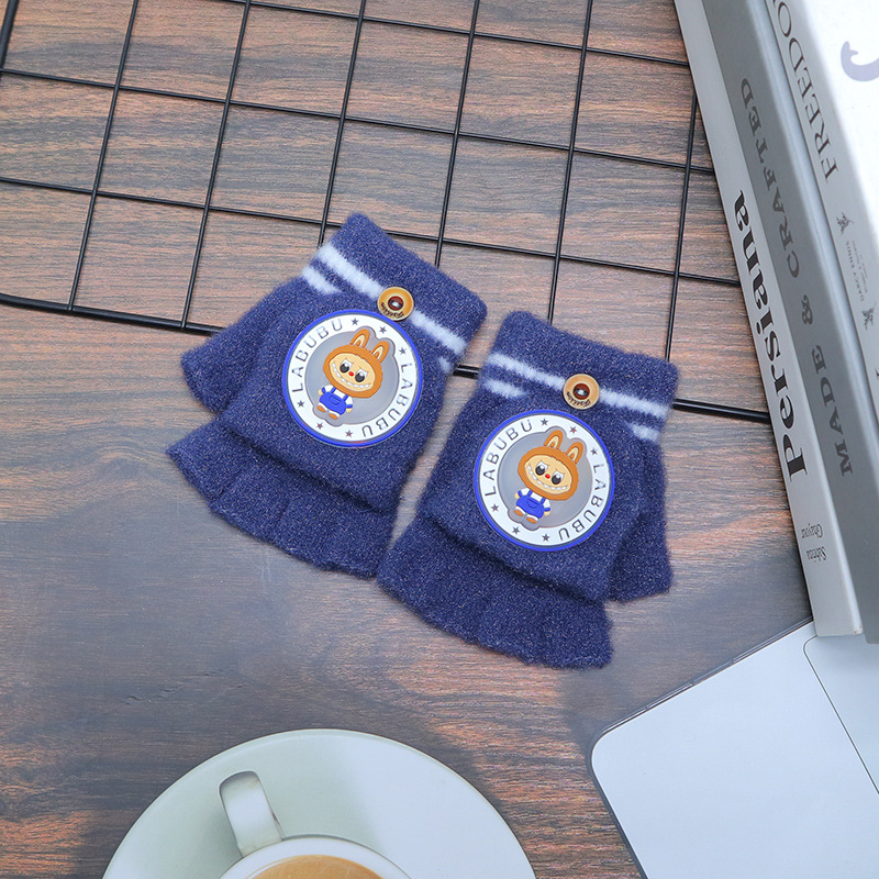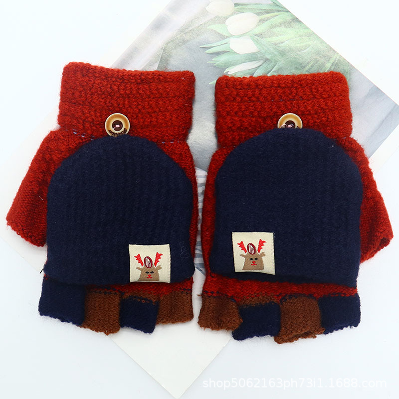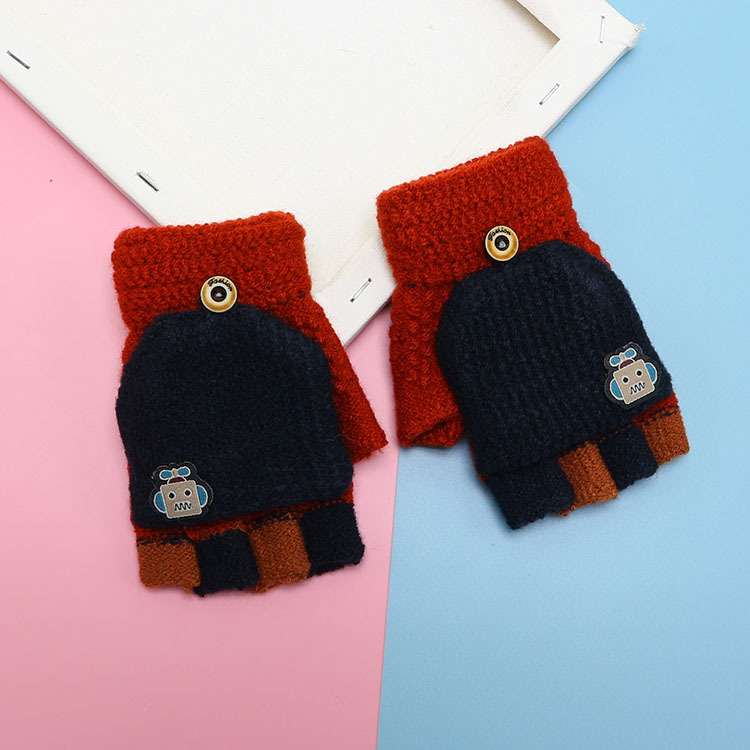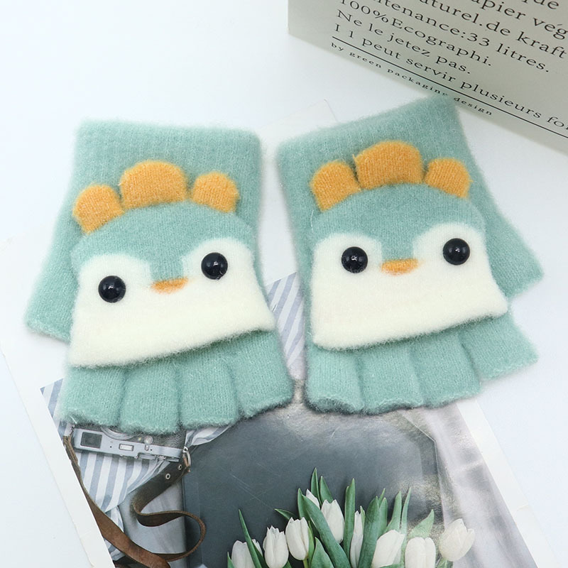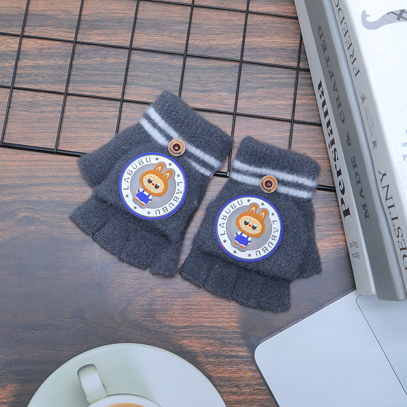 어린이 장갑 가을과 겨울 따뜻한 반 손가락 플립 만화 소년과 소녀를위한 귀여운 니트 아기 기모 두꺼운 손가락스토어 가기