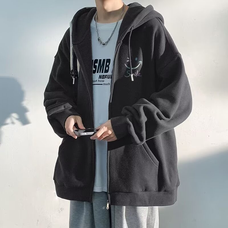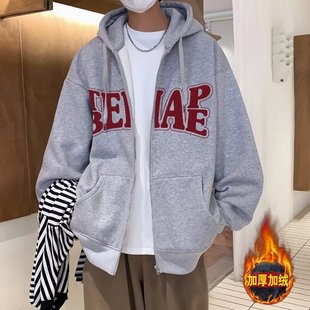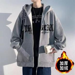 2024 카디건 스웨터 남자 가을 후드 탑 옷 지퍼 유행 루즈 재킷 남자의 가을 스웨트 셔츠